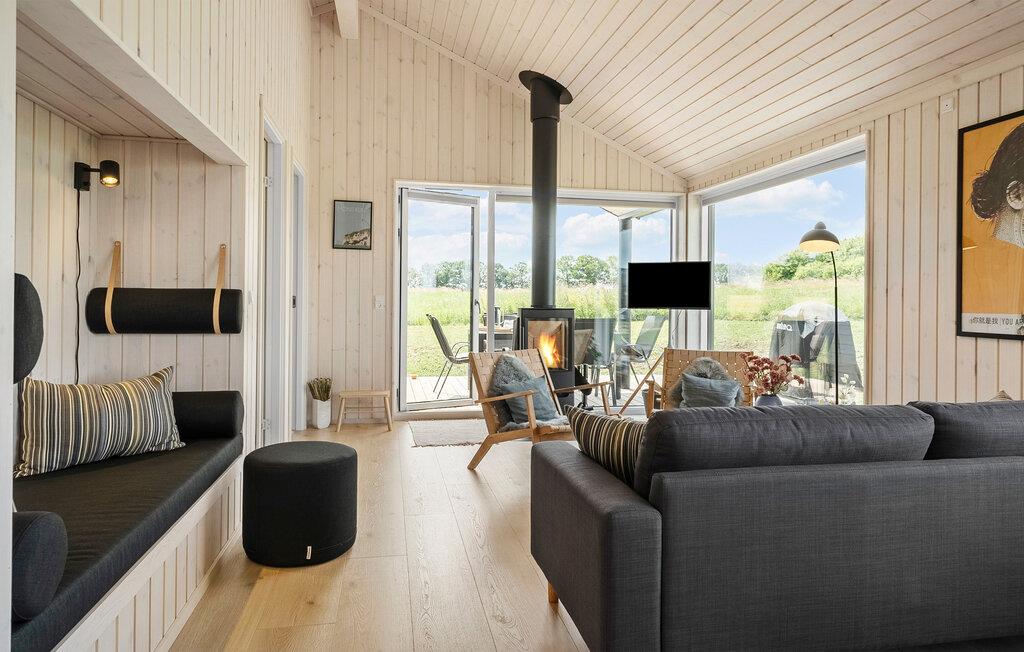 Idyllisches Ferienhaus in Stege nahe Ulvshale Strand mit Kaminofen, moderner Küche und herrlicher Naturblick.