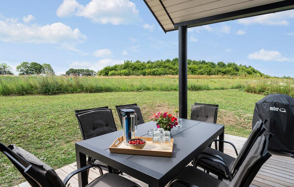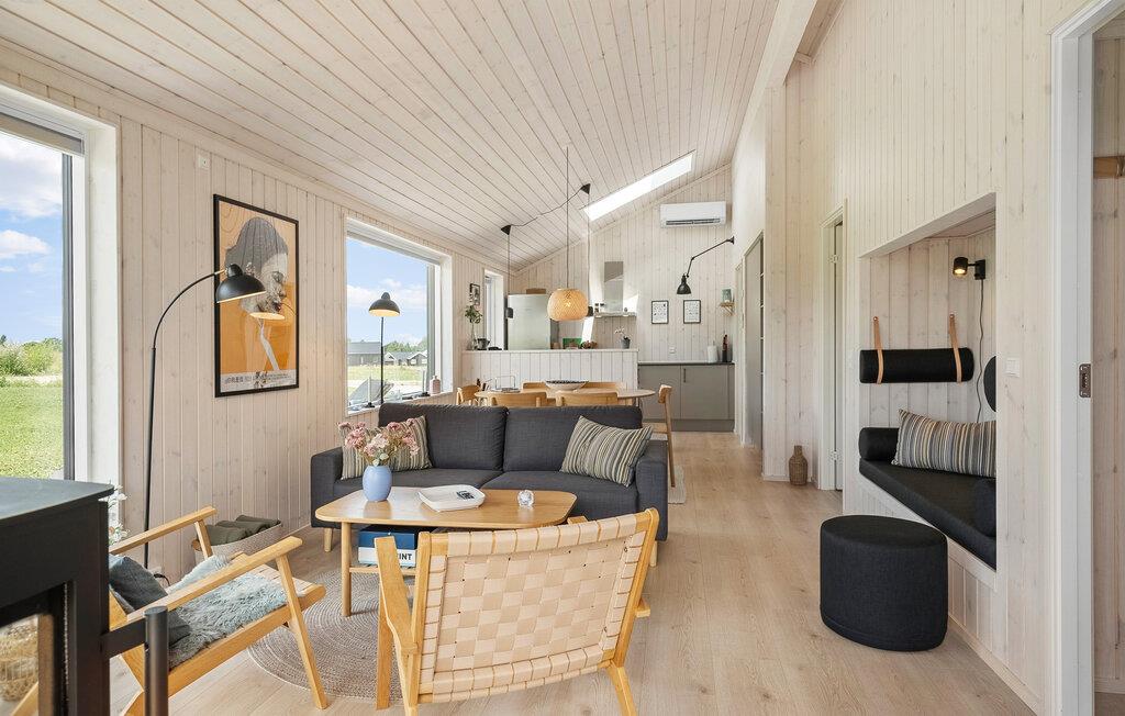 In diesem landschaftlich schön gelegenen Haus empfängt Sie helles Tagelicht und eine warme Holzvertäfelung. Hier fällt es leicht, zur Ruhe zu kommen und neue Kraft zu schöpfen. Machen Sie es sich auf einem bequemen Sofa mit einer Tasse Tee gemütlich und entzünden Sie an kühleren Tagen den Kaminofen. In der modernen Küche bereiten Sie frische Mahlzeiten zu, die sich wunderbar bei einem Glas Wein genießen lassen.