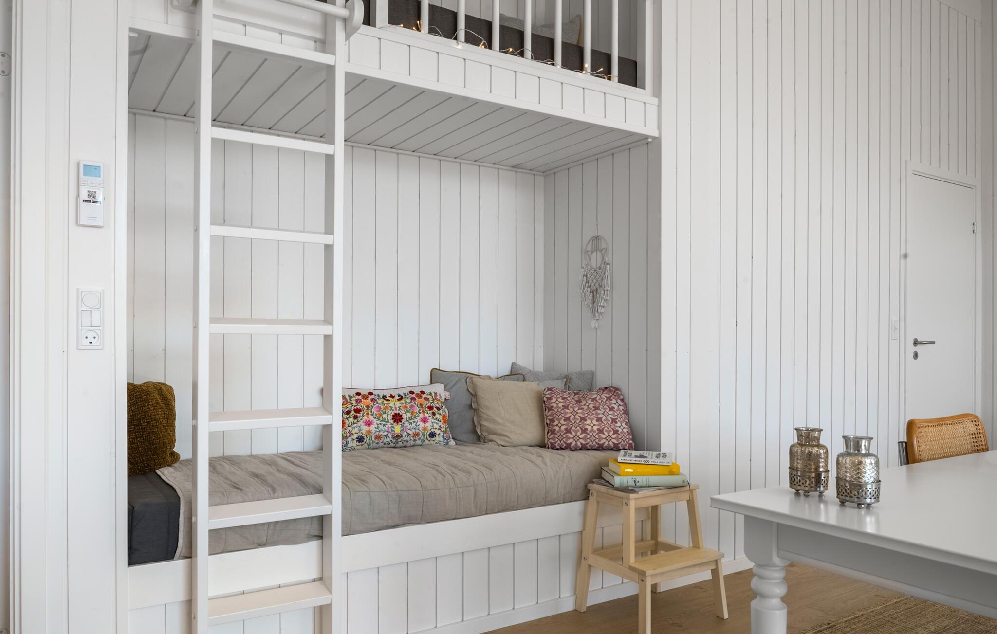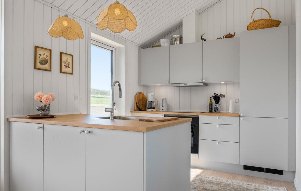 Mit einem hellen Innenbereich begrüßt Sie dieses moderne Urlaubsdomizil, in dem Sie mit Ihren Liebsten vom Alltag abschalten können. Lassen Sie sich vom Blick in die Weite inspirieren, während Sie in der offenen Küche Ihre Mahlzeiten zaubern. Ihre Kinder finden charmante Spielmöglichkeiten und gemütliche Alkoven zum Lesen vor, während Sie in der Sauna entspannen. Versammeln Sie sich abends auf dem bequemen Sofa, streamen Sie einen Film oder genießen Sie gute Gespräche bei einem Glas Wein.