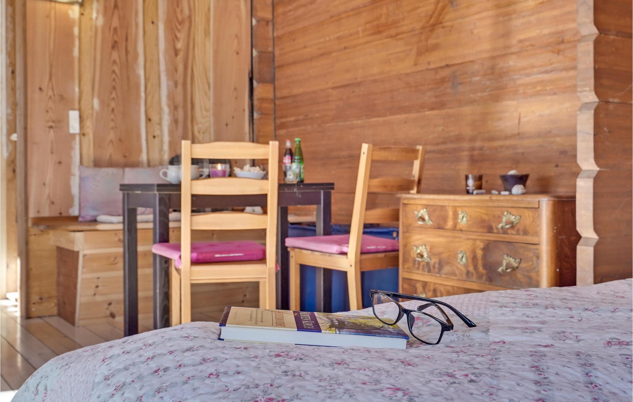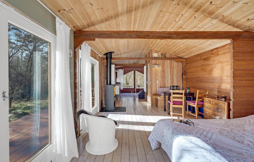 Im Innenraum finden Sie ein funktionelles und einfach eingerichtetes Domizil, mit einem offenen Wohnkonzept und ideal für bis zu 2 Personen. Ein idyllisches Ambiente mit Kaminofen, Holzverkleidung und großen Fenstern für den Einfall natürlichen Lichts. Genießen Sie bei gutem Wetter Entspannung auf den Sonnenliegen und leckere Gerichte vom Grill auf der offenen Terrasse und genießen Sie die unmittelbare Nähe der Natur mit allen Facetten.