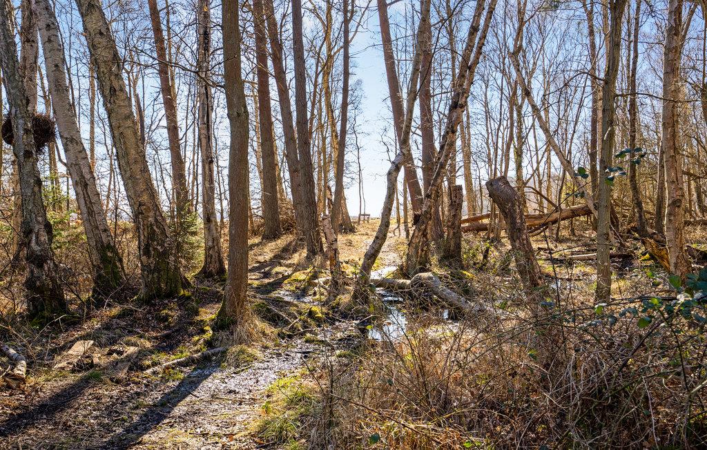 Naturnahes Ferienhaus am Wald mit Kaminofen und Terrasse auf Møn, ideal für Erholung und Naturgenuss.