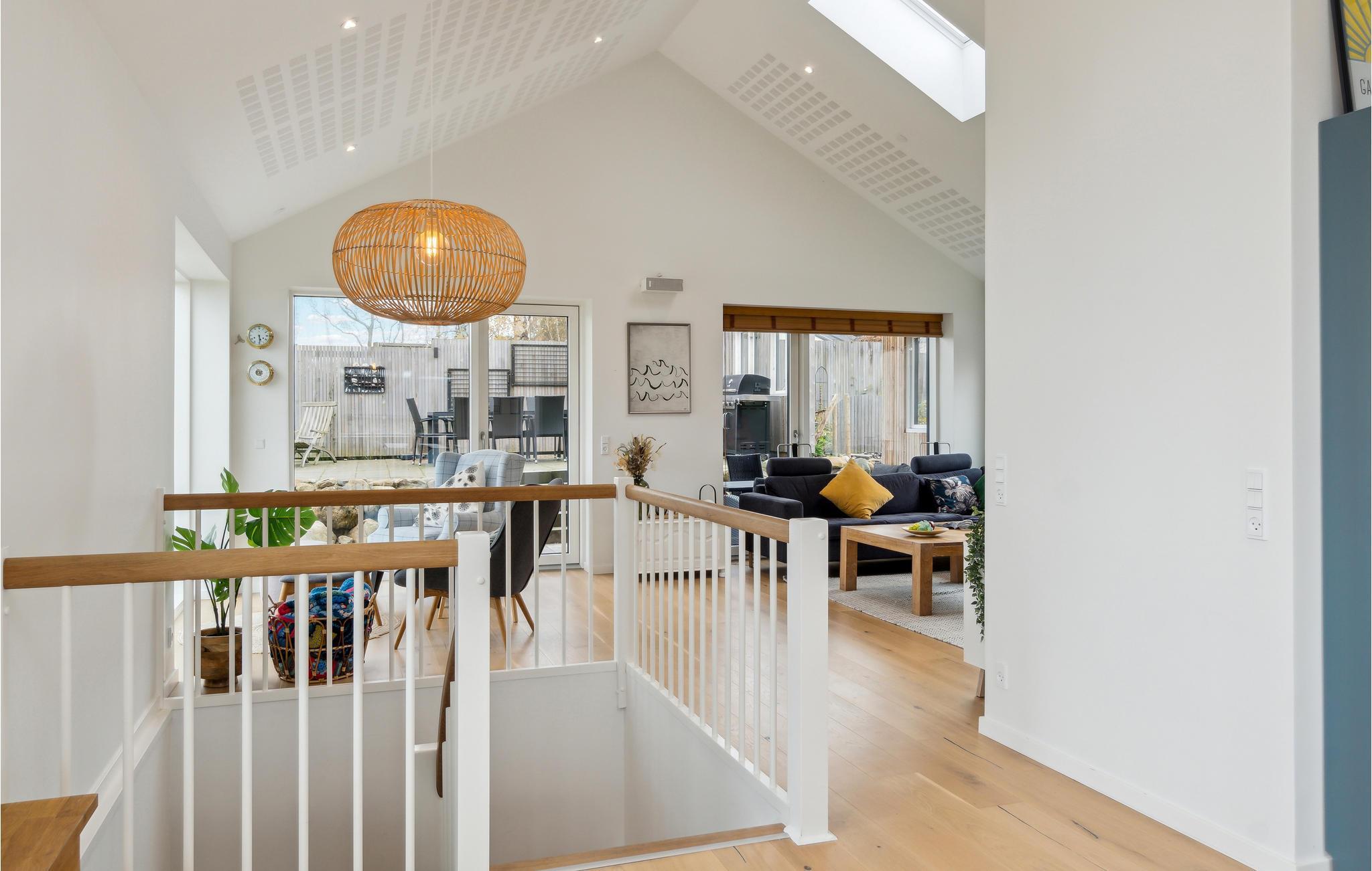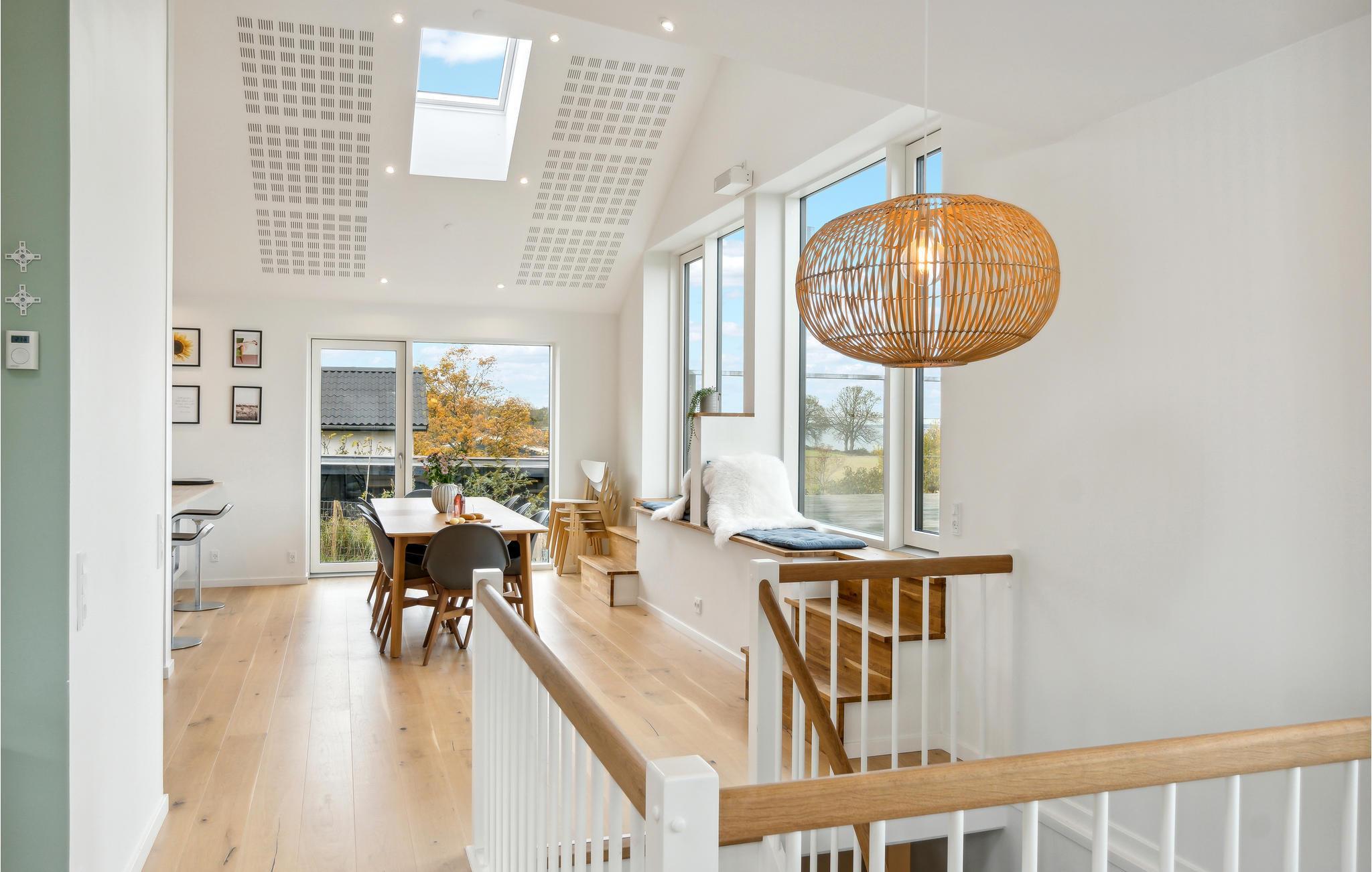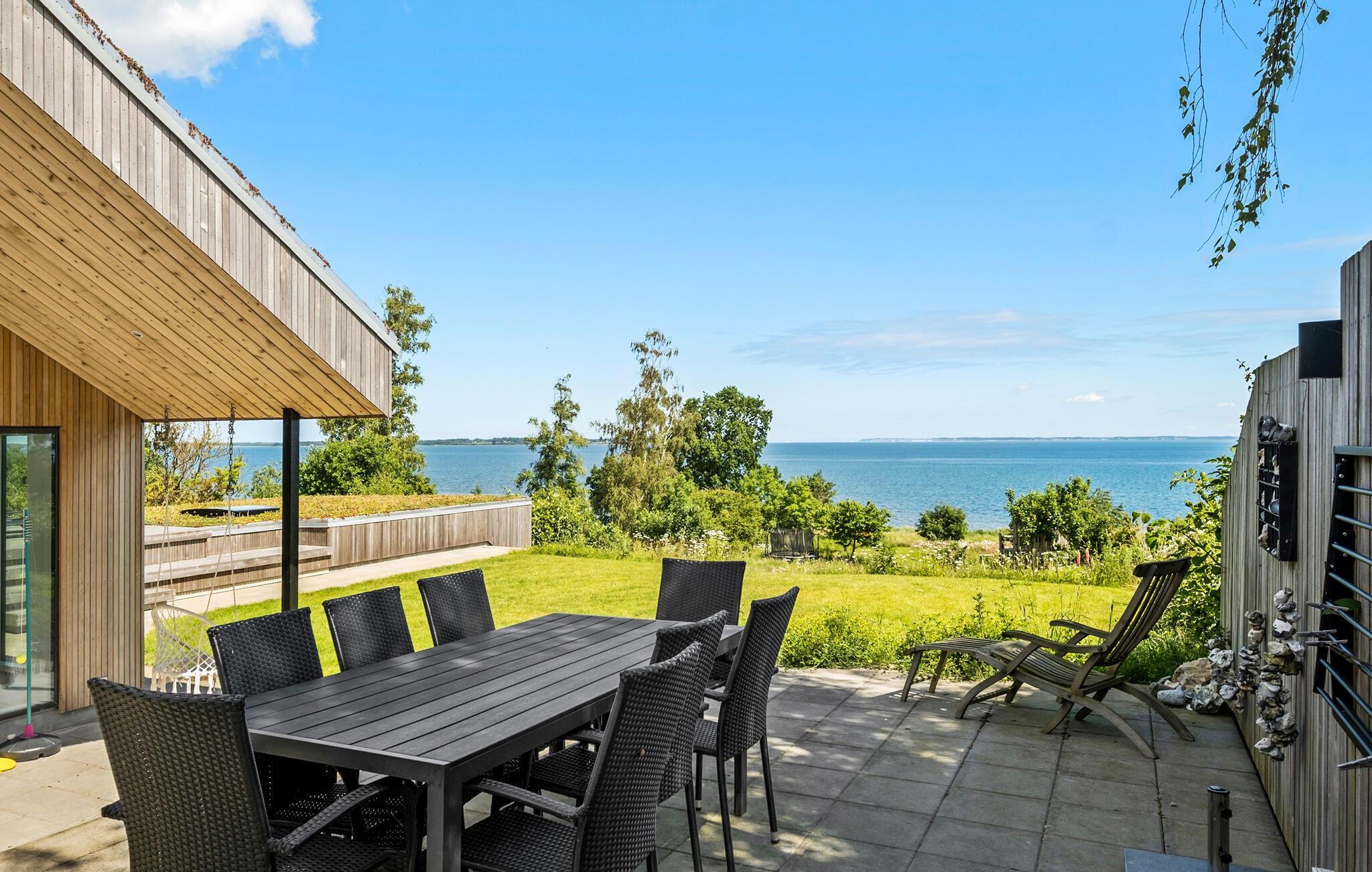 Entspannen Sie in diesem modernen Ferienhaus mit Fjordblick, nur wenige Meter vom Strand in Dänemark entfernt.