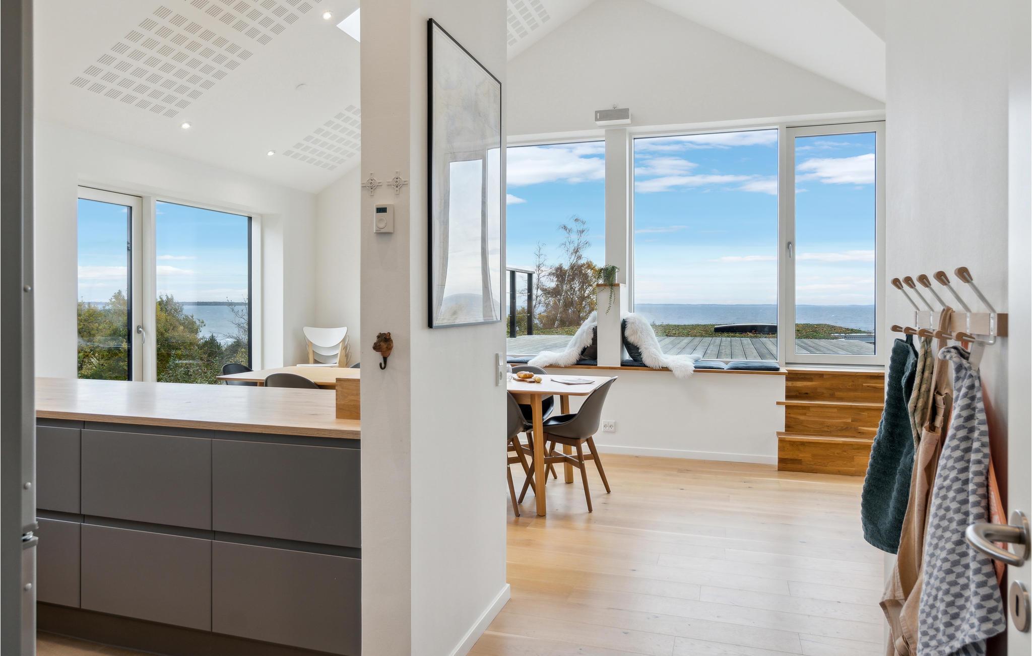 Willkommen in dem attraktiven Haus, das seine Gäste in Toplage nur wenige Meter vom Strand empfängt. Richten Sie sich in den hellen, modern gestalteten Räumen häuslich ein, in denen alles dafür getan ist, dass Sie sich hier mit Ihren Lieben wohlfühlen können. Bodentiefe Fenster bringen die fantastische Aussicht optimal zur Geltung. Machen Sie es sich mit einem Buch im Sessel bequem und lassen Sie den Blick über das Wasser schweifen.