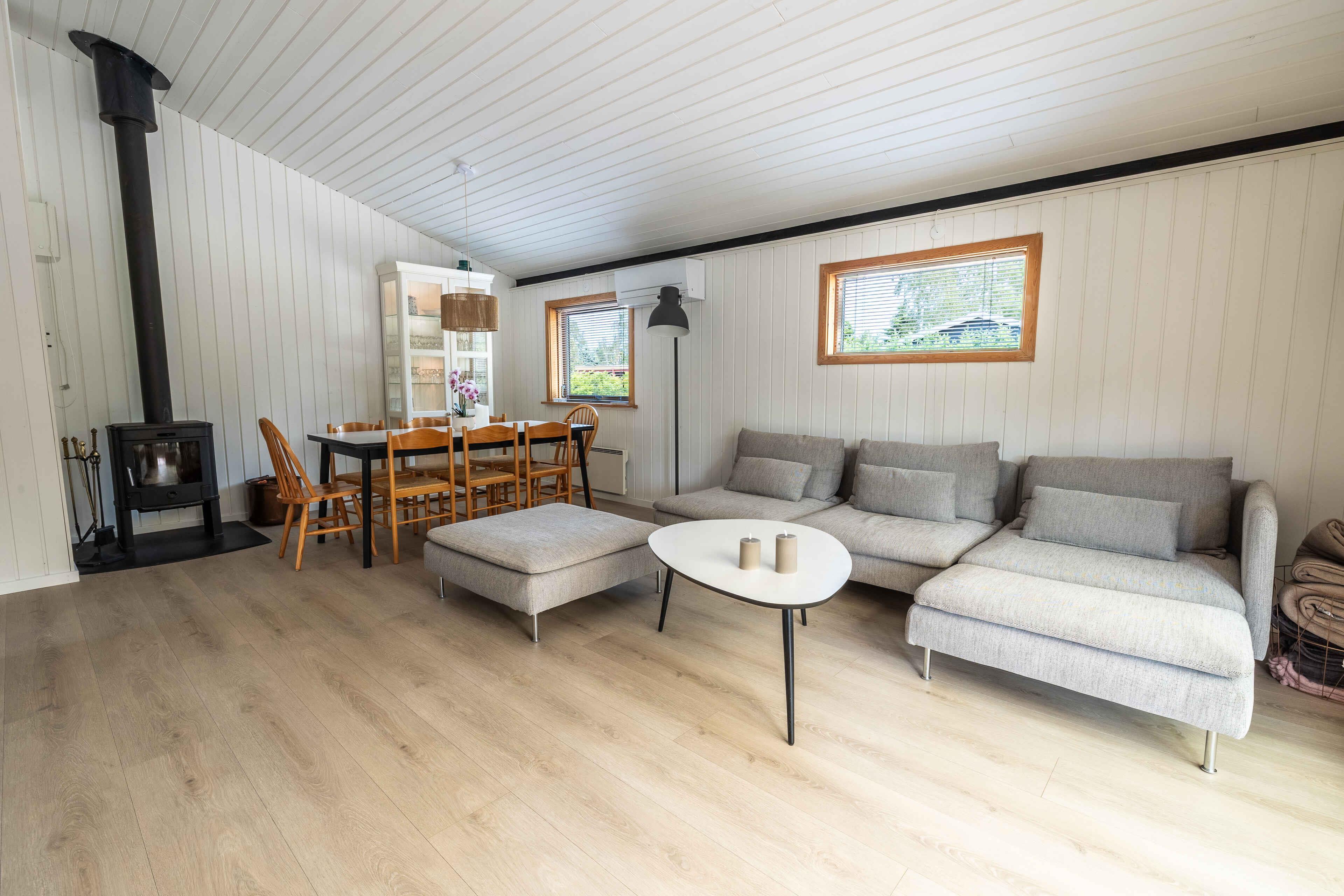 Willkommen bei der Perle von Marielyst – eine gute Wahl für Familien oder Freunde, die eine praktische, gut gelegene Unterkunft in Strand- und Naturnähe suchen. Das Haus bietet drei Schlafzimmer und acht Schlafplätze auf 85 m² mit Kamin und Internet. Der Grundriss ist einfach und funktional. Küche und Wohnzimmer sind offen verbunden und bieten Zugang zu einem überdachten Wintergarten sowie einer sonnigen Terrasse mit Essbereich. Der Wohnraum ist mit Kamin und Sitzgelegenheiten ausgestattet, die Küche bietet alles für Ferienalltag und Gemütlichkeit. Drei separate Schlafzimmer – zwei mit Doppelbetten, eines mit Etagenbett und Doppelbetten. Das Haus verfügt über ein Badezimmer mit Dusche, Waschmaschine und Trockner. Eine praktische Unterkunft für gemeinsame Zeit oder erholsame Ruhe. Die Umgebung bietet klassische Ferienqualitäten: nur 600 Meter bis zum kinderfreundlichen Sandstrand mit Dünen, nahe Eisladen und Radwegen. Die flache Landschaft lädt zum Spazieren, Joggen oder Radfahren ein. Fuglsang Plantage und der Marktplatz von Marielyst liegen in der Nähe. In der Umgebung gibt es familienfreundliche Aktivitäten wie Minigolf, Gokarts und ein Erlebnisbad. Einkaufsmöglichkeiten, Cafés und Restaurants sind leicht erreichbar. Man erlebt hier sowohl Naturidylle als auch Urlaubsatmosphäre mit Leben. Ideal für alle, die nahe am Geschehen wohnen möchten – Strand, Ort und Aktivitäten – und gleichzeitig eine private Basis für die Ferien schätzen. Die ruhige Lage im Ferienhausgebiet bietet Entspannung und Platz zum Spielen. Ein einfaches, funktionales Ferienhaus, in dem Sie Ihren Urlaub selbst gestalten – mit Strandtagen, Spielen, Grillabenden oder Lesestunden im Wintergarten.