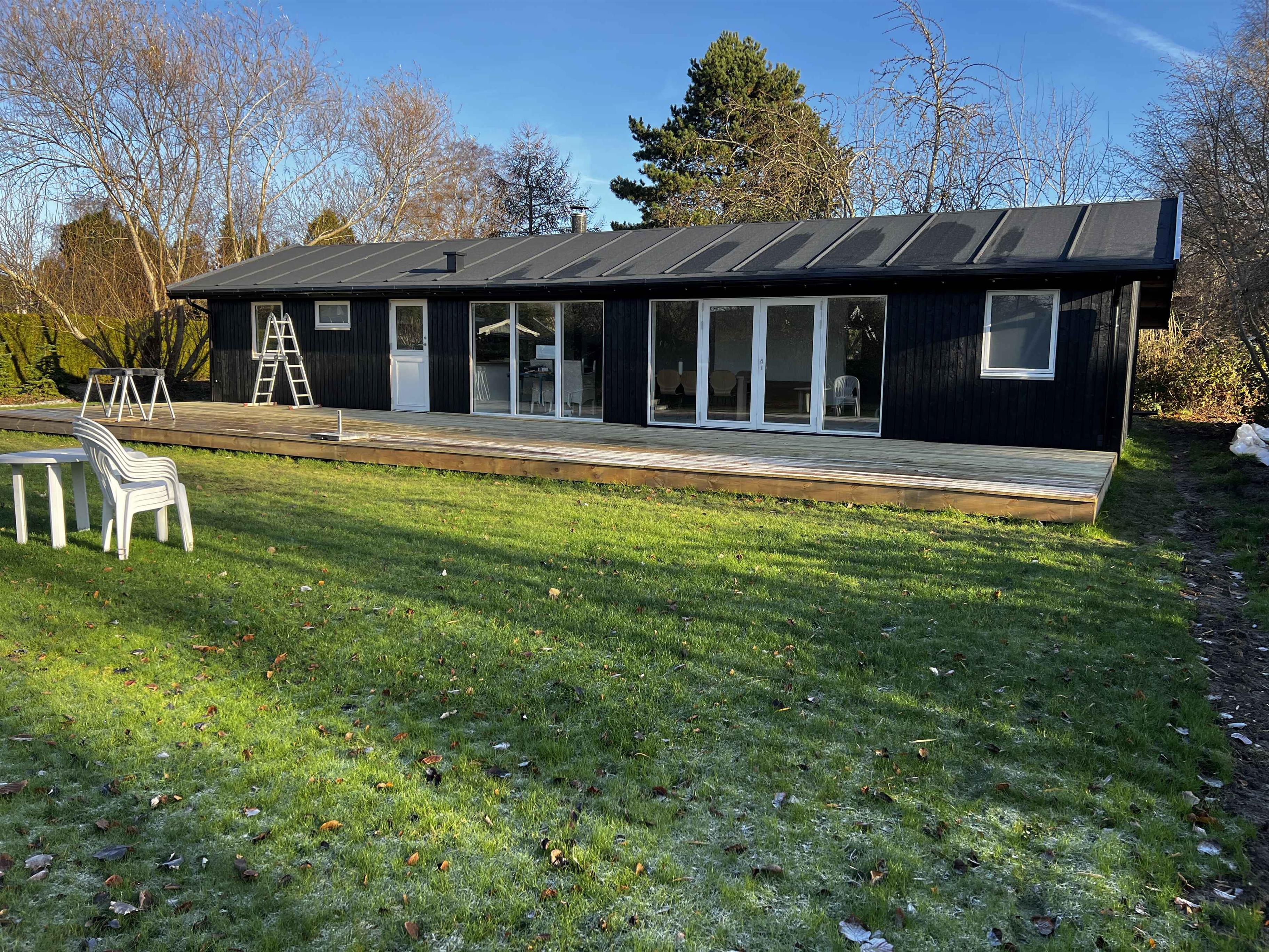 Modernes Ferienhaus in Væggerløse mit Garten, Terrasse und Panoramablick für erholsame Urlaubstage.