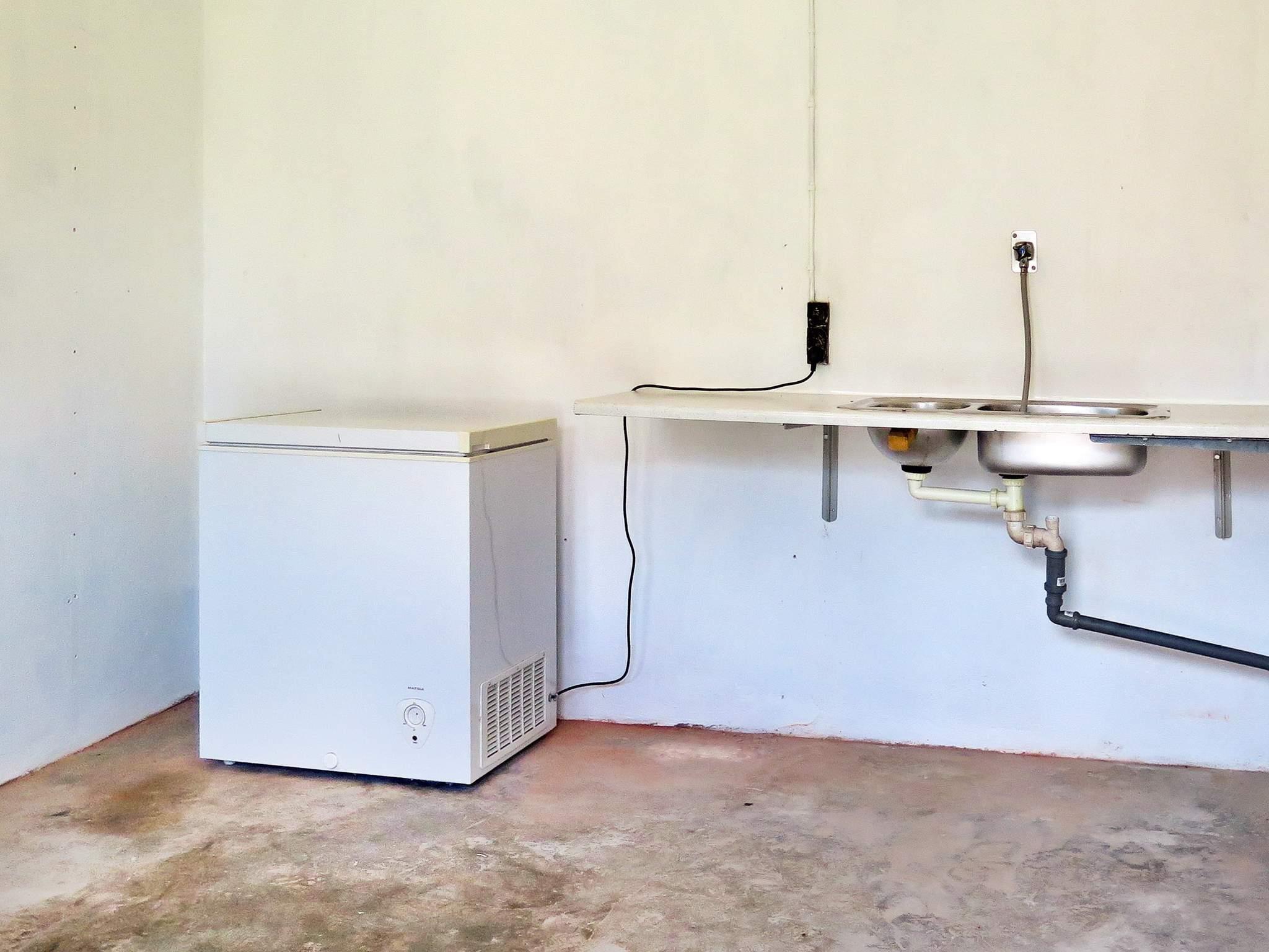 Draußen auf der offenen Terrasse stehen Gartenmöbel und im Schuppen nebenan finden Sie einen Filetierbank und eine Tiefkühltruhe. Weiterhin ist dort Platz für z.B. Fahrräder.