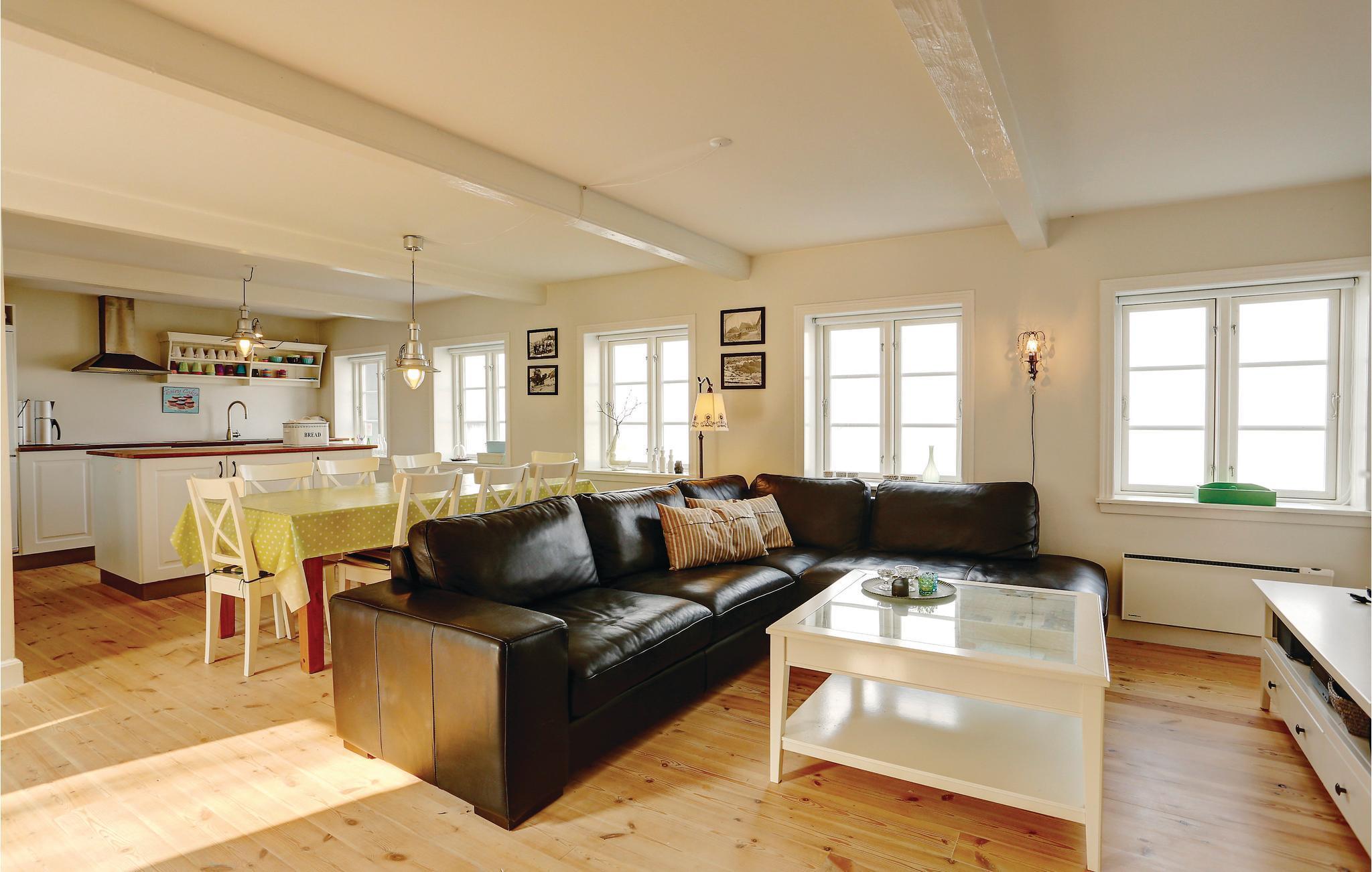Schön gelegenes und total renoviertes Reihenhaus auf 2 Ebenen. Schöne Aussicht und Einrichtung. Das Haus ist sehr geräumig und gemütlich und die sichtbaren Deckenbalken verleihen ihm einen besonderen Reiz. Die große Wohnküche ist modern eingerichtet. Vom Wohnzimmer haben Sie eine Aussicht auf die Ostsee und den Hafen Vang, wo viele kleine Boote am Kai liegen. Vom Treppenabsatz im 1. Stock können Sie auch die Ostsee sehen. Hier sind Sie in einem schönen Reihenhaus in einer maritimen Umgebung und wo der hohe Komfort Ihnen ein einzigartiges Urlaubserlebnis beschert. Zum Haus gehört auch eine Steinterrasse, die in einem welligen Terrain angebracht ist. In Vang können Sie gut spazieren, die Nähe zum Meer tut Körper und Seele gut. Ein großes und gemütliches Ferienhaus für jede Jahreszeit.