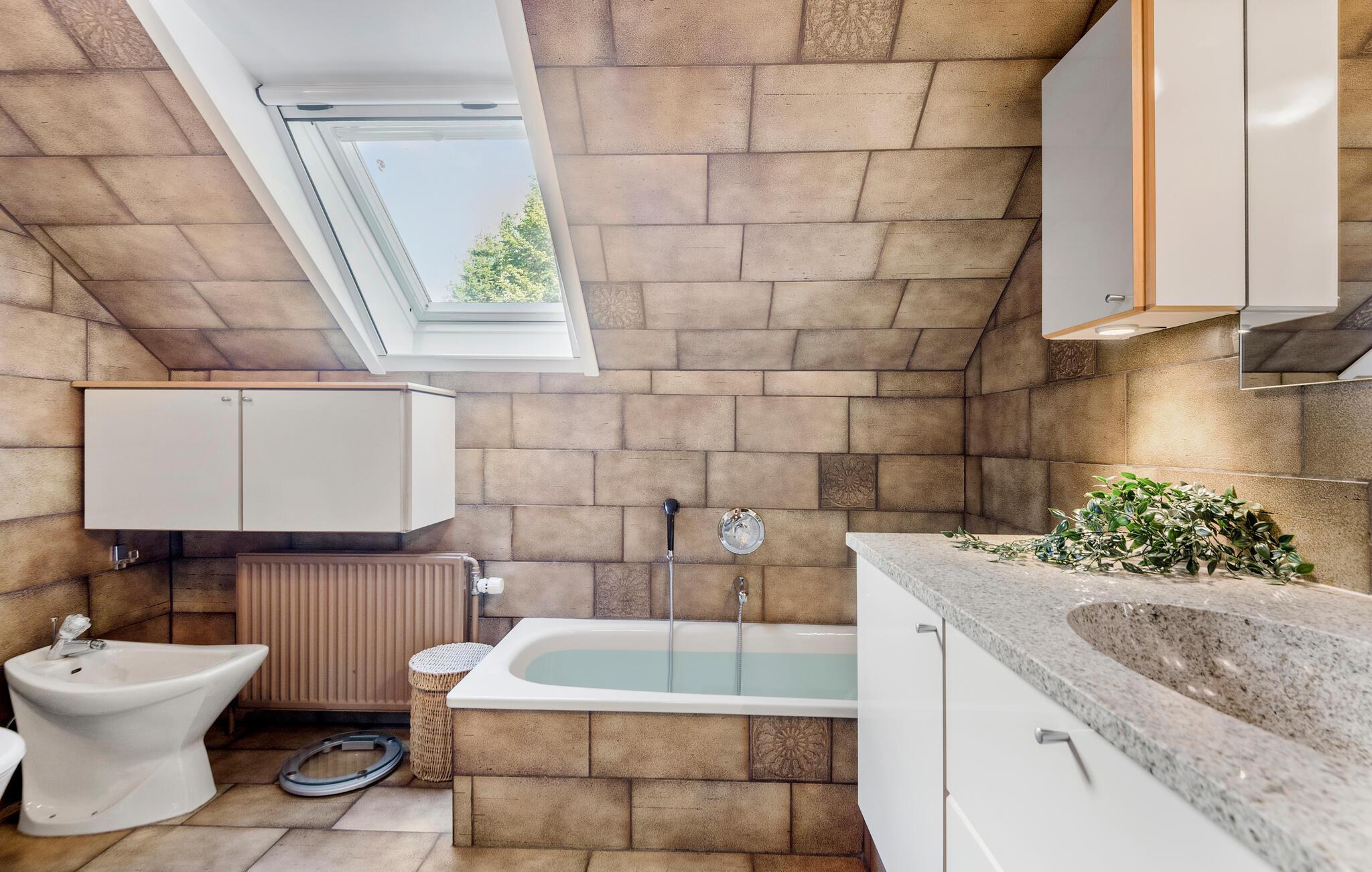 Badezimmer (nr. 1) - WC. Warmes und kaltes Wasser. Dusche und Badewanne
