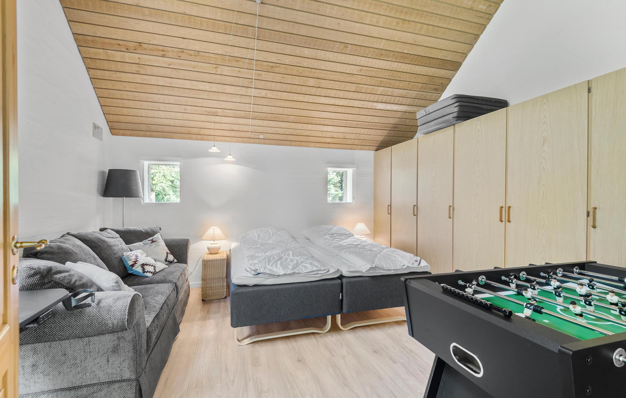 Ihr Ferienhaus befindet sich auf einem großen Grundstück und bietet Ihnen Ihren eigenen Gartenteich, der für eine idyllische und natürliche Stimmung sorgt. Beginnen Sie den Tag mit einem gemütlichen Frühstück auf der überdachten Terrasse, umgeben von der Ruhe und Schönheit der Natur. Der Blick in den gepflegten Garten sorgt für zusätzliche Erholung. Im Innenbereich ist Platz für alle. Kochen Sie gemeinsam in der großen Essküche und nutzen Sie die zahlreichen Sitzgelegenheiten für geselliges Beisammensein mit Karten- oder Brettspielen. Am Kickertisch können Sie den Familienurlaubsmeister im Tischfußball ermitteln.