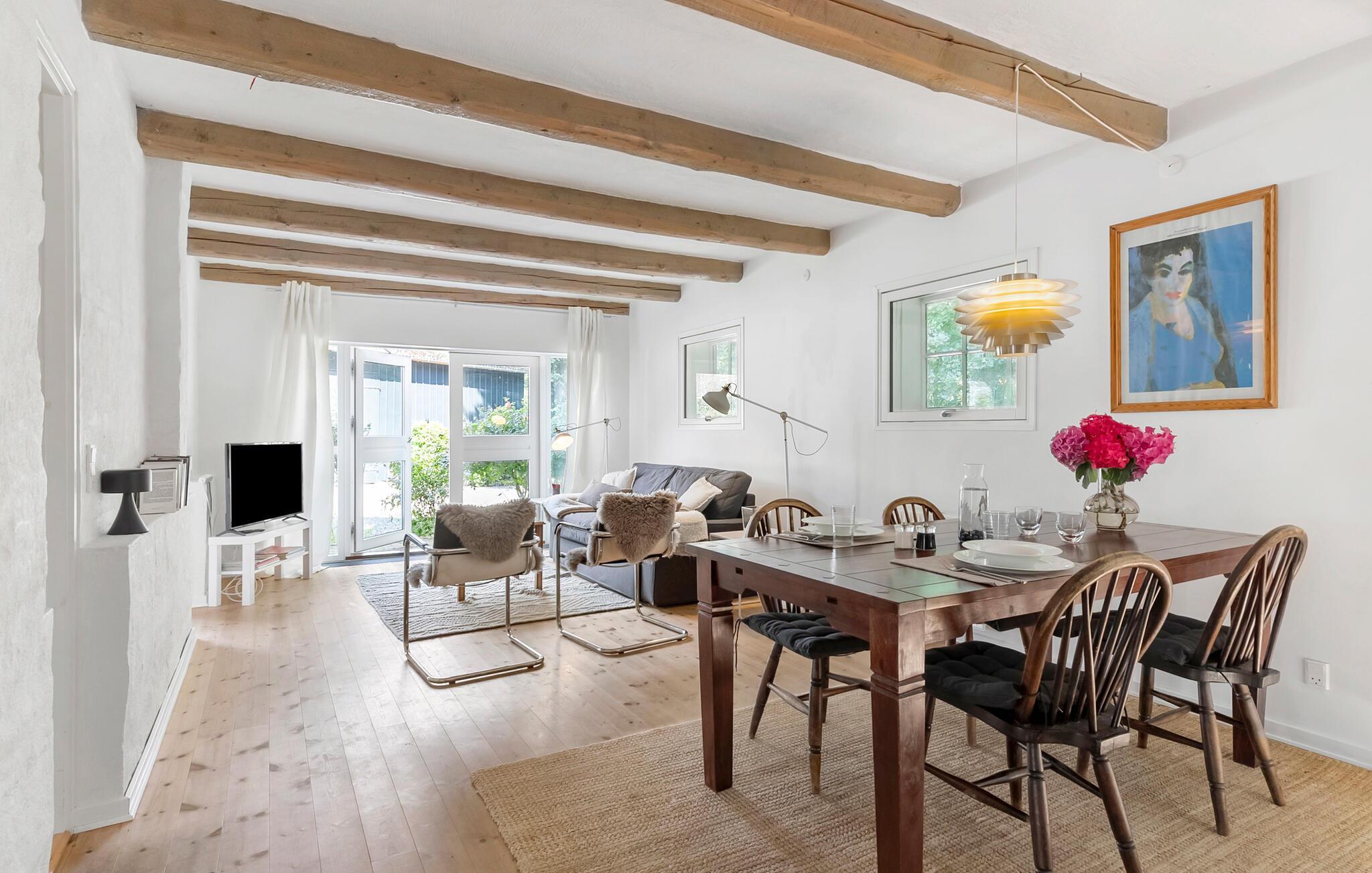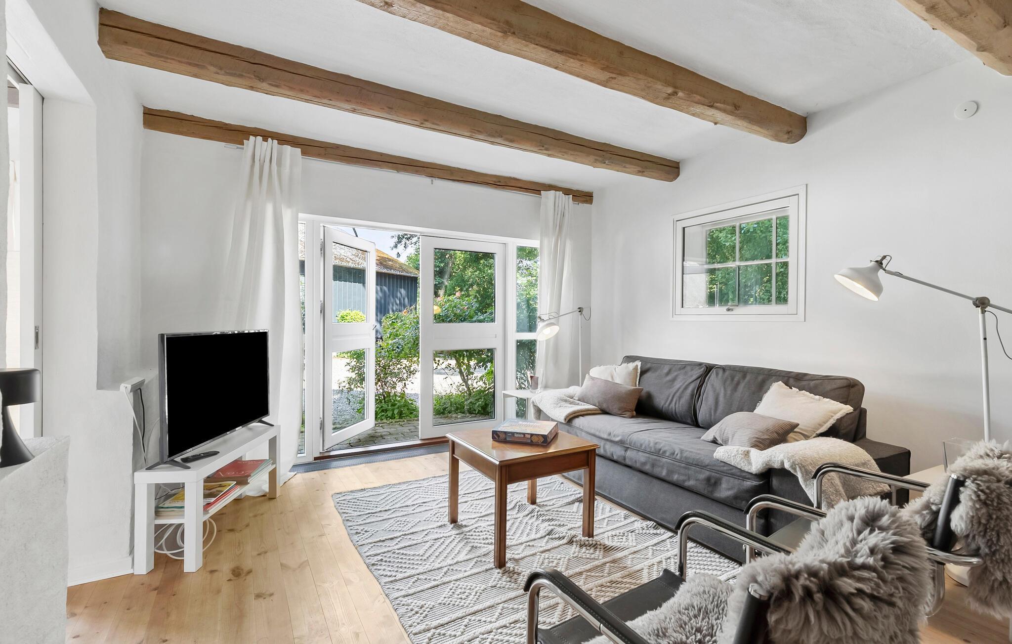 Genießen Sie die Ruhe dieses charmanten Hauses, das eingebettet zwischen alten Bäumen und gepflegten Gärten liegt. Hier in der malerischen Landschaft an der Apenrader Förde verbringen Sie eine erholsame Auszeit in naturnaher Umgebung. Machen Sie es sich im hellen Wohnbereich gemütlich. Freuen Sie sich auf die harmonische Verbindung von traditionellen Balken, hellen Wänden und stilvollem Mobiliar. Entspannen Sie auf dem bequemen Sofa oder öffnen Sie die Terrassentüren und lassen Sie frische Luft herein. Kochen Sie in der gemütlichen Küche und genießen Sie Ihre Mahlzeiten am Esstisch, an dem alle Platz finden. Am Kaminofen lassen Sie den Tag wohlig ausklingen.
