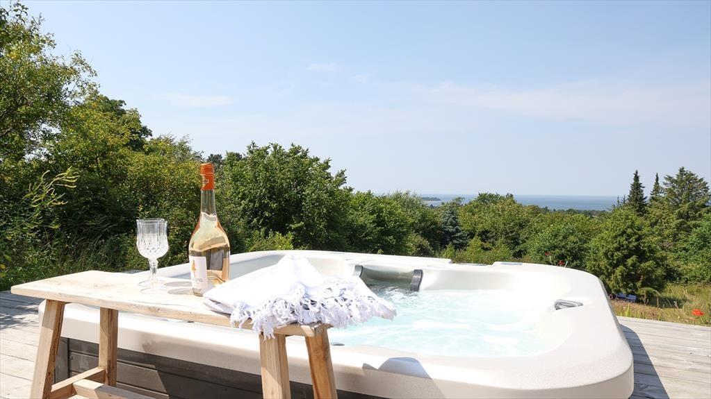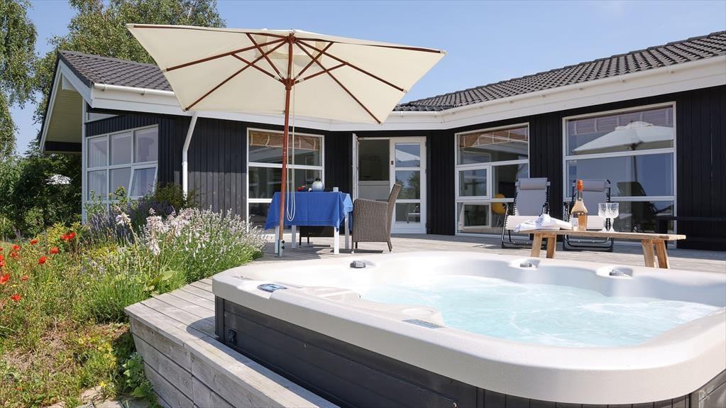 Das Ferienhaus liegt nur eine kurze Autofahrt vom Ordrup Strand entfernt, der ein perfekter Sandstrand ist. Hier könnt ihr direkt vom Ufer aus schwimmen oder vom Steg aus ins Wasser springen. Eure Kinder werden es lieben, Sandburgen zu bauen oder Krabben zu fangen, während ihr dem Meeresrauschen zuhört. Auf der schönen Terrasse könnt ihr die Sonne genießen, während ihr vielleicht sogar ein Reh vorbeilaufen seht. Das Grundstück ist groß und hügelig und bietet einen fantastischen Blick aufs Meer. Ein Abend im Whirlpool bei einer Flasche Sekt und dem Blick in die Sterne ist unbeschreiblich; das muss man erlebt haben!