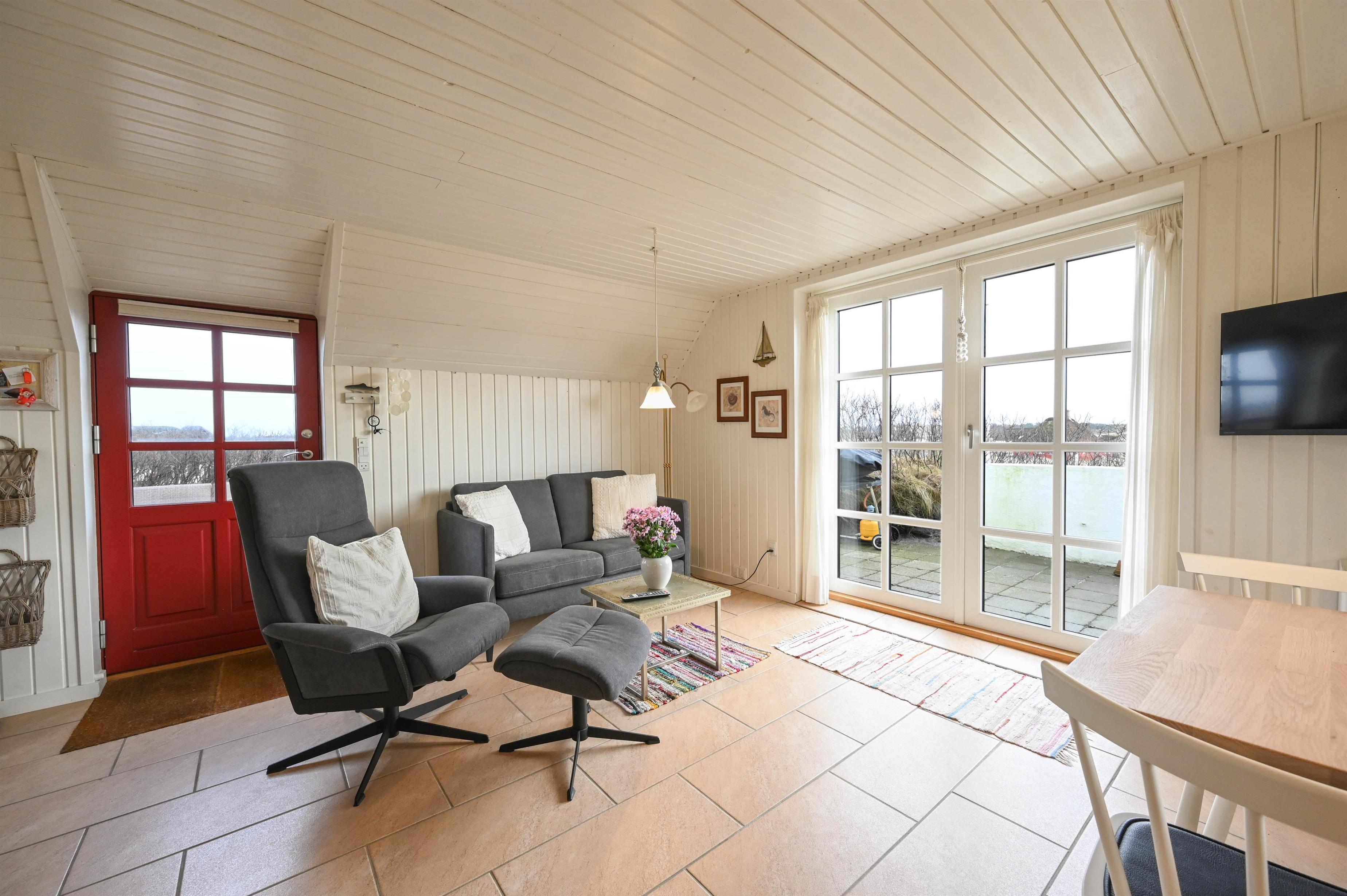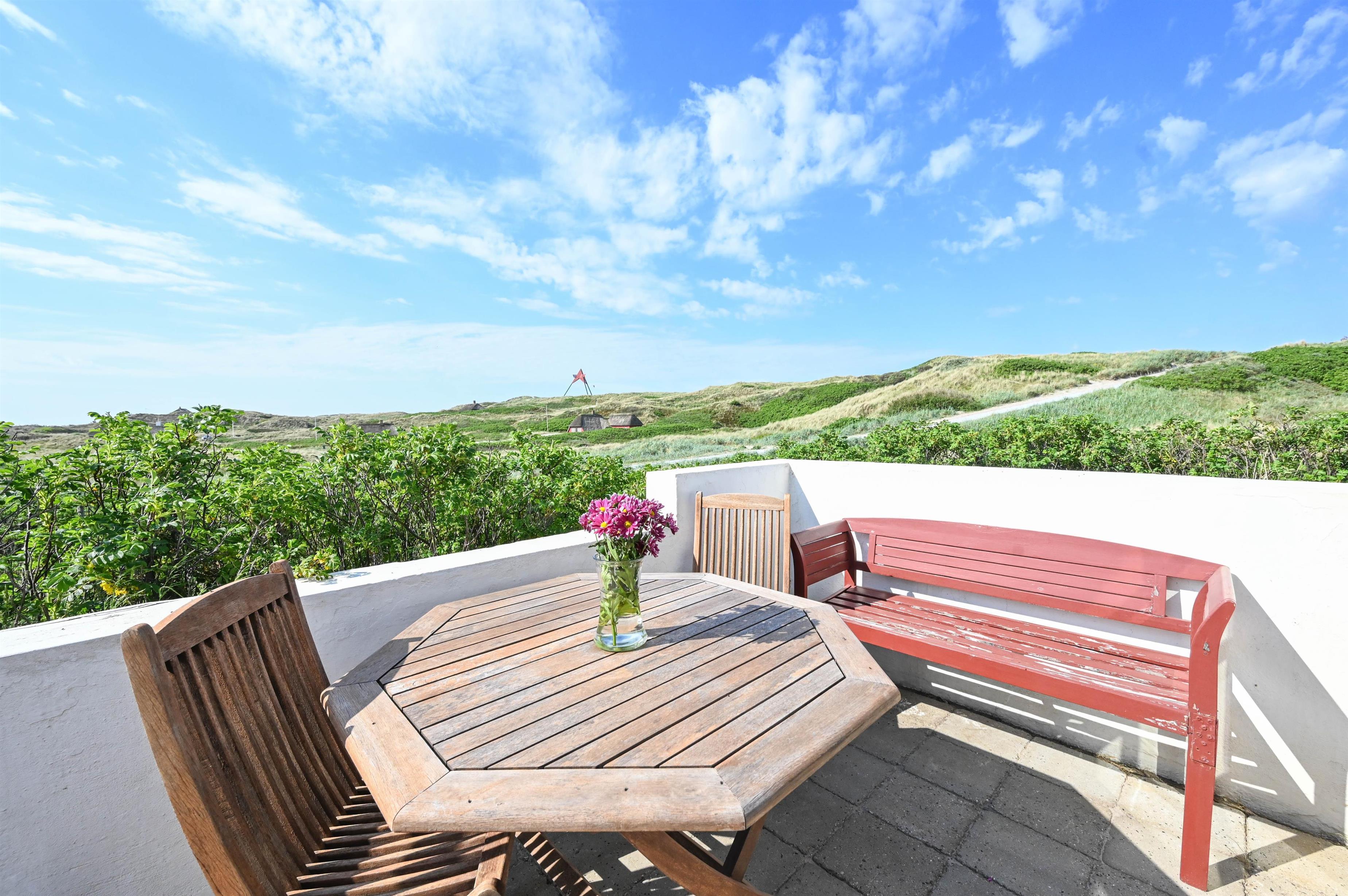 Die großen Terrassentüren nach Süden lassen viel Licht herein. Hier habt ihr einen schönen Blick auf die Dünen und das Seezeichen. Dies ist der perfekte Platz, um den Morgenkaffee in der Sonne oder ein Glas Wein beim Sonnenuntergang zu genießen. Auf den verschiedenen Terrassen rund ums Haus findet ihr immer ein windgeschütztes, ungestörtes Plätzchen.