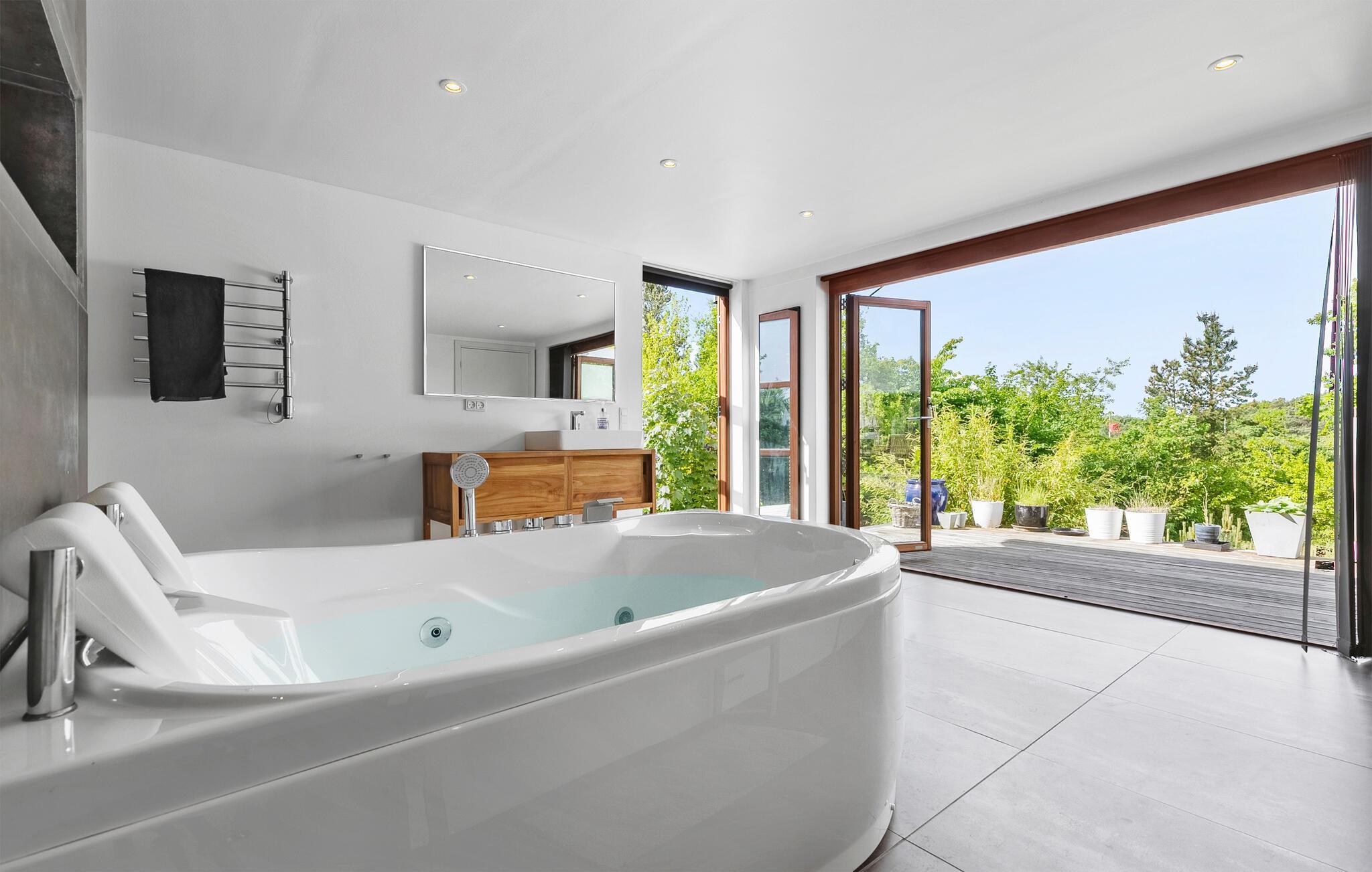 Luxuriöses Ferienhaus in Vejby Strand mit Whirlpool, Sauna und großem Garten für entspannte Urlaubstage.