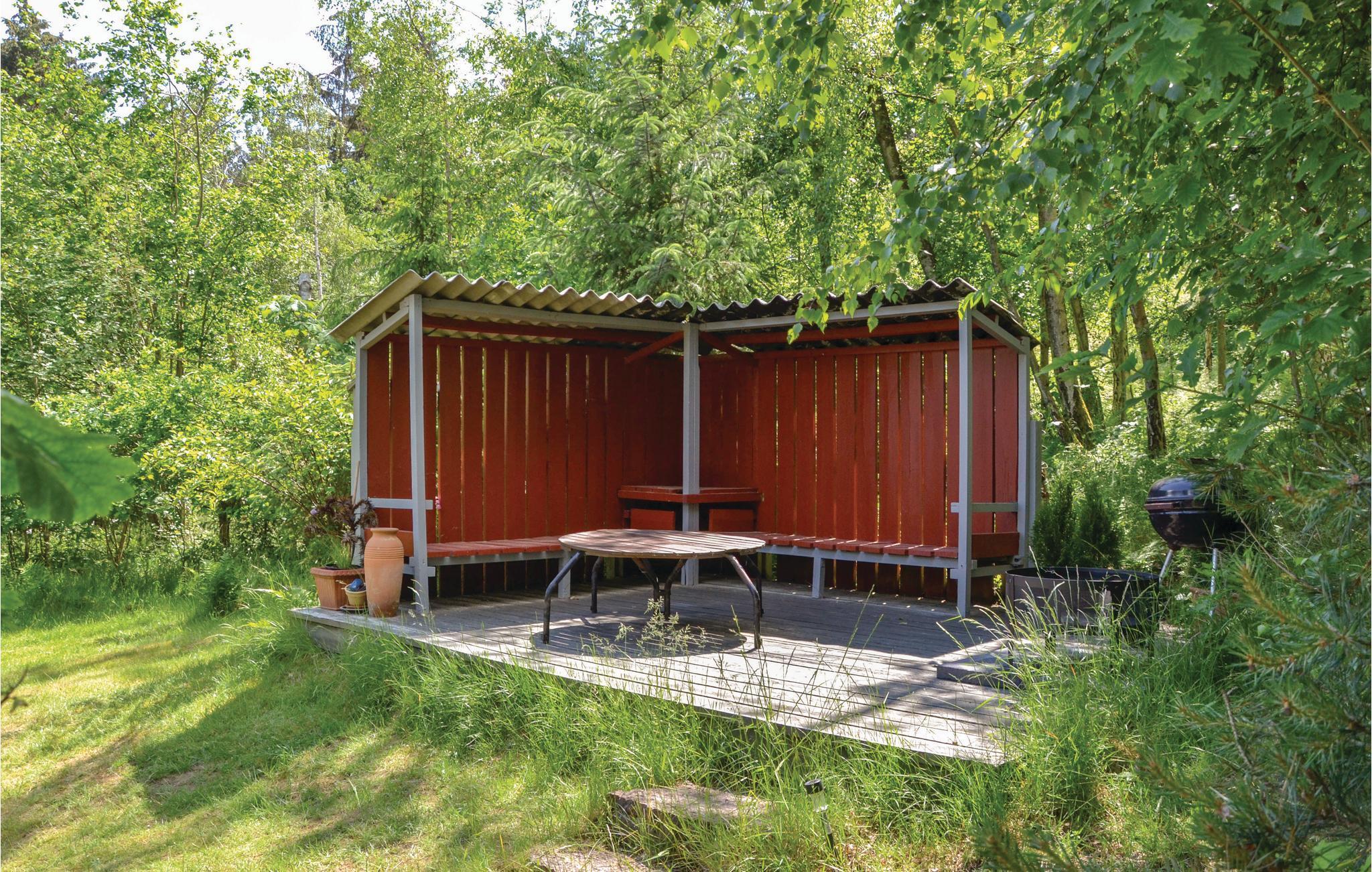Das Grundstück, auf dem das Ferienhau liegt, ist ein etwas hügeliger Naturgrund und es gibt eine Terrasse weiter hinten im Garten, zu der eine Treppe führt. Hier können Sie gut grillen.