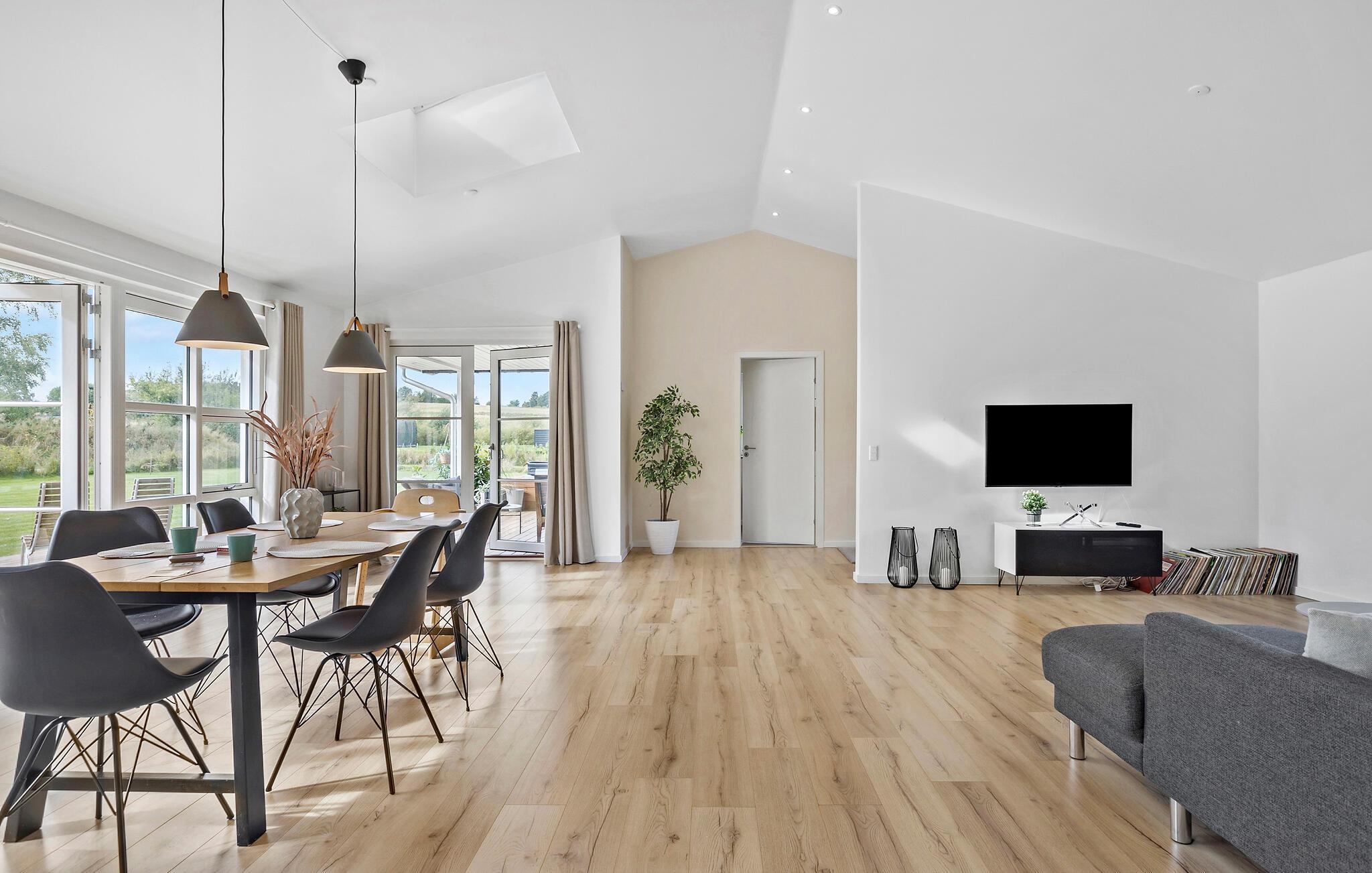 Dieses elegante, lichtdurchflutete Ferienhaus bei Vejby Strand lädt Sie zu einem erholsamen Urlaub in modernem Komfort ein. Die stilvolle und luftige Einrichtung und Gestaltung sorgt für eine entspannte Atmosphäre, in der Sie sich sofort wohlfühlen. Genießen Sie mit Ihrer Familie das Beisammensein im offenen Wohnraum, in dem Sie zusammen Kochen, Essen, Spielen oder Filmabende verbringen können.