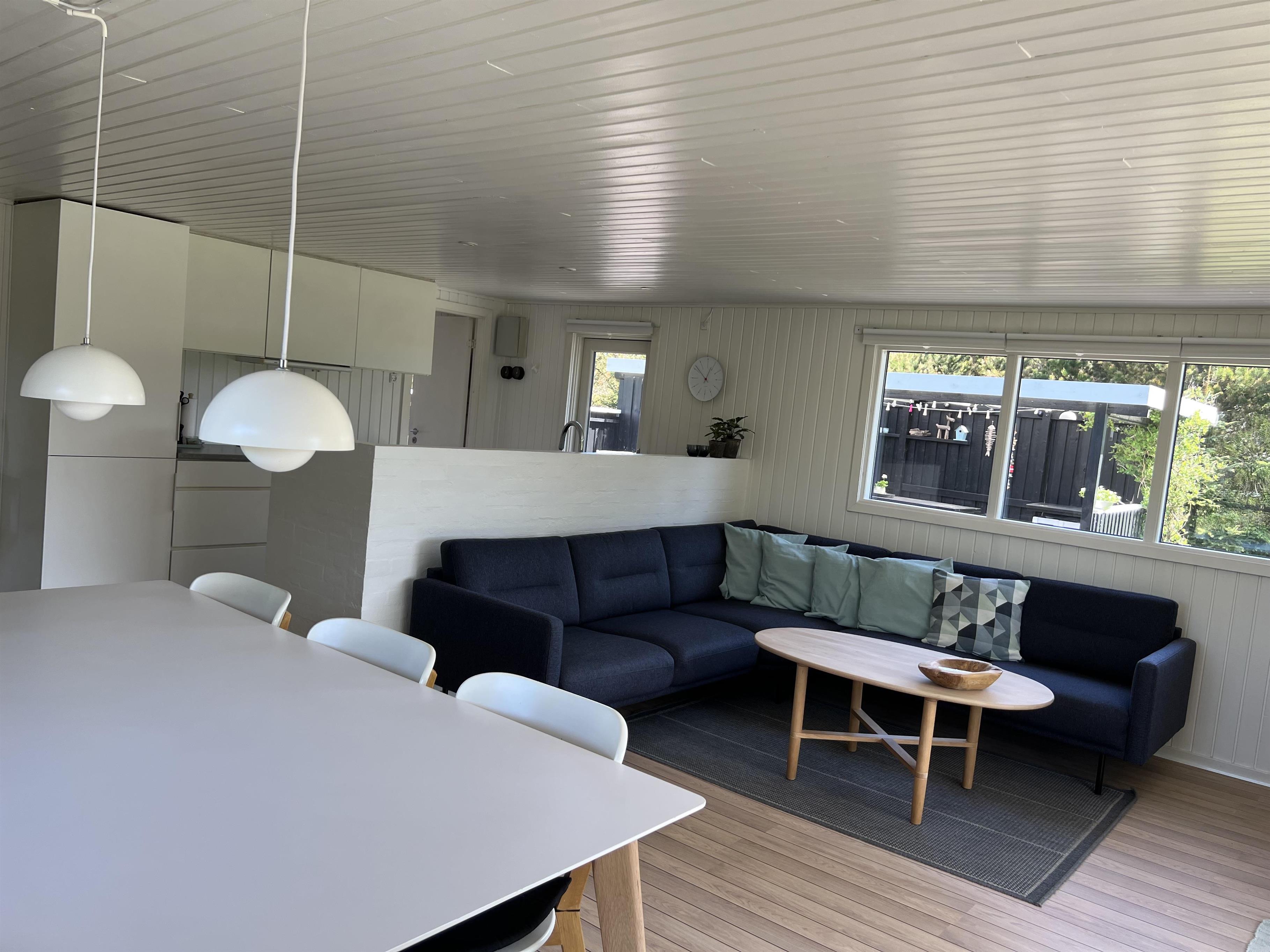 Charmantes Ferienhaus auf einem grossen Rasengrundstück. In der Nähe ist ein schöner Fahrrad- und Fussweg, der von Vejers Strand nach Grærup Strand geht. Dort haben Sie keinen Pkw-Verkehr und können gemütlich Ihren Spaziergang durchführen, vielleicht sehen Sie ja auch ein wenig Rotwild, was sich in dem angenzenden Wald oft aufhält. Das Ferienhaus ist für 6 Personen ausgestattet. Der Strand ist ca. 900 Meter vom Ferienhaus entfernt. Der Wohn- und Essbereich ist offen gehalten und das gesamte Ferienhaus ist mit einem Holzfussboden verlegt. Die Ausstattung im Hause ist hell und freundlich. Der Blickfang in dem Haus, ist der Kamin mit seiner gemauerten Wand dahinter. Das deutsche Fernsehprogramm empfangen Sie über Stofa, daher haben Sie nur 5-8 deutsche Kanäle. Die gemütliche Rundsitzecke lädt zum kuscheln ein. Am grossen Esstisch ist ausreichend Platz für alle seine Bewohner. Die Küche ist modern eingerichtet und verfügt über einen Herd mit Induktionskochfeld, einem Backofen, einer Geschirrspülmaschine, einer Mikrowelle und einer neuen Kühl- und Gefrierkombination. Das Badezimmer ist auch hell und verfügt über ein WC, ein Handwaschbecken und eine Dusche. Die Waschmaschine ist hier im Badezimmer untergebracht. Insgesamt stehen den Gästen drei Schlafzimmer zur Verfügung: DB + DB + 2B. Ein kleiner Hems ist vom Eingangsbereich zu erreichen. Im Eingangsberich ist ausreichend Platz für Jacken und Schuhe. Auf dem Grundstück steht für die Kleinen Gäste ein Schaukelstativ zur Verfügung. Auch genügend Platz zum Bolzen ist gegeben. Ein aufgestelltes Fussbator ist vorhanden. Ein kleiner Bereich der Terrasse am Haus ist sogar überdacht. Es sind keine Haustiere erlaubt. Das Ferienhaus ist 1988 erbaut worden und in 2015 renoviert.