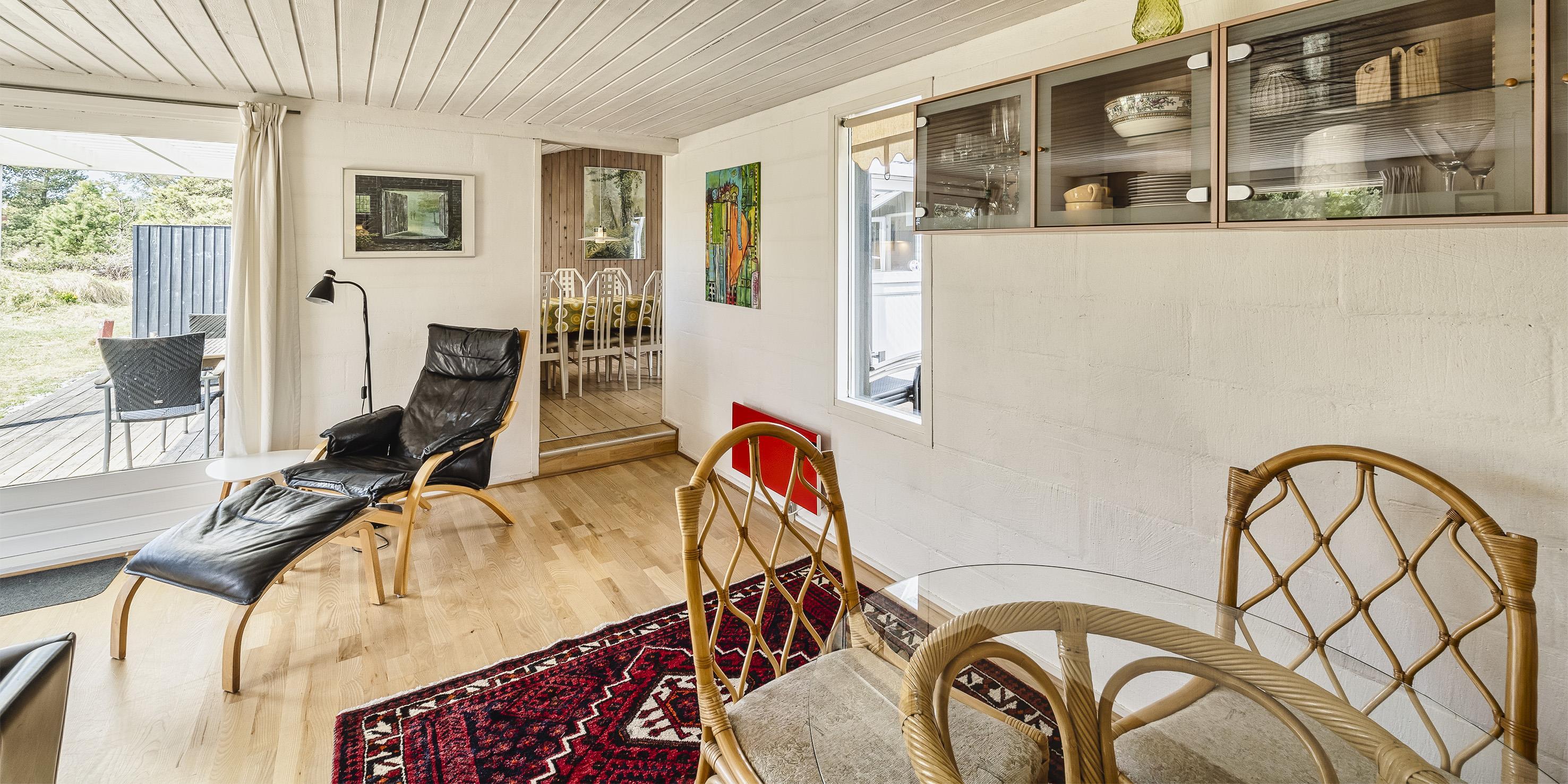 Einfaches Ferienhaus auf einem Naturgrundstück gelegen und nur ca. 800 Meter vom Strand entfernt. Das Ferienhaus ist für 5 Personen ausgestattet. Der Wohn- und Essreich ist hell und freundlich von der Ausstattung her. Ein Kamin ist im Wohnbereich aufgestellt. Im Wohnbereich ist ein kleiner extra Sitzplatz aufgestellt, der zum Spielen und Malen genügend Platz bietet, oder auch einfach um Ihre Postkarten zu schreiben. Es befindet sich eine Warmepumpe im Ferienhaus. Mit dieser Warmepumpe haben sie die Möglichkeit die Stromkosten zu senken, denn die Warmepumpe ist energiesparend. Das Fernsehprogramm empfangen Sie über eine Parabolantenne, Chromecast und einem Soundbar und Bluetooht. Die Küche verfügt über einen Herd mit Cerankochfeld, einer Geschirrspülmaschine, einer Mikrowelle und einer Kühl- und Gefrierkombinationvon 2020. In der offenen Verbindung zur Küche ist der Essbereich. Von hier aus haben Sie einen direkten Blick auf den Garten. Das Badezimmer ist mit einem WC, einem Handwaschbecken und einer Dusche ausgestattet. Das gesamte Badezimmer ist mit einer schrägen Decke ausgestattet und gibt die Masse von 195 cm runter zu 165 cm. Desweiteren ist eine Waschmaschine im Badezimmer untergebracht. Es gibt insgesamt drei Schlafzimmer im Ferienhaus: DB + DB + B + 2B. Das eine verfügt über ein 3/4 Doppelbett (Mass 120 x 200), ein weiteres über ein normales Doppelbett (neu von 2020) und das Dritte hat ein Einzelbett. Desweitere gibt es ein kleine Gästehaus mit zwei einzelbetten das benutzt werden kann, wenn mal Besuch vorbei kommt. Das Ferienhaus verfügt über einen Internetanschluss(W-Lan). Ein großer Terrassenbereich steht den Gästen zur Verfügung, wobei sogar ein kleiner Teil überdacht ist. Es sind keine Haustiere erlaubt, mit Ausnahme ein kleiner Hund mit max. Rückenhöhe von 30 cm. Rauchen und Katze ist nicht erlaubt! Das Ferienhaus ist in 1959 erbaut worden und es wurde laufend renoviert. Einige Möbelstücke sind auch ausgetauscht worden, wie z.B. die Kühl- und Gefireiikombination, das Sofa in der Stube und das Bett im grossen Schlafzimmer. Auch die Gartenmöbel sind erneuert worden. Das ganze Ferienhaus ist ein bisschen aufgefrischt worden. Für dieses Ferienhaus entstehen Zusatzkosten für den Wasserverbrauch.
