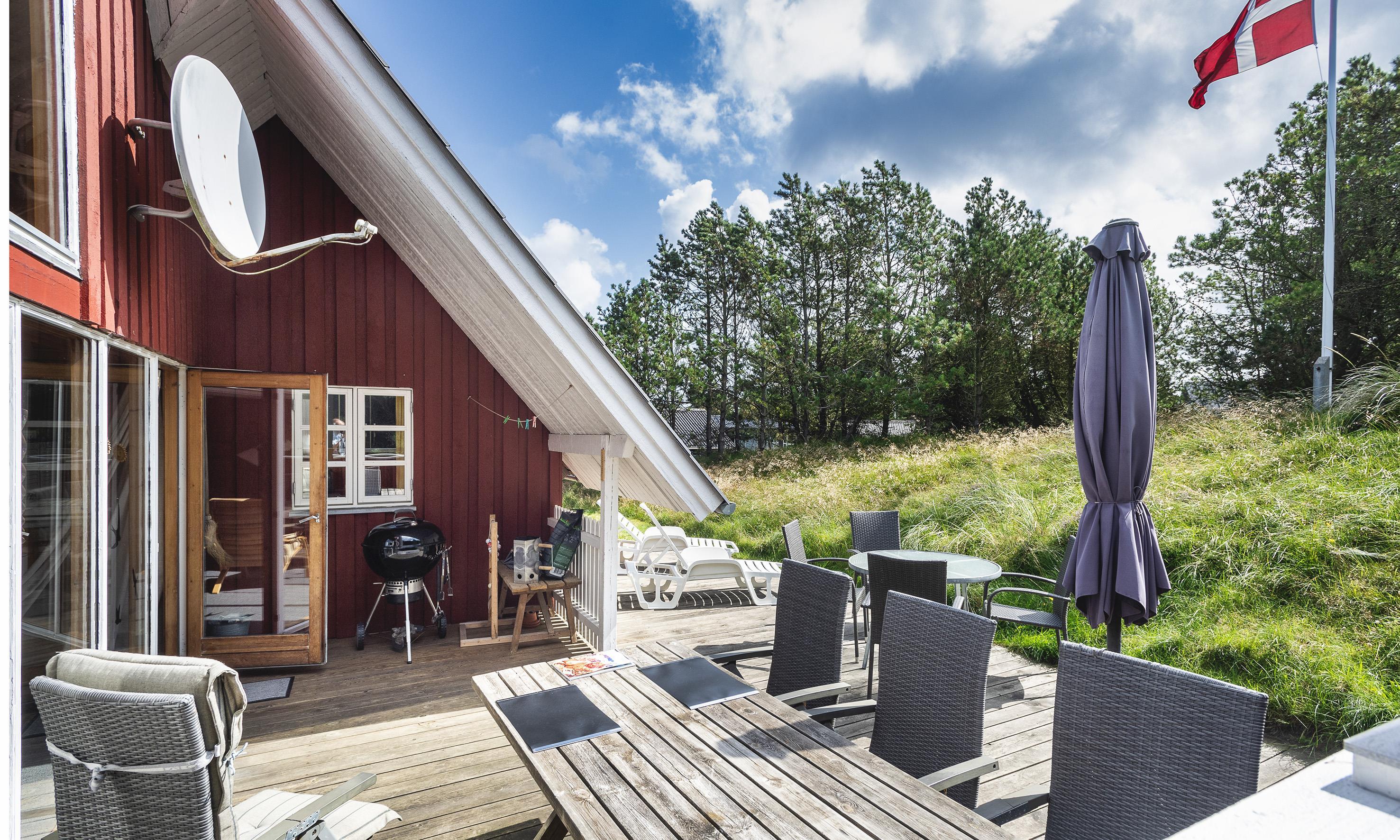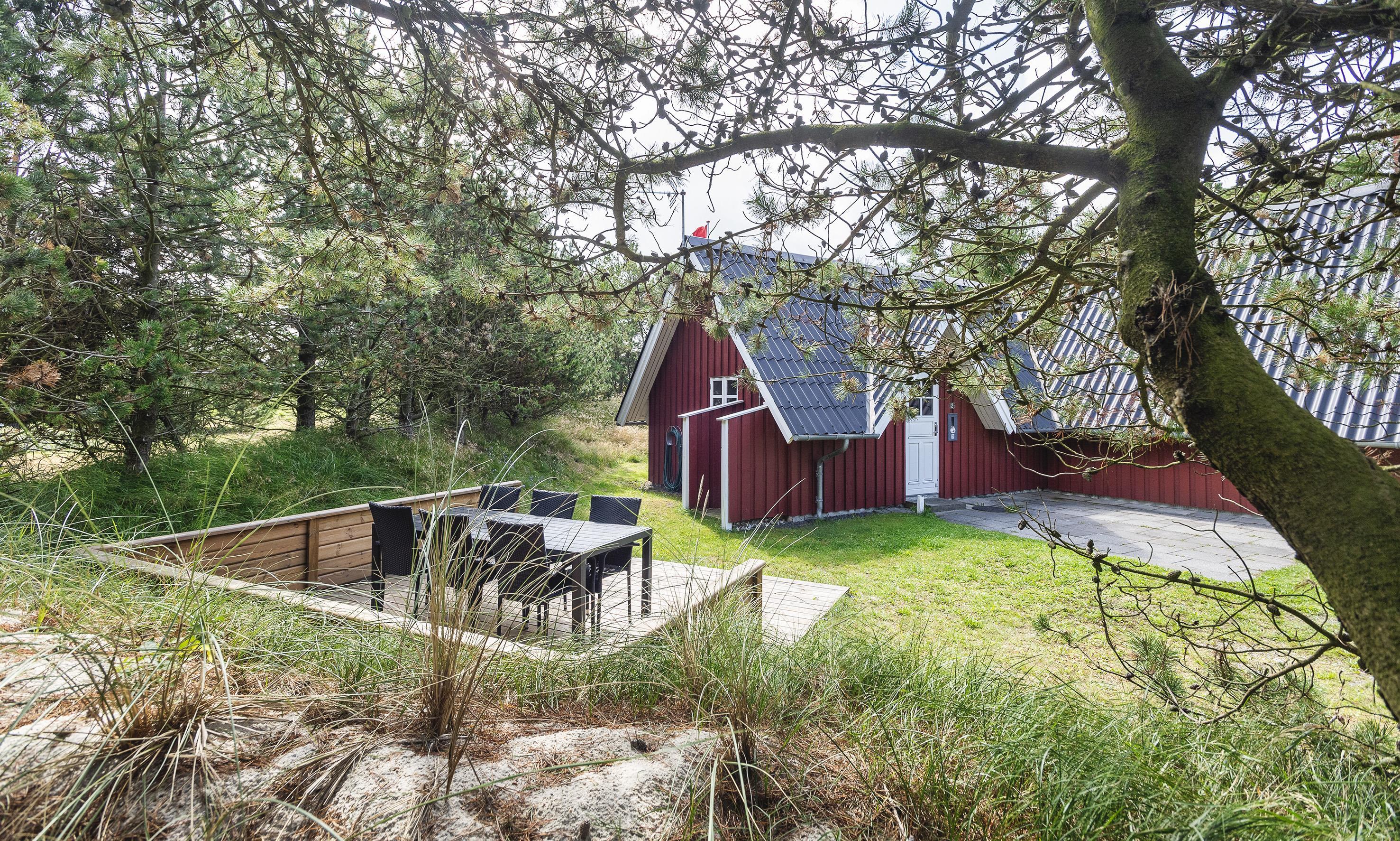 Nett eingerichtetes Ferienhaus mit dem Namen "Tex" auf einem grossen Naturgrundstück und teilweise in den Dünen gelegen. Das Ferienhaus ist für 6 Personen ausgestattet und liegt nur 600 Meter vom Strand entfernt. Der Wohn- und Essbereich ist mit einem Teppichboden ausgestattet und mit einem Morsø-Kamin. Hier im Wohn- und Essbereich liegen die Dachbalken offen und geben dem Bereich einen besonderen Charme. Eine Holztreppe in diesem Bereich, führt zu einem Schlafzimmer im Obergeschoss, das mit zwei Einzelbetten ausgestattet ist. Das deutsche Fernsehprogramm empfangen Sie über eine Parabolantenne. Die Küche ist mit einem Cerankochfeld, einem Backofen und einer Geschirrspülmaschine ausgestattet. Das Badezimmer verfügt über ein WC, ein Handwaschbecken, eine Dusche und eine Sauna. Eine Waschmaschine steht zur Benutzung zur Verfügung und ist im Badezimmer untergebracht. Es gibt insgesamt drei Schlafzimmer im Ferienhaus: DB + DB + DB. Das Ferienhaus ist mit einem Internetanschluss (W-Lan) ausgestattet. Eine am Haus befindliche Terrasse lädt zum relaxen ein und ausserdem befindet sich hier auch eine Aussendusche. Auf dem Grundstück befindet sich eine Schaukel für die kleinen Gäste.Es sind max. zwei Haustiere erlaubt. Das Rauchen ist nicht gestattet. Das Ferienhaus ist in 1964 erbaut worden und in 1987 renoviert.