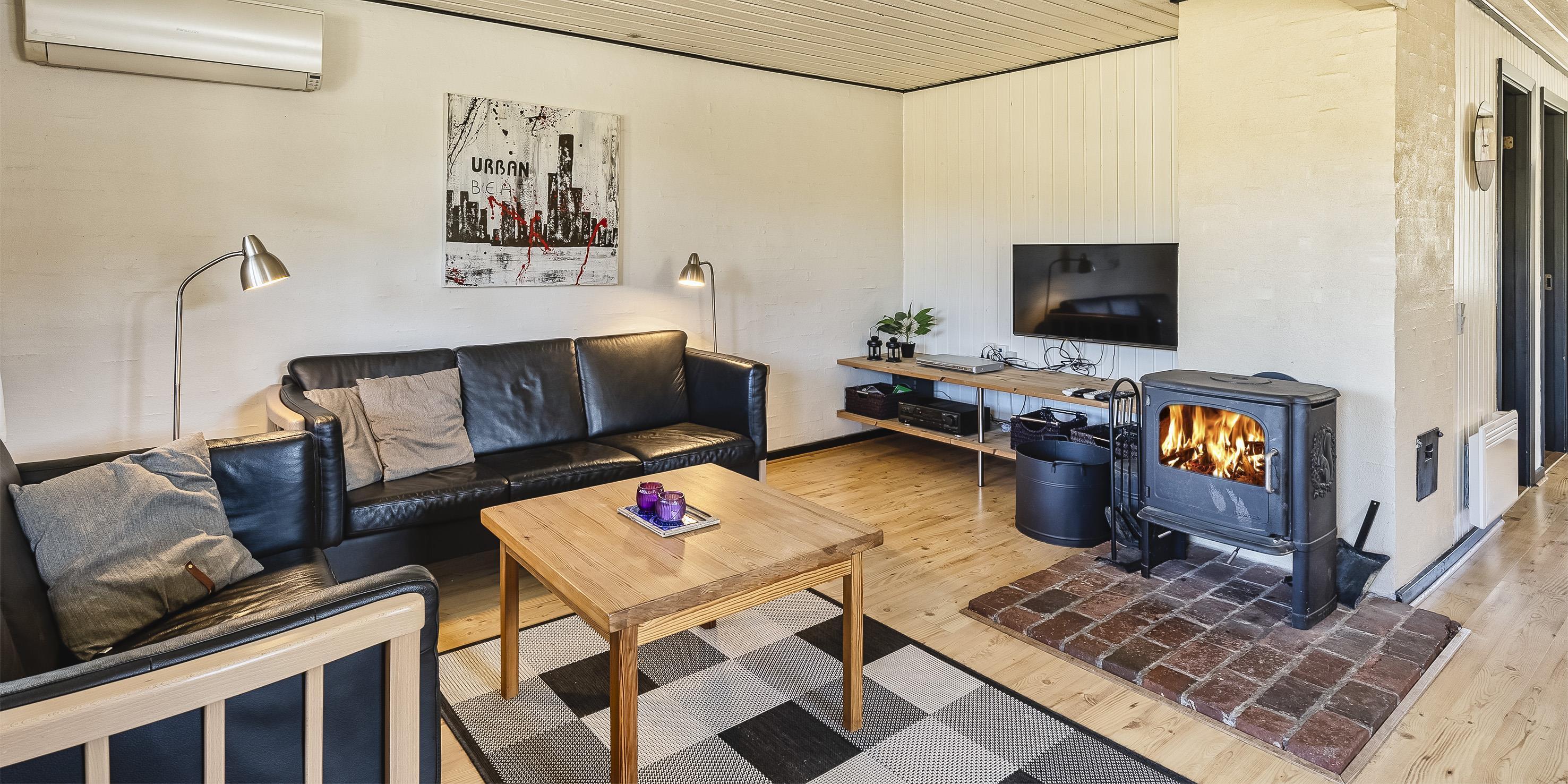 Im Wohnbereich ist ein Kaminofen aufgestellt, der an den Abenden eine angenehme wohlige Wärme und Gemütlichkeit ausstrahlt. Desweiteren befindet sich hier auch eine Wärmepumpe. Mit dieser Wärmepumpe haben Sie die Möglichkeit die Stromkosten zu senken, da sie energiesparend ist. Im Haus können Sie deutsches Fernsehprogramme empfangen und die dänischen Programme über eine Boxer-Karte. Die Küche ist gut ausgestattet und verfügt über einen Herd mit Ceranfeld, einem Backofen, einer Geschirrspülmaschine, eine Mikrowelle und einen Kühlschrank mit kleinem Gefrierfach. Den Gästen stehen insgesamt zwei Badezimmer zur Verfügung, beide sind mit je einer Dusche, einem Handwaschbecken und einem WC ausgestattet. Das Badezimmer im Erdgeschoss verfügt noch über eine kleine Handtuchhalteheizung und Fussbodenheizung. Es gibt insgesamt 4 Schlafzimmer: DB + DB + DB + DB. Ein schöner, weitläufiger Terrassenbereich macht Lust und Laune draußen zu sitzen und das Rauschen des Meeres zu verfolgen, oder einfach einen großartigen Grillabend zu gestalten und zu genießen. Ein kleiner Teil der Terrasse ist sogar überdacht. Das Rauchen ist im Ferienhaus nicht gestattet. Es sind maximal 2 Hunde erlaubt. Das Haus verfügt über einen WLan-Anschluss. Das Ferienhaus wurde 1977 erbaut und 2005 renoviert.