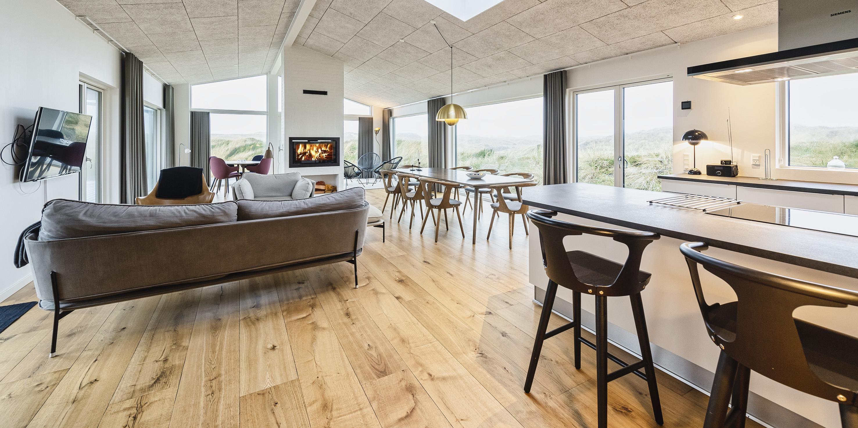 In 2018 neu gebautes Energiesparhaus in Mitten auf der Dünenlandschaft gelegen. Das Ferienhaus ist für 8 Personen ausgestattet und liegt nur ca. 75 Meter vom Strand entfernt. Dieser Neubau strahlt einen besonderen Charme aus und der in der Mitte als Säule aufgestellte Kamin gibt dem ganzen den besonderen Flair. Rundum bietet dieses Ferienhaus einen tollen Panoramablick. Durch die grossen Fensterfronten scheint viel Licht in das Ferienhaus und bringt dadurch viel Helligkeit und Freundlichkeit. Erwachen Sie morgens und schauen auf die Dünen, besser kann der Tag nicht starten. Fast jedes Schlafzimmer hat einen Ausgang zum Terrassenbereich. Ein grosser Terrassenbereich reicht um das Ferienhaus herum. Sie können überall Ihren Liegestuhl aufstellen und mit der Sonne wandern. So sichern Sie sich Ihr Sonnenbad zu jeder Tageszeit. Das komplette Ferienhaus verfügt über Erdwärme und ist daher mit einer Fussbodenheizung ausgestattet. So strahlt das Ferienhaus immer eine gemütliche warme Atmospähre aus. Der Wohnbereich ist sehr grosszügig gestaltet und verfügt über mehrere verschiedene Sitzmöglichkeiten, wo Sie dann individuell den Blick auf die Dünen oder den gemütlichen Kamin werfen können. Das Fernsehprogramm empfangen Sie über Stofa, daher sind es nur 5-8 deutsche Kanäle die Sie empfangen können. Chromecast. Es befindet sich eine Warmepumpe im Ferienhaus. Mit dieser Warmepumpe haben sie die Möglichkeit die Stromkosten zu senken, denn die Warmepumpe ist energiesparend. Der Küchenbereich ist sehr modern eingerichtet und mit einem Herd mit Cerankochfeld, einem Backofen, einem Quooker, einer Geschirrspülmaschine, einer Mikrowelle- und Kombiofen, die sich in einer Arbeitshöhe befinden, und einer Kühl- und Gefrierkombination ausgestattet. Es stehen den Gästen 2 Badezimmer zur Verfügung. Beide verfügen über je ein Handwaschbecken, ein WC und eine Dusche. In einem der Bäder befindet sich ebenfalls eine Sauna und ein Whirlpool. Eine Waschmaschine und ein Trockner stehen den Gästen ebenfalls zur Verfügung. Es gibt insgesamt 4 Schlafzimmer im Haus: DB + DB + DB + DB + B. Es gibt einen Internetanschluss (W-lan) im Ferienhaus. Das Rauchen im Hause ist nicht erlaubt. Es ist max. ein Haustier erlaubt. Zusätzlich befindet sich ein Anschluss am Ferienhaus für El-Fahrzeuge. Das Ferienhaus wurde in 2018 neu gebaut. Zusatzkosten für Wasserverbrauch. Kletterhäuschen und Schaukel. Gratis Eintritt für Oksbøl Badeland, Fitness in Vejers und Blåvand und Golf i Ho 2025.