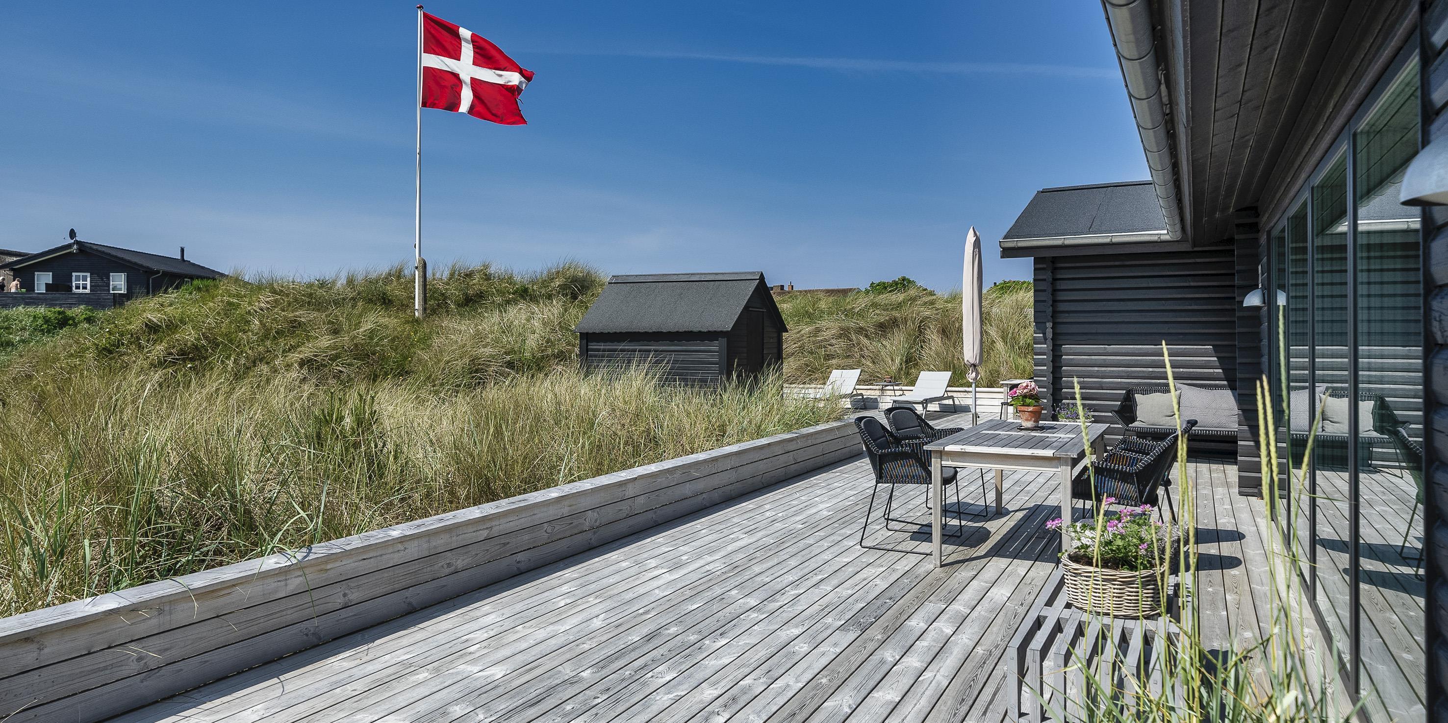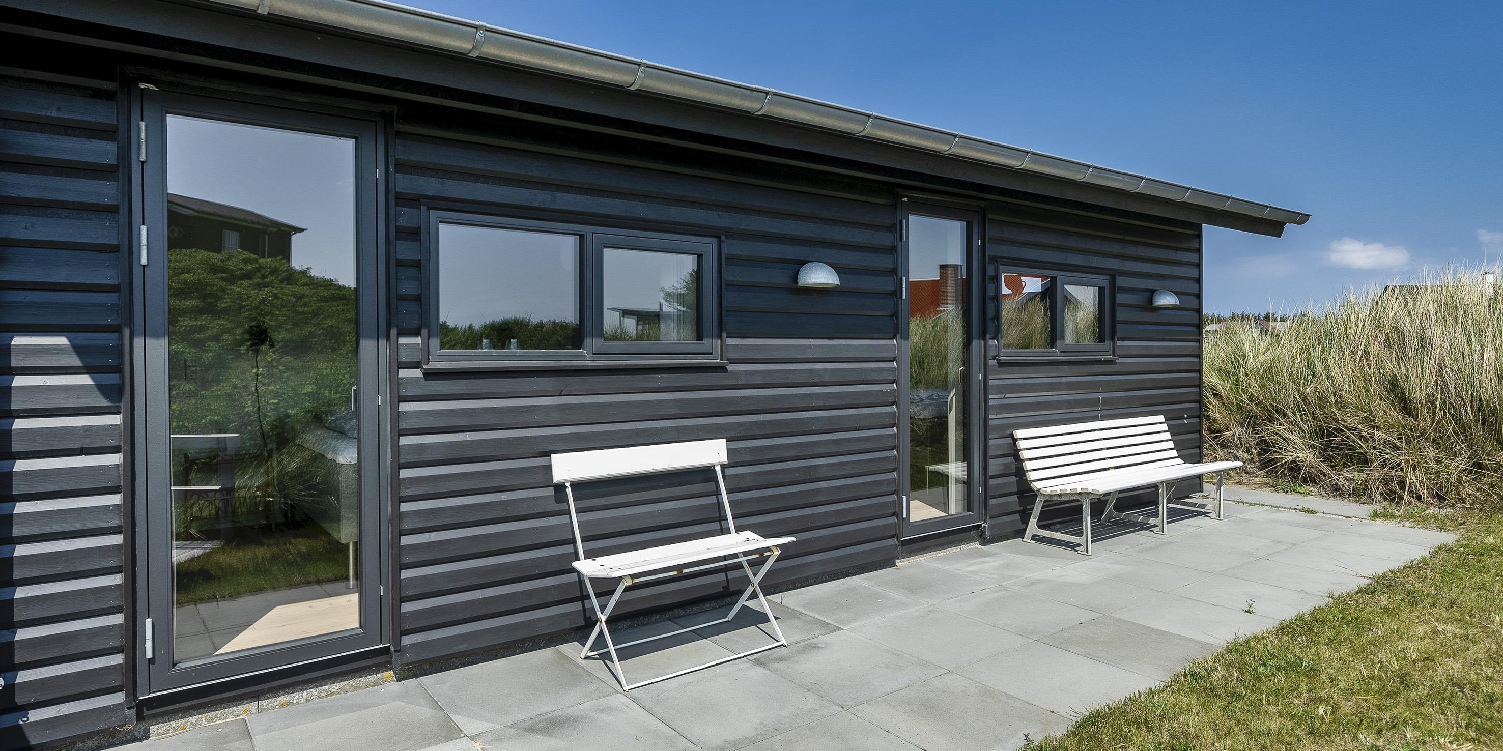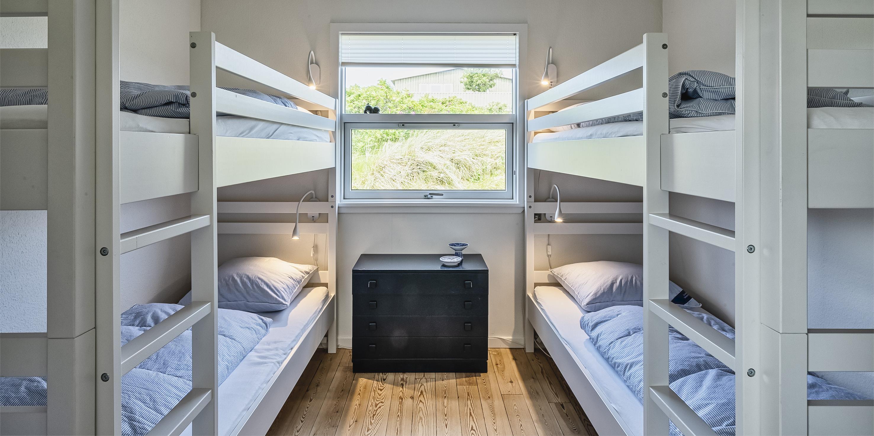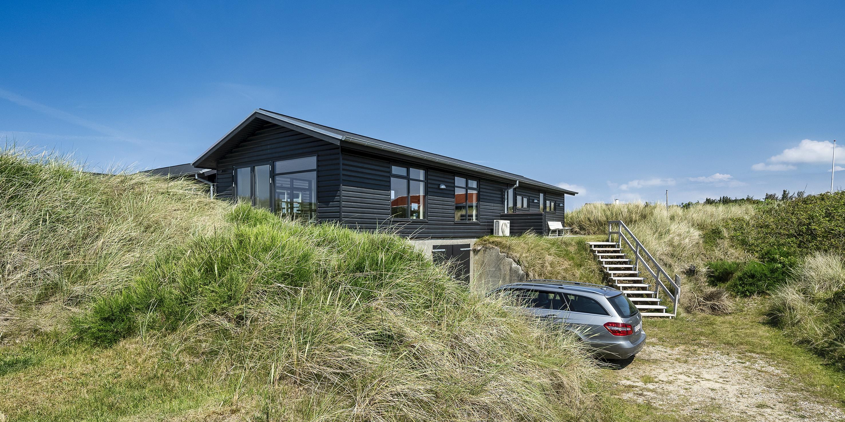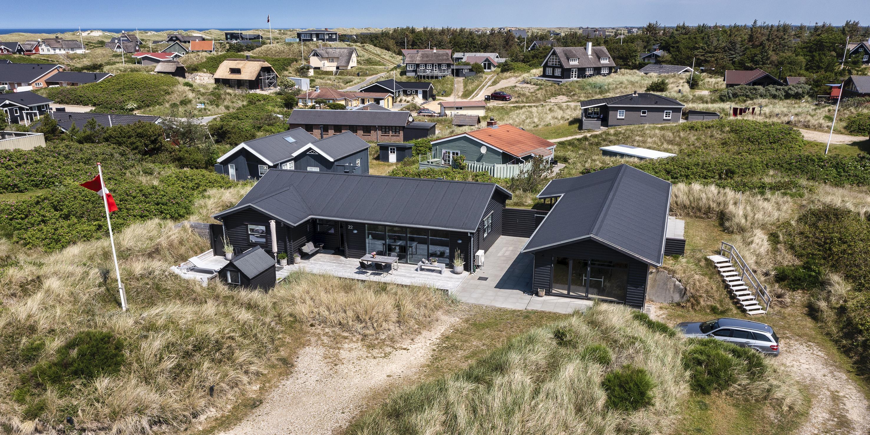Spannendes und neurenoviertes Ferienhaus für insgesamt 8 Personen (6 Erwachsene und 2 Kindern). Das Gebäude wurde mit hochwertigen Materialien renoviert und in einem modernen und trendigen Design gestaltet, das sich gut in die Umgebung einpflegt. Das Ferienhaus liegt auf einem Dünengrundstück und der Strand ist nur Sage und Schreibe 200 Meter entfernt. Ebenso die Einkaufsmöglichkeiten und die Restaurants am Ort. Das Ferienhaus hat eine gesamte Wohnfläche von 185 m2 und ist in ein Haupthaus und Gästehaus aufgeteilt. Das Ferienhaus spendet eine großartige Atmosphäre im modernen und nordischen Stil. Der Eingangsbereich ist großzügig gehalten und verfügt wie ein Hauswirtschaftsraum über ein Handwaschbecken mit Ablagefläche. Ebenfalls ist hier die Waschmaschine untergebracht. Der Essbereich und das Wohnzimmer sind mit der Küche offengehalten. Der Wohnbereich verfügt über große Panoramafenster und wirkt daher sehr lichtdurchflutet. Das Fernsehprogramm empfangen Sie über Stofa, daher sind nur 5-8 deutsche Fernsehprogramme zu empfangen. Hier im Wohnbereich gibt es zusätzlich eine Warmepumpe. Mit dieser Warmepumpe können Sie die Stromkosten senken, da sie energiesparend ist. Die Küche ist modern und mit vielem Komfort ausgestattet. Sie beinhaltet einen Kochinsel, wo sich der Herd mit Ceranfeld, eine Dunstabzugshaube und der Backofen befindet. Gegenüber ist dann die Einbauküche mit Spüle, Geschirrspülmaschine, einer Mikrowelle und einer Kühl- und Gefrierkombination. Insgesamt gibt es vier Schlafzimmer im Ferienhaus. Zwei davon befinden sich im Haupthaus: DB + DB + DB + 2B. Ein großes Masterbadezimmer mit Handwaschbecken mit großer Ablagefläche, WC und Dusche steht den Gästen zur Verfügung.