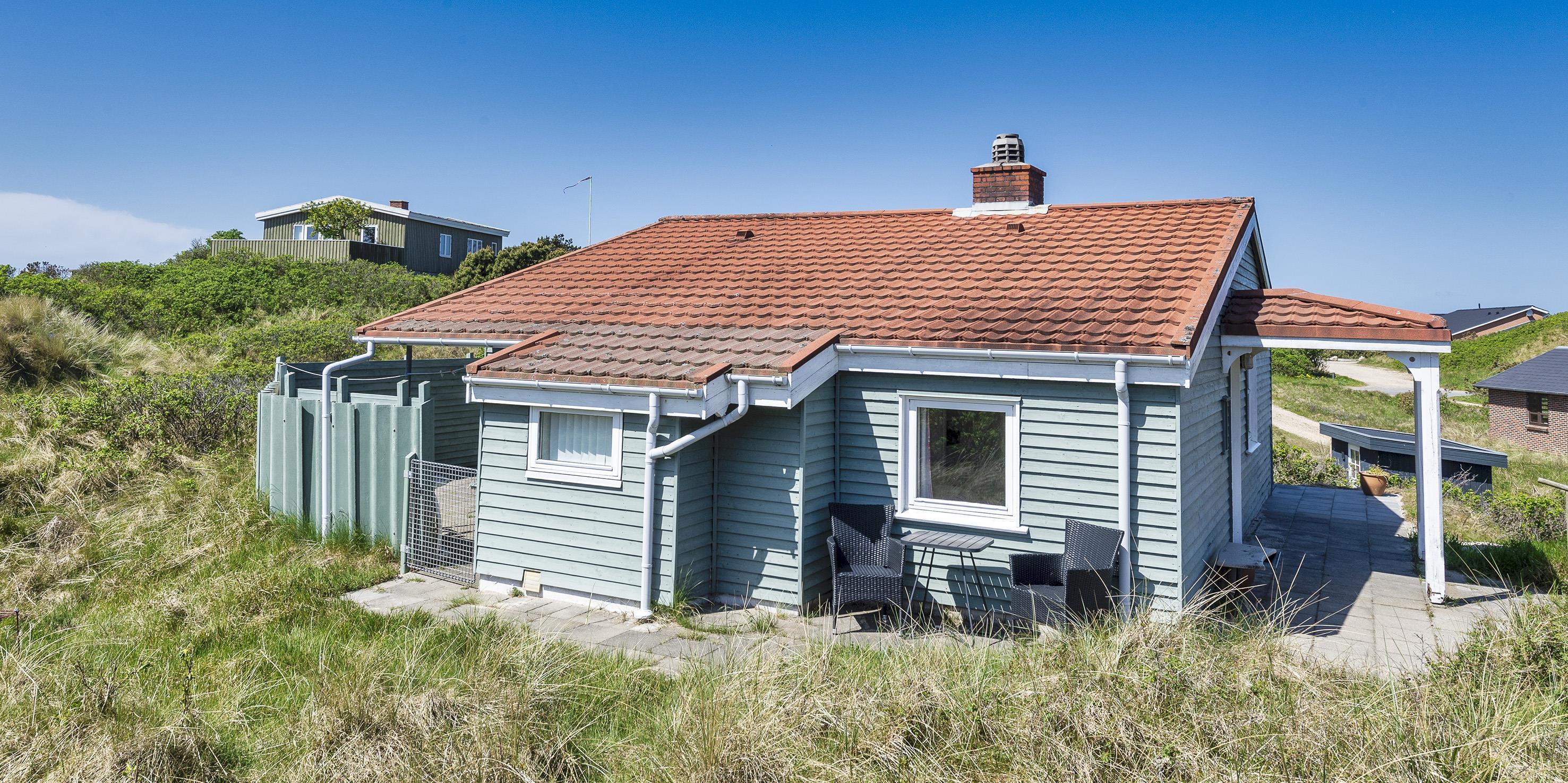 Auf einer Düne gelegenen ist dieses kleine gemütliche Puppenstuben - ähnliche Ferienhaus mit Namen ”Lilli”. Es ist für 4 Personen und liegt nur 200 Meter vom Strand entfernt. Alle Räumlichkeiten gehen von dem Flur ab. Das Wohnzimmer kann aber auch von der Küche aus erreicht werden. Auf den gemütlichen Ledermöbeln können sie richtig entspannen und relaxen. Die zwei Sessel haben auch einen passenden Hocker. Im Wohnbereich befindet sich der Kamin. Es befindet sich eine Warmepumpe im Ferienhaus. Mit dieser Warmepumpe haben sie die Möglichkeit die Stromkosten zu senken, denn die Warmepumpe ist energiesparend. Das deutsche Fernsehprogramm ist über eine Parabolantenne zu empfangen. Der gesamte Wohn-, Ess- und Küchenbereich ist mit einem hübschen Laminatboden verlegt. Die Küche ist hell und freundlich und verfügt über einen Herd mit Platten, einem Backofen, einer Mikrowelle, einer Geschirrspülmaschine und einer Kühl- und Gefrierkombination. Das Badezimmer befindet sich zwischen den beiden Schlafzimmern. Es verfügt über ein WC, ein Handwaschbecken, eine Dusche und eine Fußbodenheizung. Die Waschmaschine und der Trockner sind im Badezimmer untergebracht und geben zusätzlich eine große Ablagefläche für Ihre Baduntensilien, dazu kommt dann noch die schöne Schrankwand mit Spiegel. 2 Schlafzimmer: DB + 2B. Das Ferienhaus verfügt über einen Internetanschluss (W-Lan). Es gibt zwei Terrassen am Haus. Eine davon ist geschlossen und die Andere ist offen gehalten. Es sind max. 3 Haustiere erlaubt. Ihr Fahrzeug findet in dem Carport seinen Platz. Das Rauchen ist nicht gestattet. Das Ferienhaus ist 1957 erbaut und in 2002 renoviert worden.