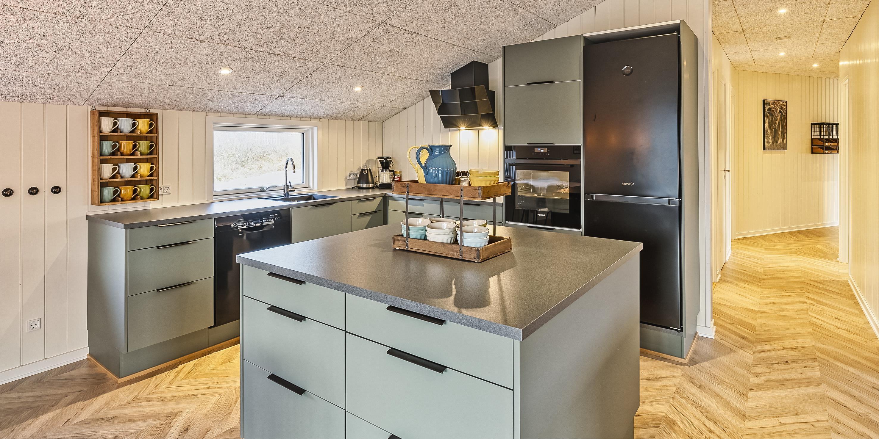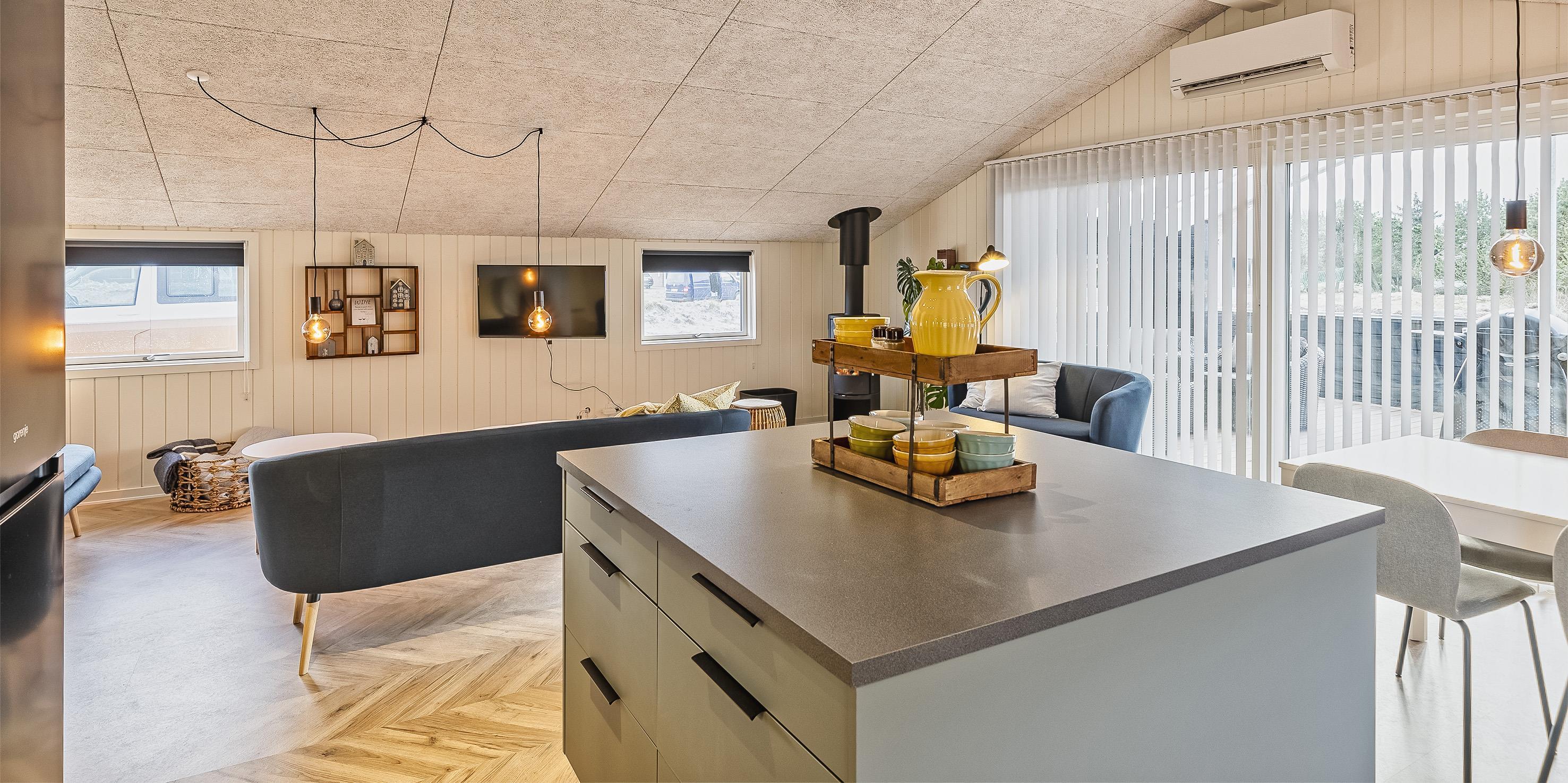 Über den Anbieter Norlys stehen etwa 10 deutsche sowie mehrere dänische TV-Kanäle zur Verfügung. Die Küche ist gut ausgestattet – mit Cerankochfeld, Backofen in Arbeitshöhe, Geschirrspüler, Mikrowelle und einer Kühl-Gefrierkombination.