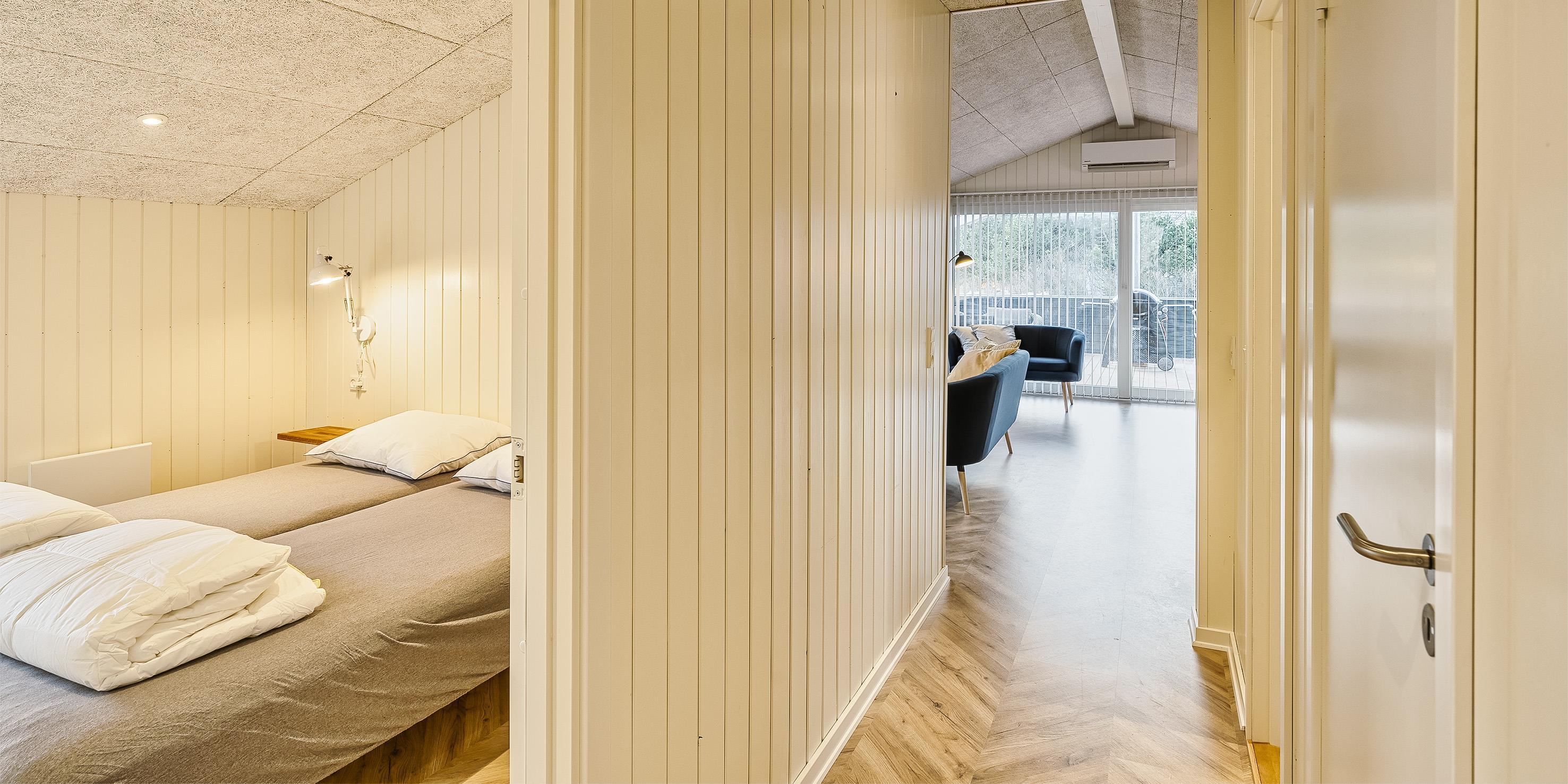 Das Haus verfügt über zwei moderne Badezimmer, beide mit Fußbodenheizung, WC, Handwaschbecken und Dusche. In einem der Badezimmer befindet sich zusätzlich eine Sauna. Insgesamt gibt es vier Schlafzimmer, alle mit Doppelbetten (180 cm).