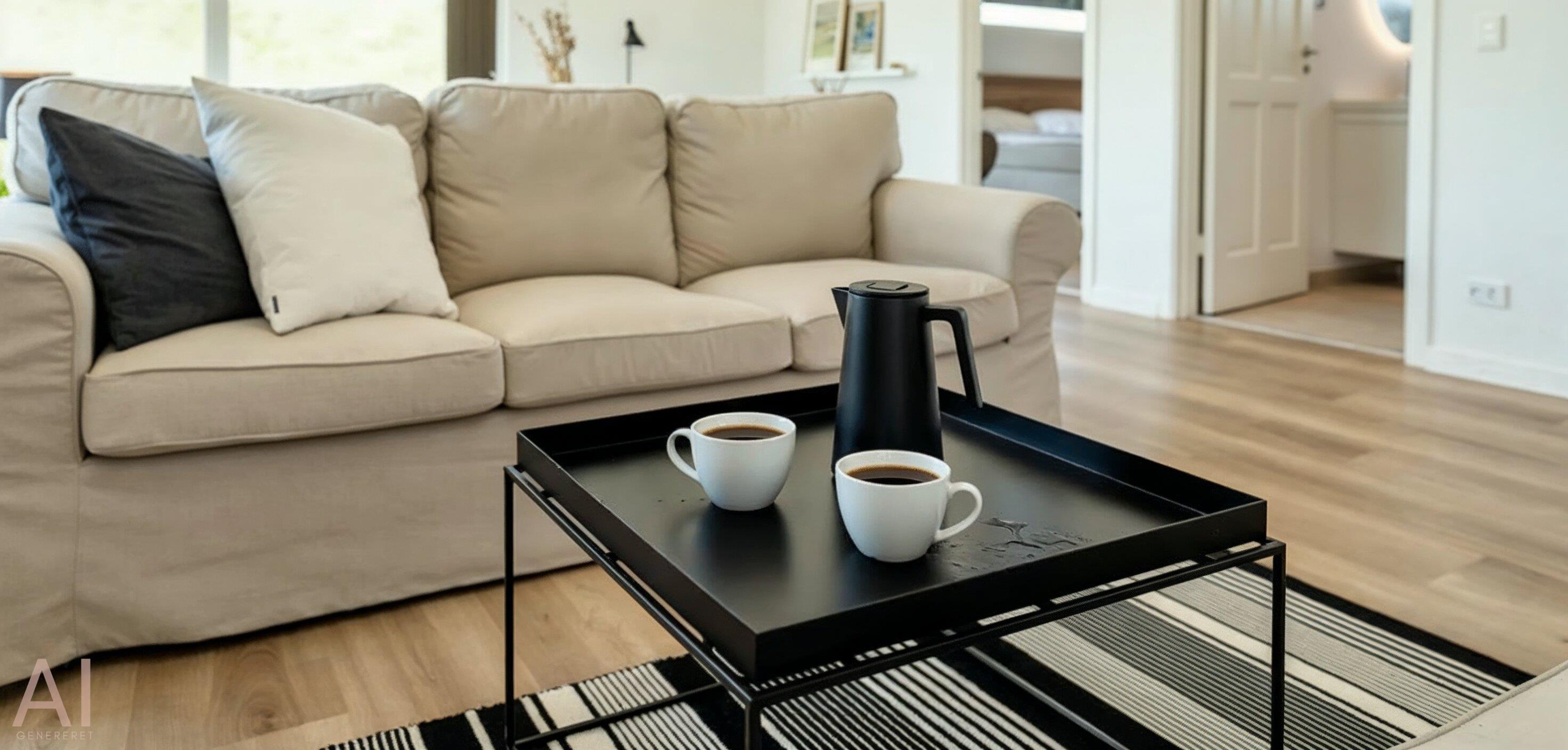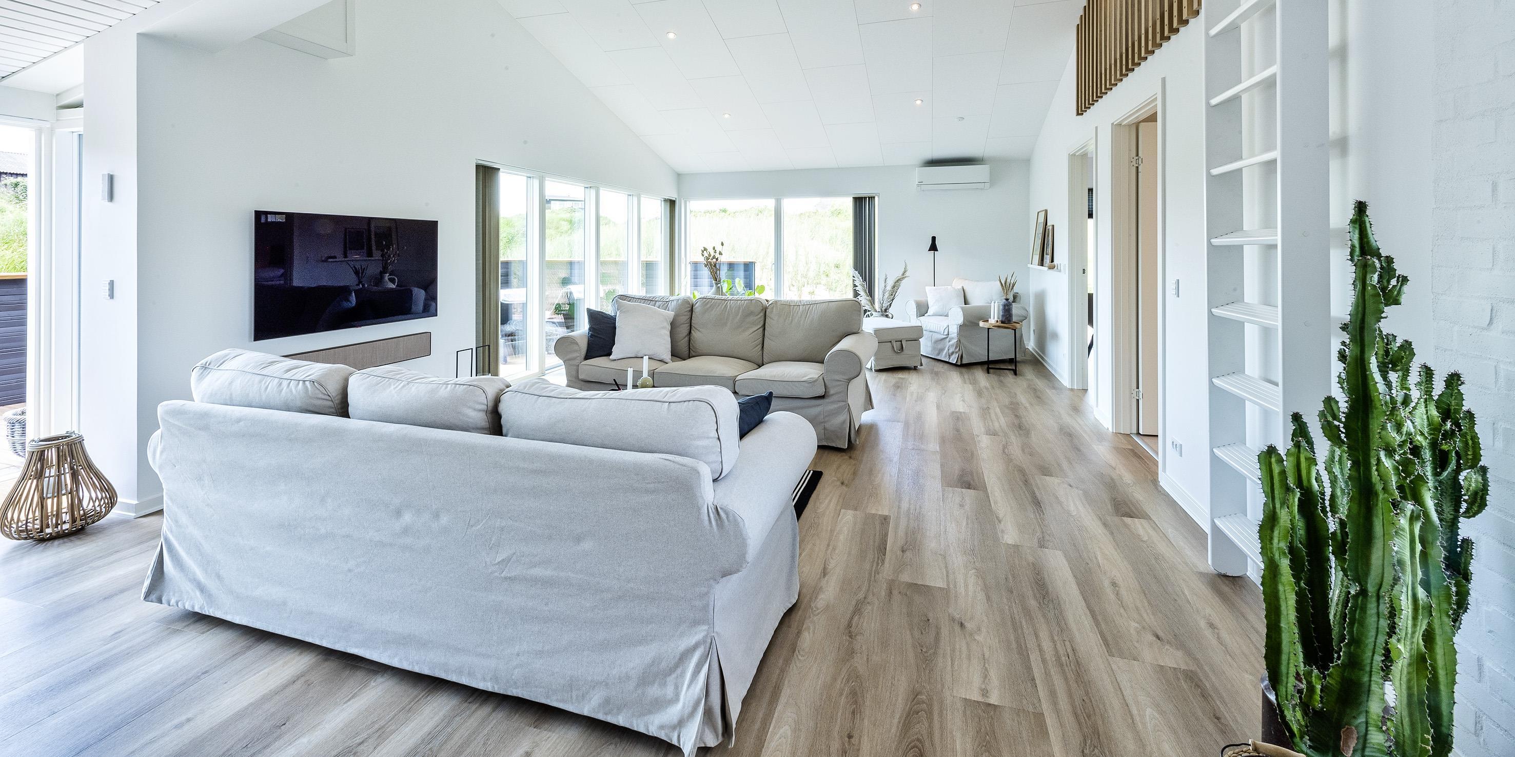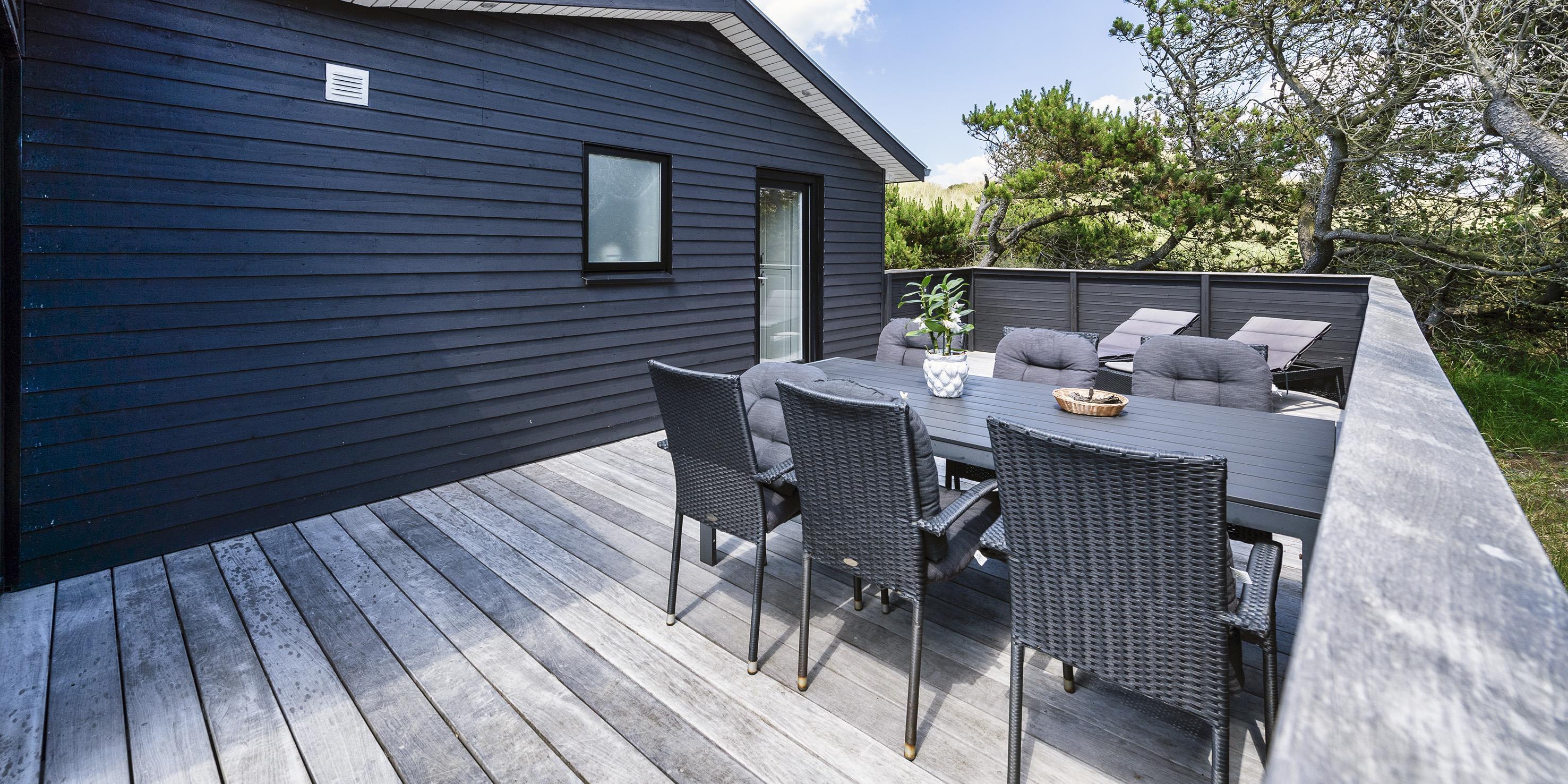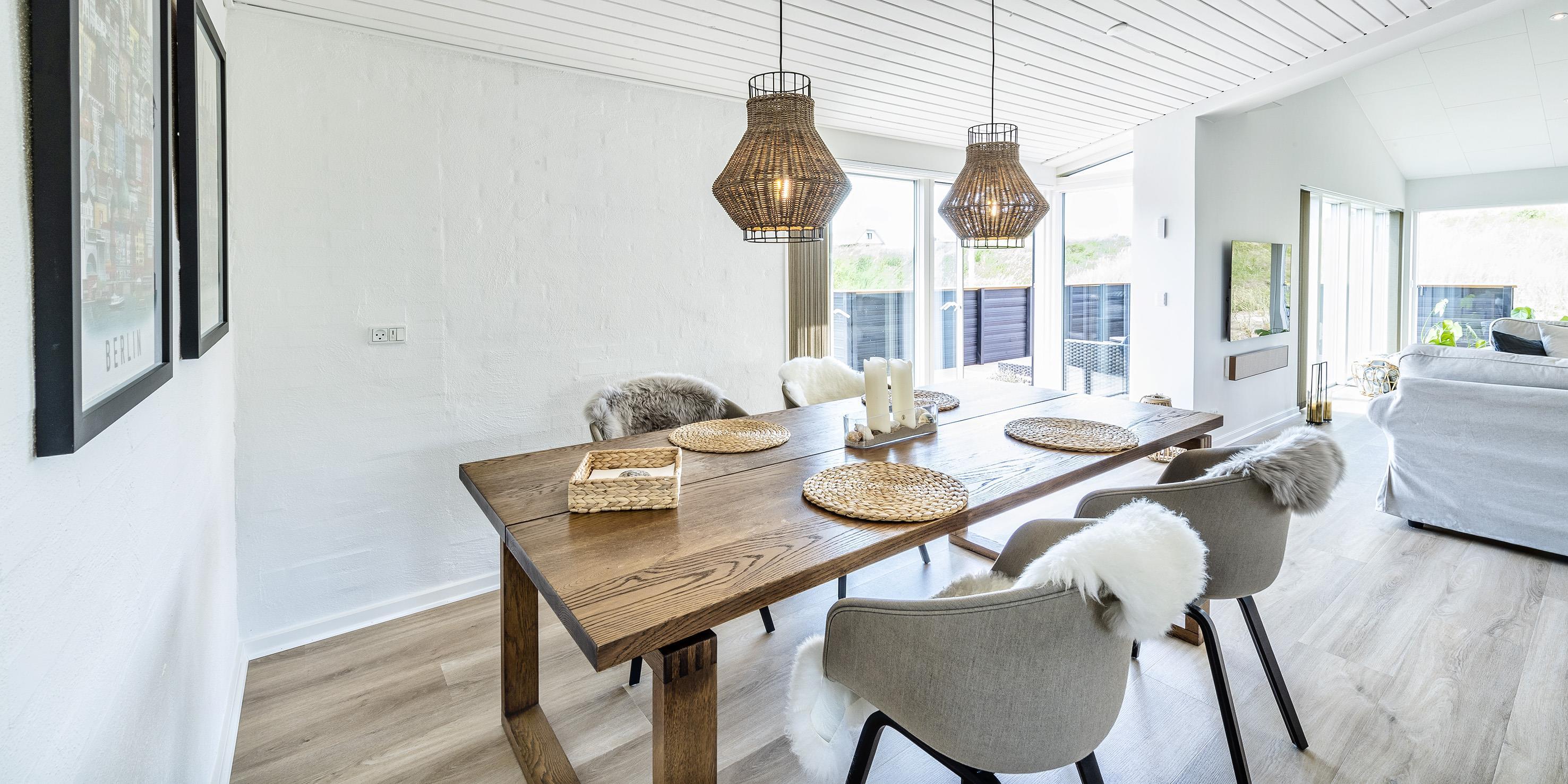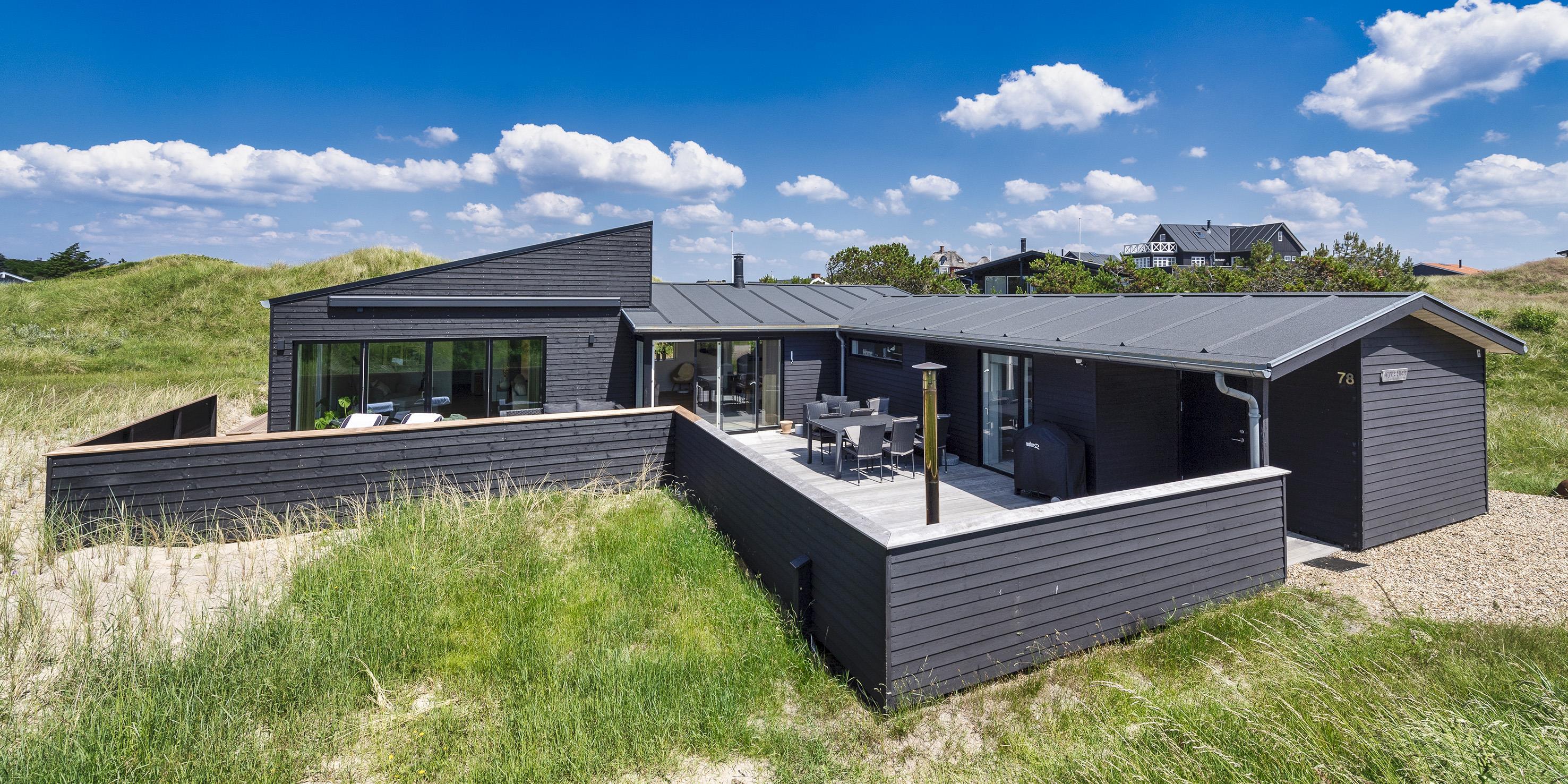Spannendes, geschmackvolles und sehr modern eingerichtetes Ferienhaus mit dem Namen Myreturen. Es ist für vier anspruchsvolle Personen ausgestattet. Das Ferienhaus verfügt über einem stilvollen Design, das sich fast in die Umgebung einfügt. Das Haus bietet eine schöne Atmosphäre in einem modernen Stil mit großen Panoramafenstern, von denen aus man einen guten Blick auf den Dünenkette hat. Durchgehend offen mit kleinen und großen gemütlichen Ecken. Die Außenanlagen bieten Natur pur, die Sie von der großen geschlossenen Holzterrasse aus genießen können. Hier befindet sich eine neue Aussendusche und eine Saunahütte. Die Aussendusche kann das ganze Jahr über benutzt werden. Der Eingang zum Haus erfolgt von der Rückseite des Hauses aus. Sie kommen dann durch die Küchenzeile in das Ferienhaus. Der Küchenbereich ist zum Wohn- und Essbereich hin offengehalten. Danach gelangen sie dann in das Wohnzimmer des Hauses. Vom Wohnzimmer aus haben sie einen Zugang zum Hems. Die gemütliche Sitzgruppe lädt zum Kuscheln und Relaxen ein. Das deutsche Fernsehprogrammkann über die App Yousee gestramt werden. Desweiteren gibt es Appel TV und Bluetooths-Lautsprecher. Der Kamin im Haus spendet eine wohlige Wärme und einen großartige Athmosphäre und die Gemütlichkeit. Durch die grossen Panoramafenster gelangt sehr viel Licht in das Ferienhaus. Die modern eingerichtete Küche bietet Ihnen alles was Sie im Urlaub brauchen. Sie verfügt über einen Herd mit Ceranfeld, einem Backofen, einer Geschirrspülmaschine, einer Expressomaschine und einer Kühl- und Gefrierkombination. Vom Küchenbereich haben Sie auch einen Zugang zur östlich gelegenen Terrasse. Es stehen den Gästen zwei Schlafzimmer zur Verfüngung: DB + DB. Beide sind mit je einem Doppelbett ausgestattet und haben auch einen Zugang zu einem Terrassenbereich. Das Wellness-Badezimmer ist neu und modern ausgestattet. Es hat ein Handwaschbecken, ein hängendes WC und eine Dusche. Hier vom Badezimmer haben Sie den Aussgang zur Saunahütte und zur Aussendusche. Eine Waschmaschine und ein Trockner stehen den Gästen ebenfall zur Verfügung. Ein weiteres Badezimmer mit einem WC, einem Handwaschbecken und einer Dusche steht ebenfalls zur Verfügung. Es befindet sich eine Fussbodenheizung im Haus. Das Ferienhaus verfügt über einen Internetanschluss (W-Lan - 30/30). Das Haus wird mit einer Fußbodenheizung beheizt. Es befindet sich eine Warmepumpe im Ferienhaus. Mit dieser Warmepumpe haben sie die Möglichkeit die Stromkosten zu senken, denn die Warmepumpe ist energiesparend. Es gibt Schiebetüren vom Wohnzimmer auf eine große geschlossene Terrasse, hier auf der Terrasse befindet sich einem Wildnisbad, der in den Boden eingelassen ist. Haustiere und Rauchen sind nicht gestattet. Wasserkosten fallen nicht ekstra an. Zum Haus gehören ebenfalls ein Weinkühlschrank und ein Webergasgrill. Bitte nach jedem Gebrauch den Gasgrill wieder reinigen, damit der Nachmieter auch Freude dran hat. Der Mieter muss selbst für Gas sorgen. Das Haus darf mit maximal 4 Personen bewohnt werden (inkl. Kleinkinder).