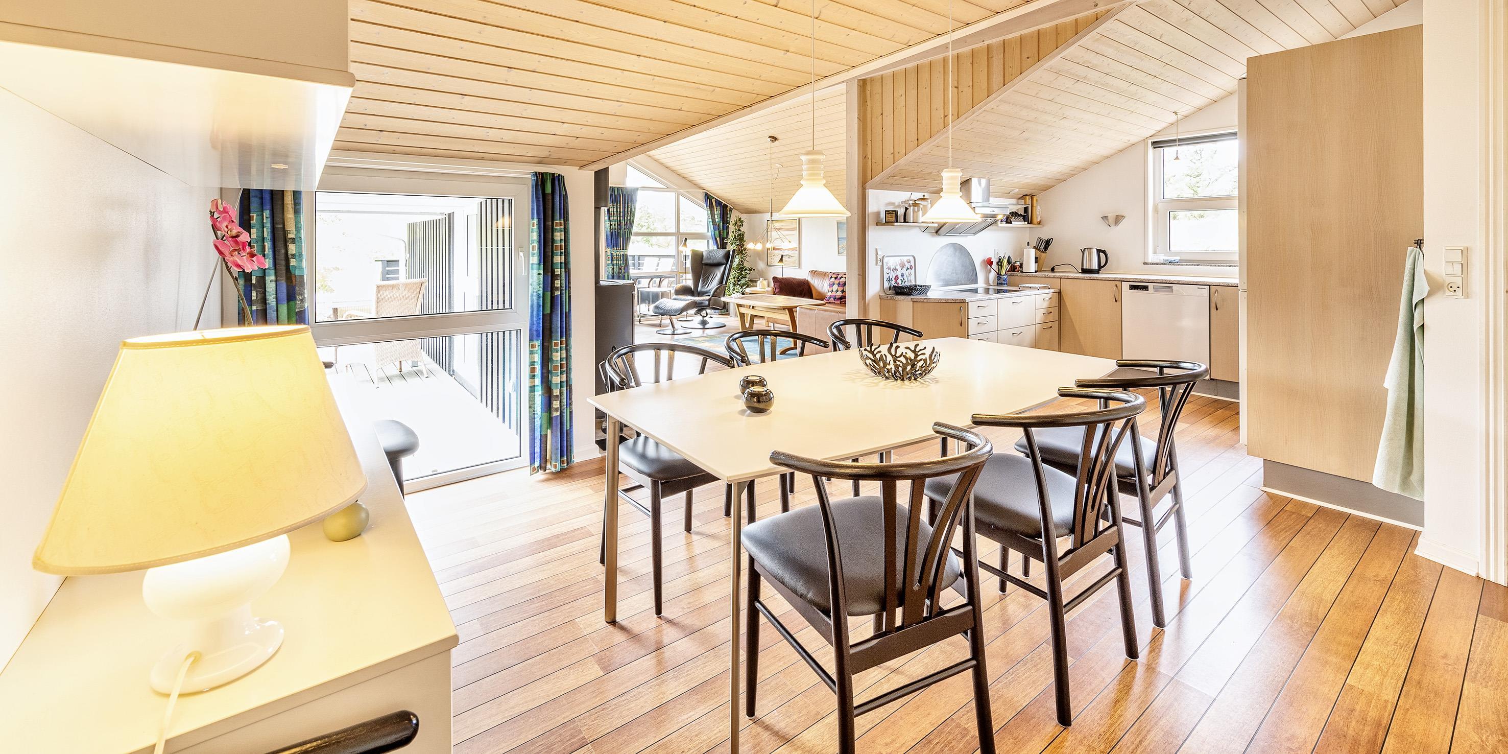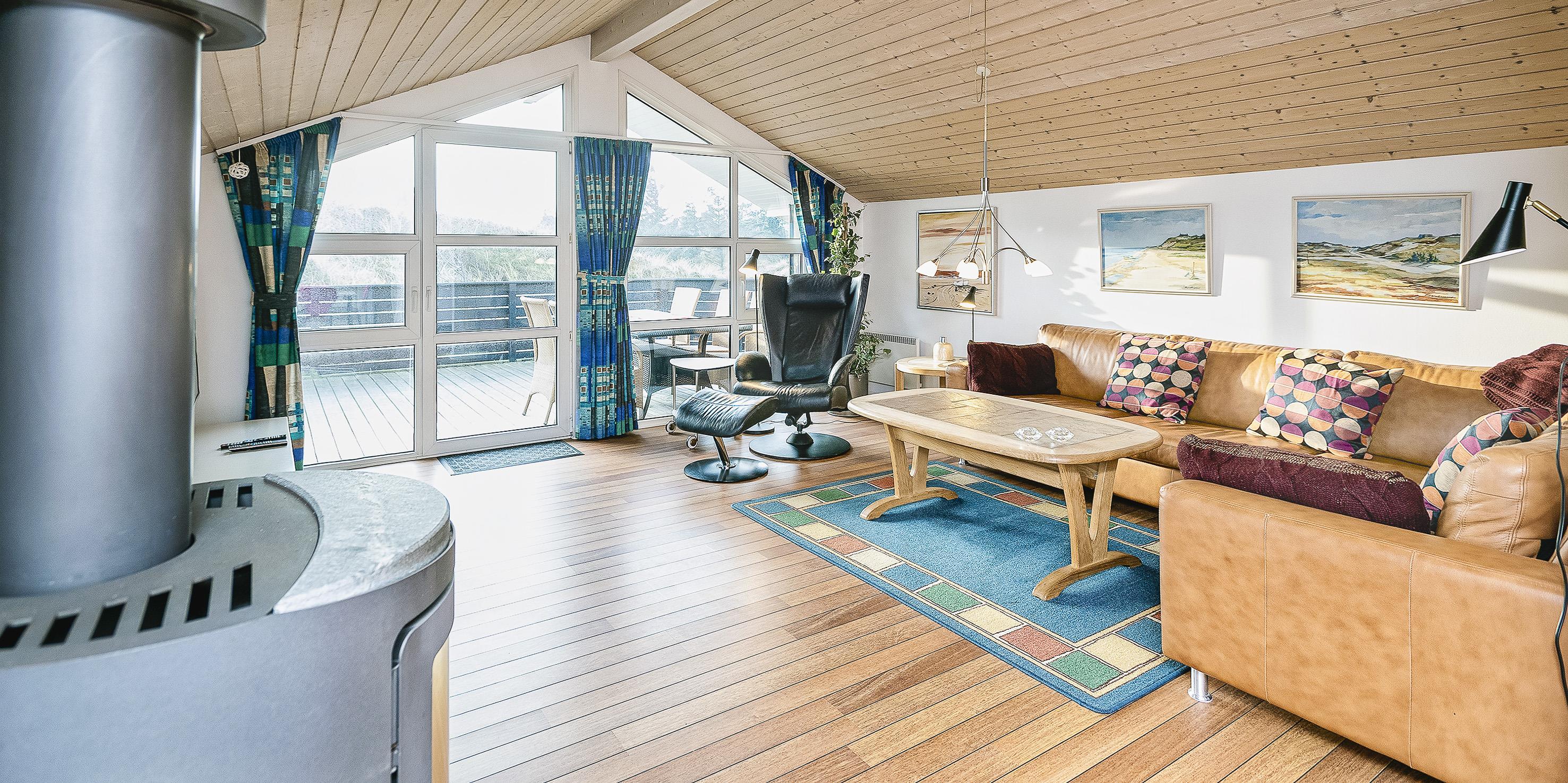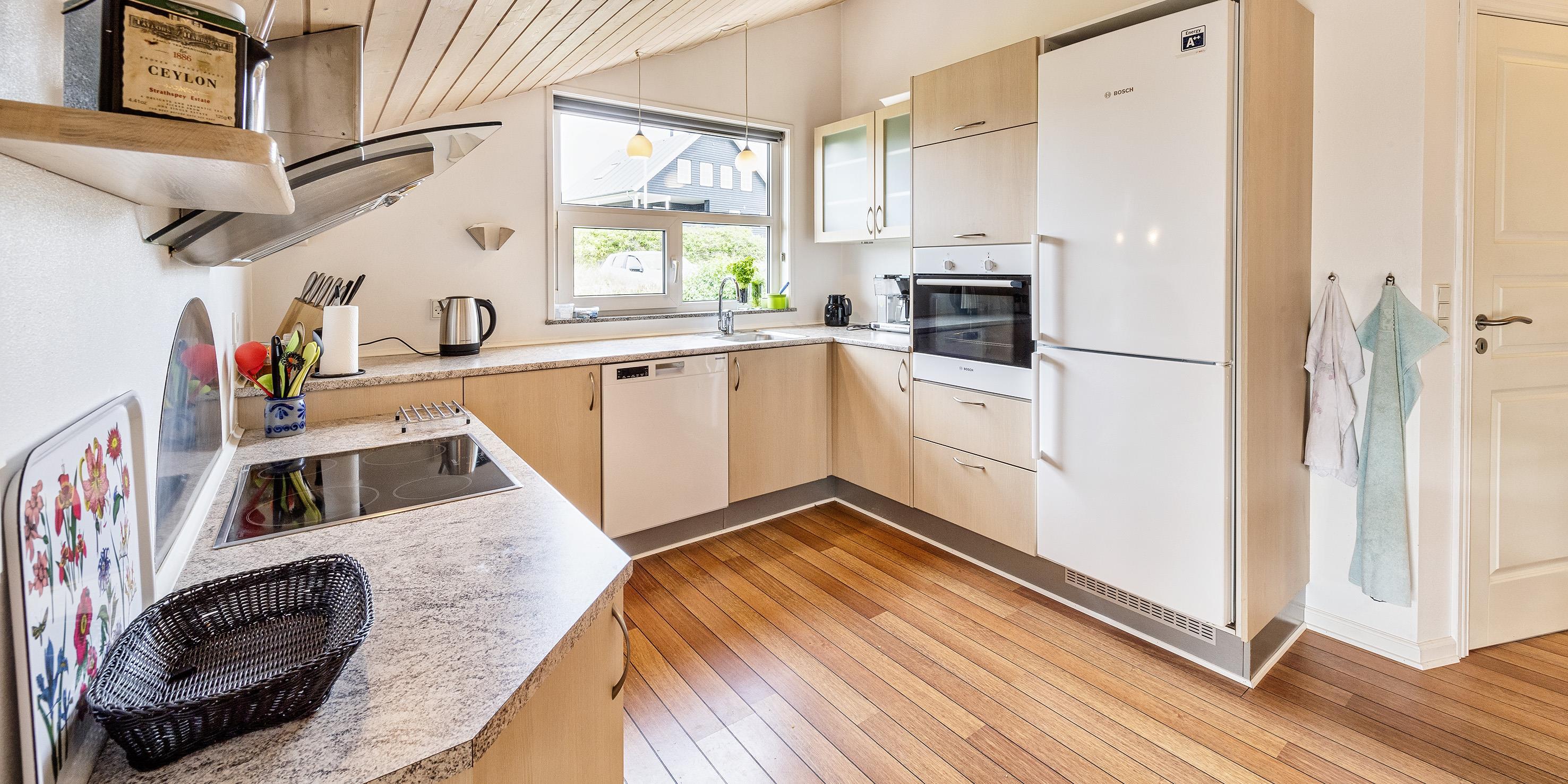Hübsches und geschmackvoll eingerichtetes Ferienhaus auf einem 1000m2 großem Naturgrundstück gelegen, umgeben von Dünen und etwa 200 Meter vom Strand entfernt. Das Ferienhaus ist für 6 Personen ausgestattet und hell und freundlich in der Ausstattung. Der gemütliche Wohnbereich hat eine kuschelige Leder-Rundsitzecke und verfügt über einen Kamin. Wärmepumpe. Das deutsche Fernsehprogramm empfangen Sie über eine Parabolantenne. Die Wohnküche ist mit dem Essplatz verbunden und verfügt über einen Herd mit Cerankochfeld, einem Backofen in Arbeitshöhe, einer Geschirrspülmaschine und einer Kühl- und Gefrierkombination. Zwei Badezimmer stehen im Ferienhaus zur Verfügung. Das große Bad ist mit einem WC, einem Handwaschbecken, einer Dusche, einer Sauna und einem Whirlpool ausgestattet. Das kleinere Badezimmer hat ein WC, ein Handwaschbecken und eine Dusche. Eine Waschmaschine und ein Trockner stehen für die Gäste zur Benutzung zur Verfügung. Im Eingangsbereich haben Sie Platz für Schuhe und Jacken. Es gibt insgesamt vier Schlafzimmer im Ferienhaus: DB + DB + 2B + B. Am Ferienhaus steht eine schöne Terrasse für Ihr Sonnenbad oder der gemütlichen Kaffeetafel bereit. Auch Ihren Grillabend können Sie hier gut gestalten. Das Ferienhaus verfügt über einen Internetanschluss (W-Lan). Es sind keine Haustiere erlaubt. Für die Kleinen Gäste steht eine Schaukel und eine Sandkiste auf dem Grundstück bereit. Das Rauchen ist nicht gestattet. Das Ferienhaus ist in 1986 erbaut und in 2006 renoviert worden.