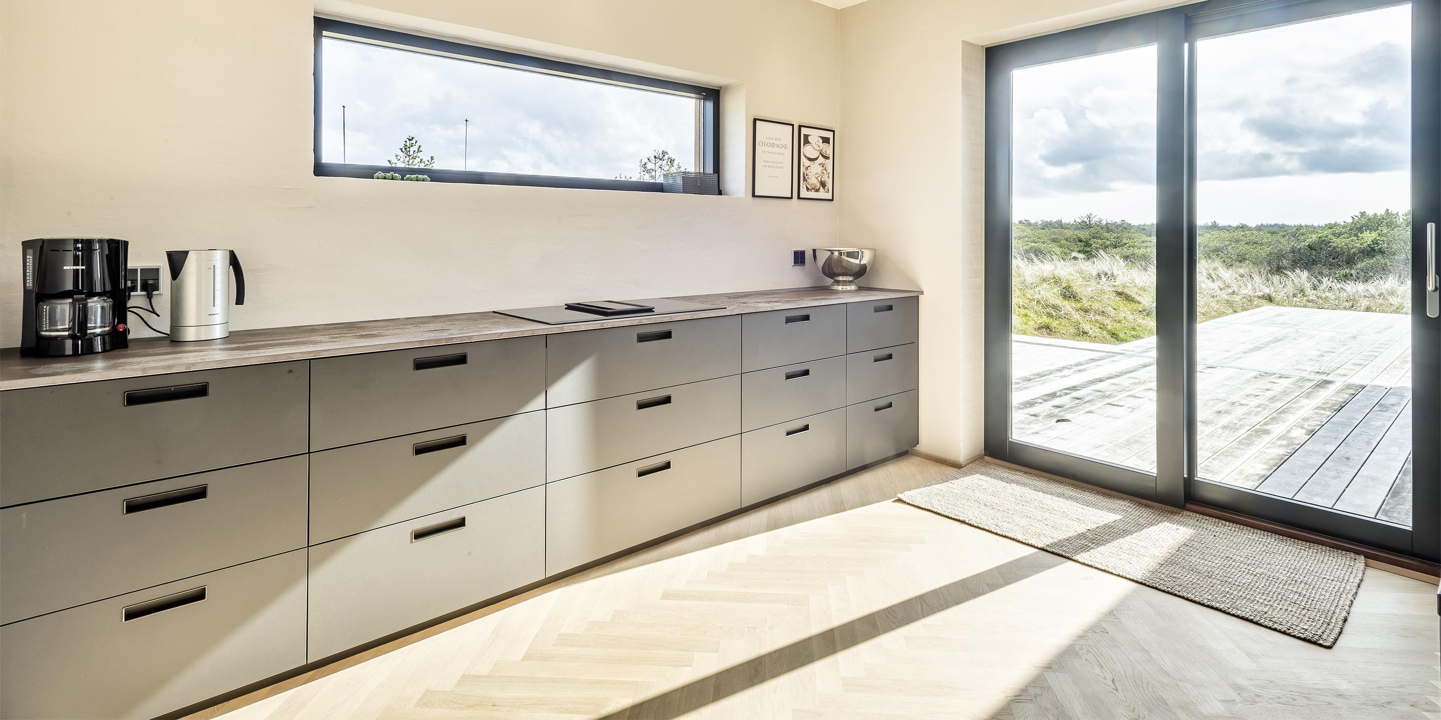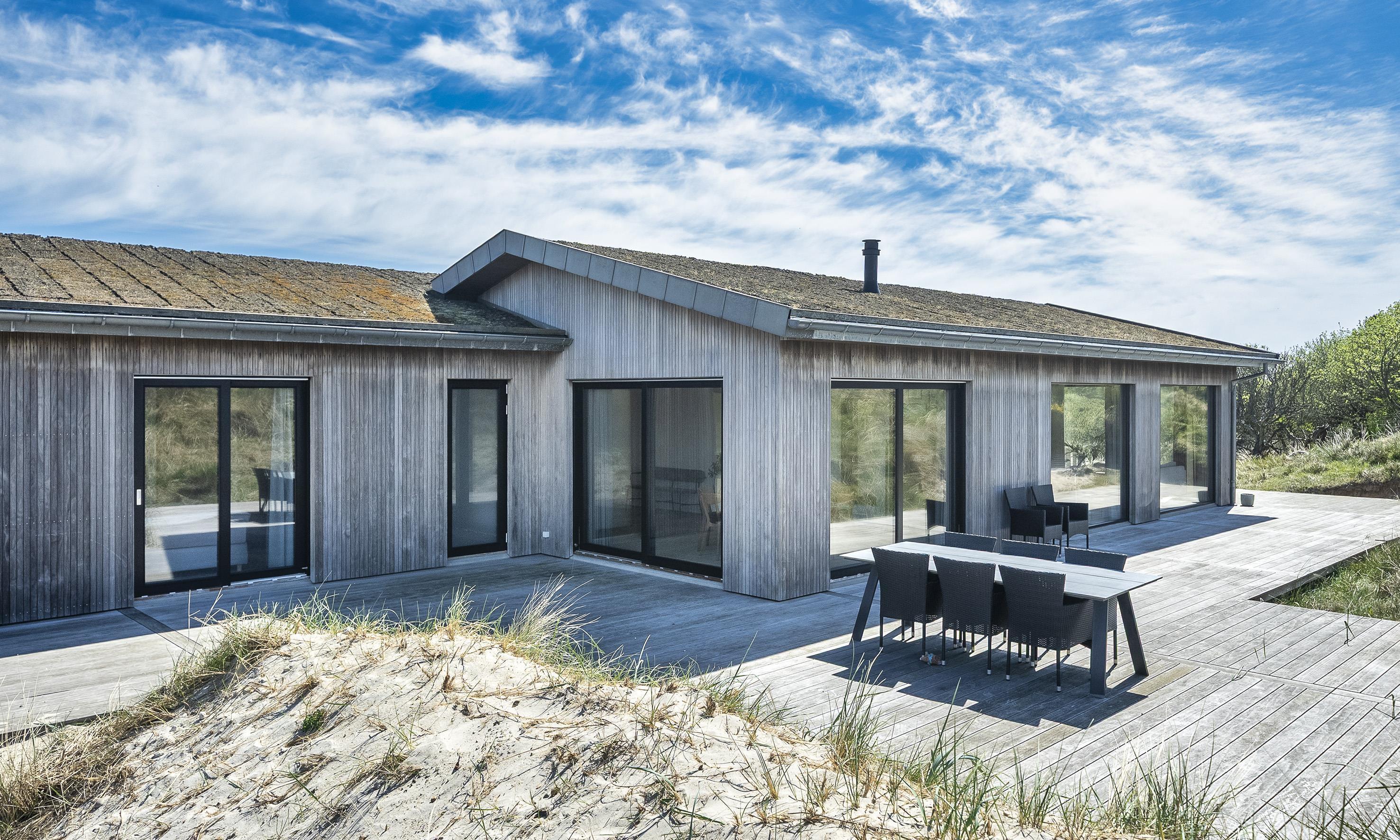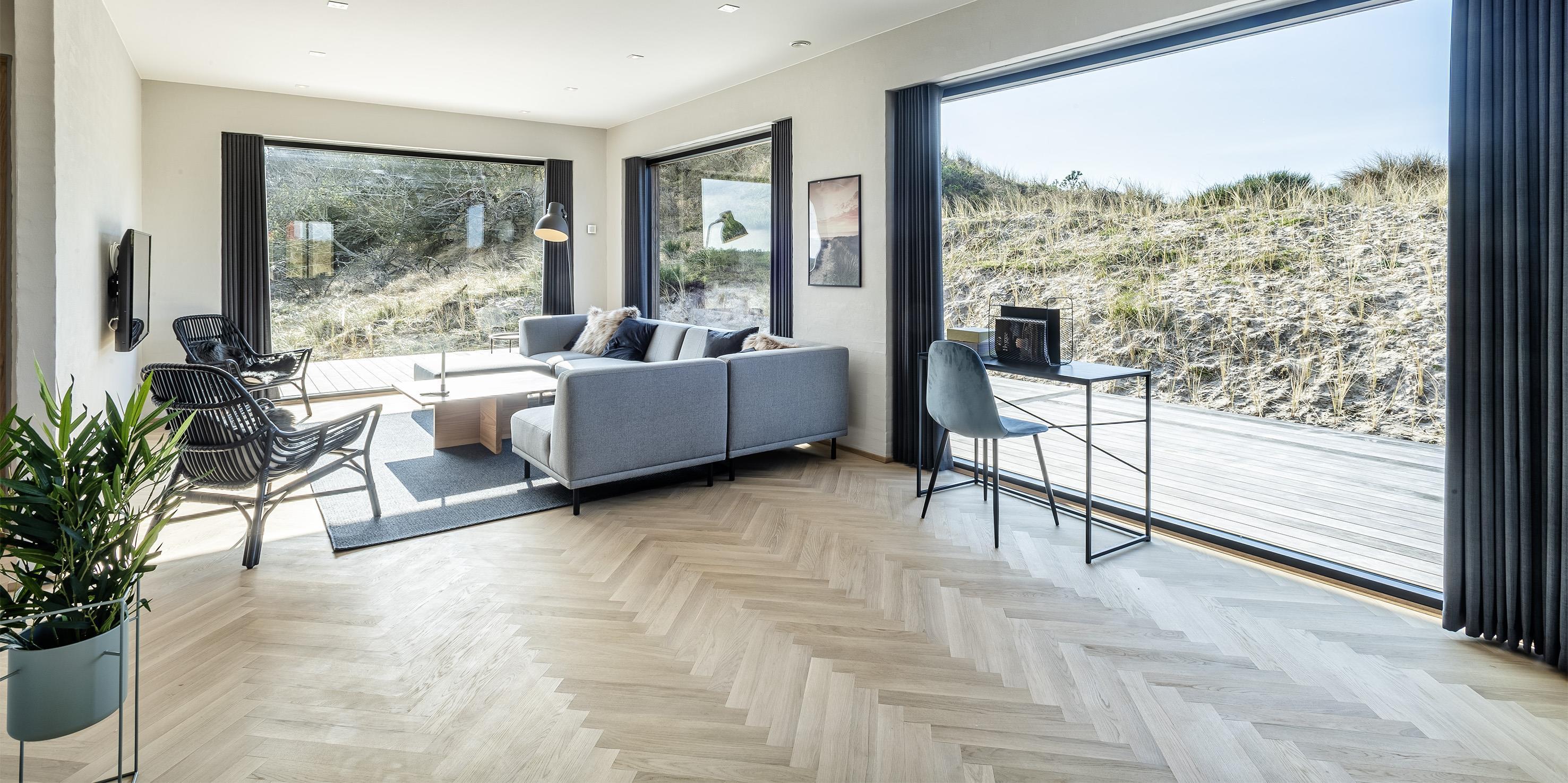 Der Eingangsbereich ist überdacht und bietet genügend Platz, sowie aussen und auch auch innen der Flurbereich. Alle Zimmer sind mit einer Schiebetür in modernen Design ausgestattet. Vom Flurbereich aus zur linken Seite befindet sich der Hauswirtschaftsraum mit der Waschmaschine, dem Trockner und grossem Garderobenplatz. Ausserdem ist hier auch genügend Platz als zusätzliche Aufbewahrungsmöglichkeit. Desweiteren auf der linken Seite befindet sich dann das Erste Schlafzimmer, ausgestattet mit Kleiderschrank und einem Doppelbett. Gegenüber befindet sich dann ein weiteres Schlafzimmer mit der gleichen Ausstattung. Neben diesem Schlafzimmer befindet sich dann ein schönes modernes Badezimmer, ausgestattet mit WC, Handwaschbecken und einer Dusche. Alles in modernem Design, Mamorfliesen und grosszügides Handwaschbecken. Nun gelangen Sie weiter in den offenen Küchenbereich mit Essplatz. Auch hier sind wieder zwei Ausgänge zur Terrasse. Die Küche ist sehr modern eingerichtet und verfügt über einen Herd mit der Dunstabzugshaube in der Mitte der Kochplatte (Induktion), einem Backofen in arbeitshöhe, einer Geschirrspülmaschine und einer Kühl- und Gefirierkombination. Gegenüber der Küche ist der Essplatz, auch hier sind wieder grosse Fensterfronten und ein wundervoller Panoramablick zu den Dünen. Abgrenzend zum Wohnbereich befindet sich dann ein Gas-Kamin, dieser ist eingemauert und wird mit Ethanol befeuert. Gas kann nicht austreten, da dieser Kamin mit Glasscheiben versehen ist. Dieser spendet eine wohlige Wärme und sehr viel Gemütlichkeit. Es liegen Holzscheite im Innenbereich, die sich verfärben und dadurch wird die Wärme abgeben. Für das Gas haben die Gäste selber die Kosten zu tragen. Neben dem Gas-Kamin zum Wohnbereich befindet sich eine kleine Bank mit Kissen und Lammfell, eine Kuschelecke, wo Sie gemütlich Ihr Buch lesen können oder dem Geschehen im Wohnbereich folgen können. Das deutsche Fernsehprogramm empfangen Sie über Stofa und daher können Sie nur 5-8 deutsche Kanäle empfangen. Ein wundervoller Blick durch die grossen Panoramafenster spendet Erholung und Entspannung pur mit weitere Ausgängen zur schöne Holzterrasse. Vom Wohnbereich gehen dann weitere zwei Schlafzimmer, mit je einem Doppelbett ab. Auch ein zweites grozzügiges Badezimmer, modernem Design und ausgestattet mit WC, Handwaschbecken und Dusche. Ebenfalls im gleiche Stil wie das Badezimmer am Eingangsbereich. Zwei der Schafzimmer verfügen jeweils über ein Fernsehgerät mit Smart TV und sind in der Ausstattung und farbe identisch. Das Ferienhaus verfügt über einen Internetanschluss. Es sind keine Haustiere erlaubt. Das Rauchen im Ferienhaus ist auch nicht erlaubt. Eine Vorichtung für das Aufladen von Elektroautos ist vorhanden. 4 schlafzimmer: DB + DB + DB + DB. Das Ferienhaus ist Baujahr 2020.