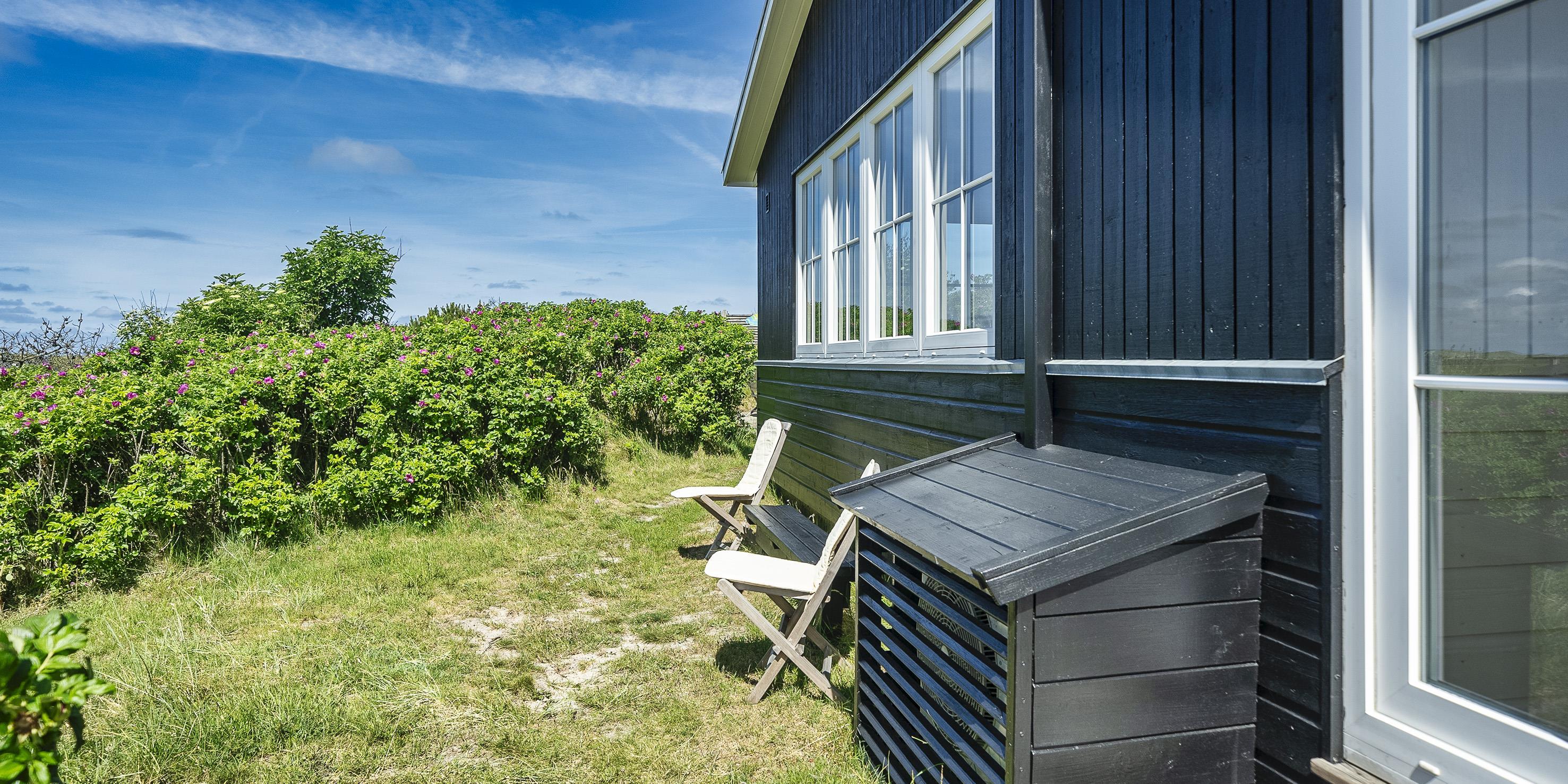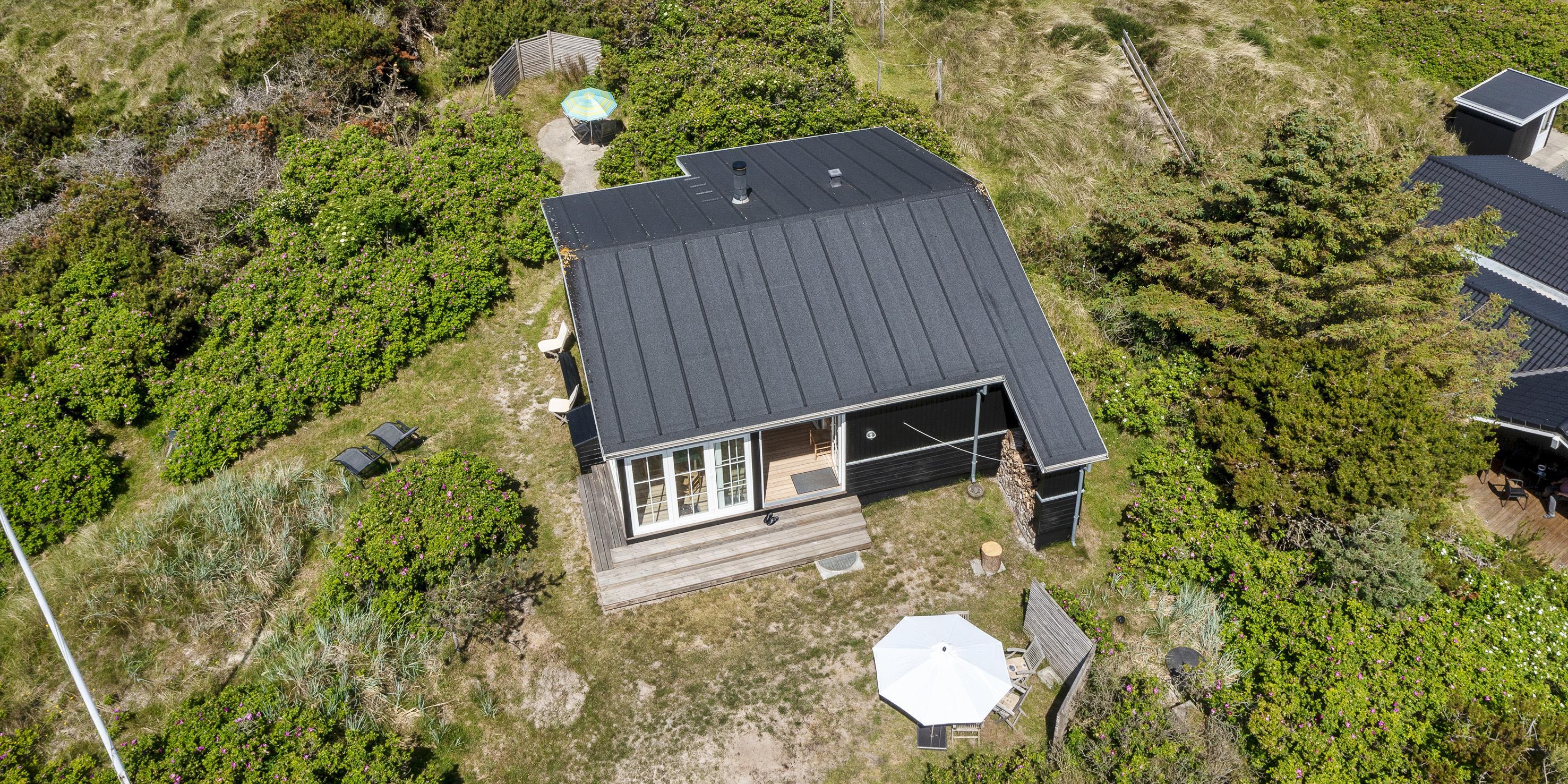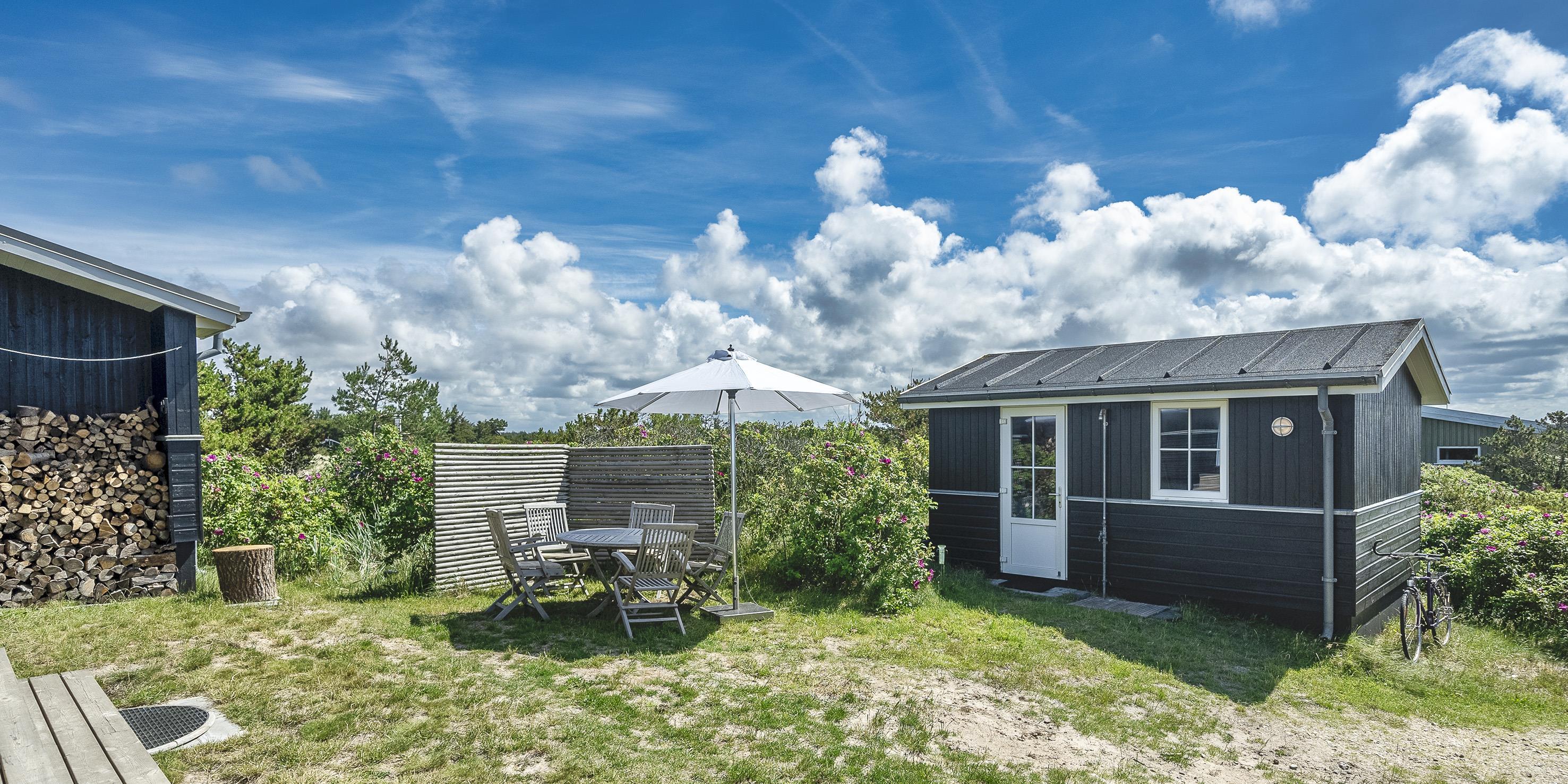 Auf einer Düne liegt dieses kleine dänisch eingerichtete Ferienhaus für 6 Personen und nur 150 Meter vom Strand entfernt. Das Ferienhaus liegt völlig ungestört und hier haben Sie vom Wohnzimmer aus einen wundervollen Meeresblick. Der Wintergarten, der noch mit schönen Holzdielen belegt ist, hat grosse Schiebetüren, wobei eine schöne warme Brise in lauer Sommernacht durch das Haus fluten kann. Die Wohnkücke ist mit dem grosszügige Wohn- und Esszimmer integriert. Vom Wohnbereich aus, kann man das Feuer im Kamin lodern sehen. Dies bringt eine wohlige Wärme ins Ferienhaus. Es befindet sich eine Warmepumpe im Ferienhaus. Mit dieser Warmepumpe haben sie die Möglichkeit die Stromkosten zu senken, denn die Warmepumpe ist energiesparend. Deutsche Fernsehprogramme werden über eine Parabol-Antenne empfangen sowie auch Chrome cash. Da ist ein Grammofon. Das Fernsehgerät hat einen HDMI-Empfang für einen Computer und Drucker. Die offene Wohnküche verfügt über einen Herd mit Cerankochfeld, einem Backofen, einen Geschirrspüler und einem Kühlschrank. Ein kleiner zusätzlicher Gefrierschrank befindet sich im Schuppen. 3 Schlafzimmer: DB + DB + 2B. Hinter dem Essbereich gelangen Sie durch eine Tür zum Hauswirtschaftsraum und dem Ausgang zur Terrasse. Die Waschmaschine befindet sich hier im Hauswirtschaftsraum. Von hier gelangen Sie dann auch in das Badezimmer, mit Dusche, WC, und einem Handwaschbecken. Hinter dem Haus befindet sich dann die Terrasse und eine gemütliche Sitzgruppe zwischen den Hagebutten-Sträuchern. Über einen weiteren Auskuck können Sie das Meer erblicken und auch über einen Teil des Ferienhausgebietes. Desweiteren befindet sich ein Gästehaus auf dem Grundstück das mit einer Sauna mit ca. 17 qm, dem Trockner und als Abstellraum gedacht ist. Zusätzliche befindet sich dort eine aussen gelegene Dusche (nur mit kaltes Wasser). Rauchen ist nicht erlaubt. Internetanschluss (W-Lan) auch verfügbar. Es sind max. 2 Haustiere erlaubt.Es stehen den Gästen 2 Fahrräder am Ferienhaus zur Verfügung, wobei wir keine Haftung übernehmen bezüglich der Benutzung und Brauchbarkeit. Ferienhaus ist 2007 erbaut worden.