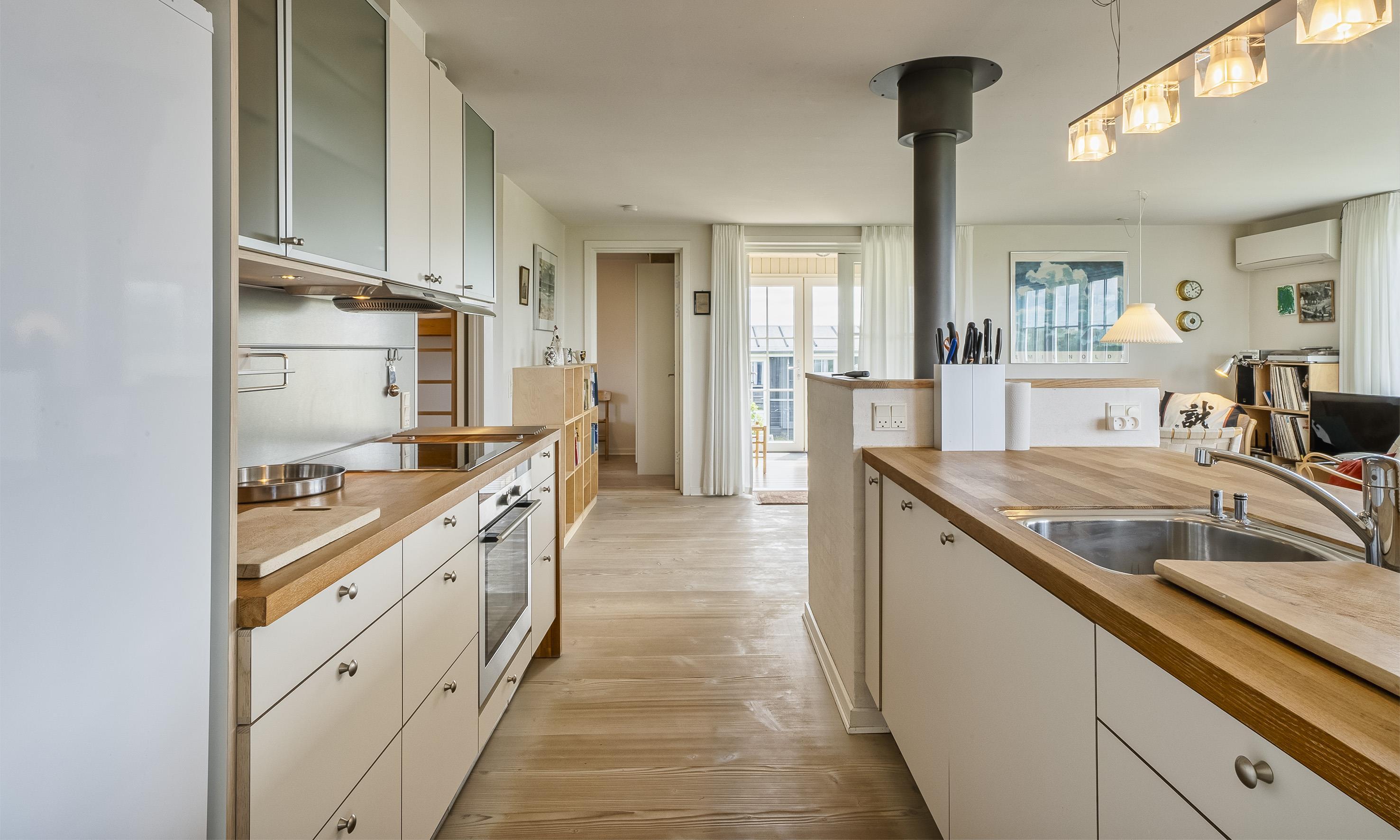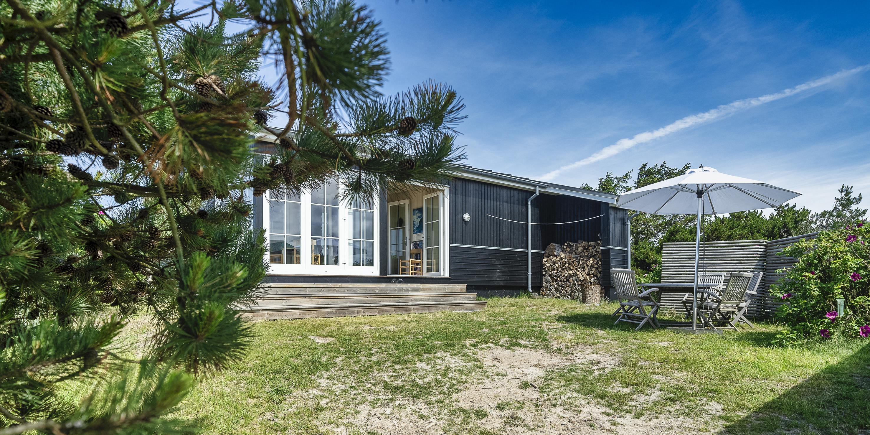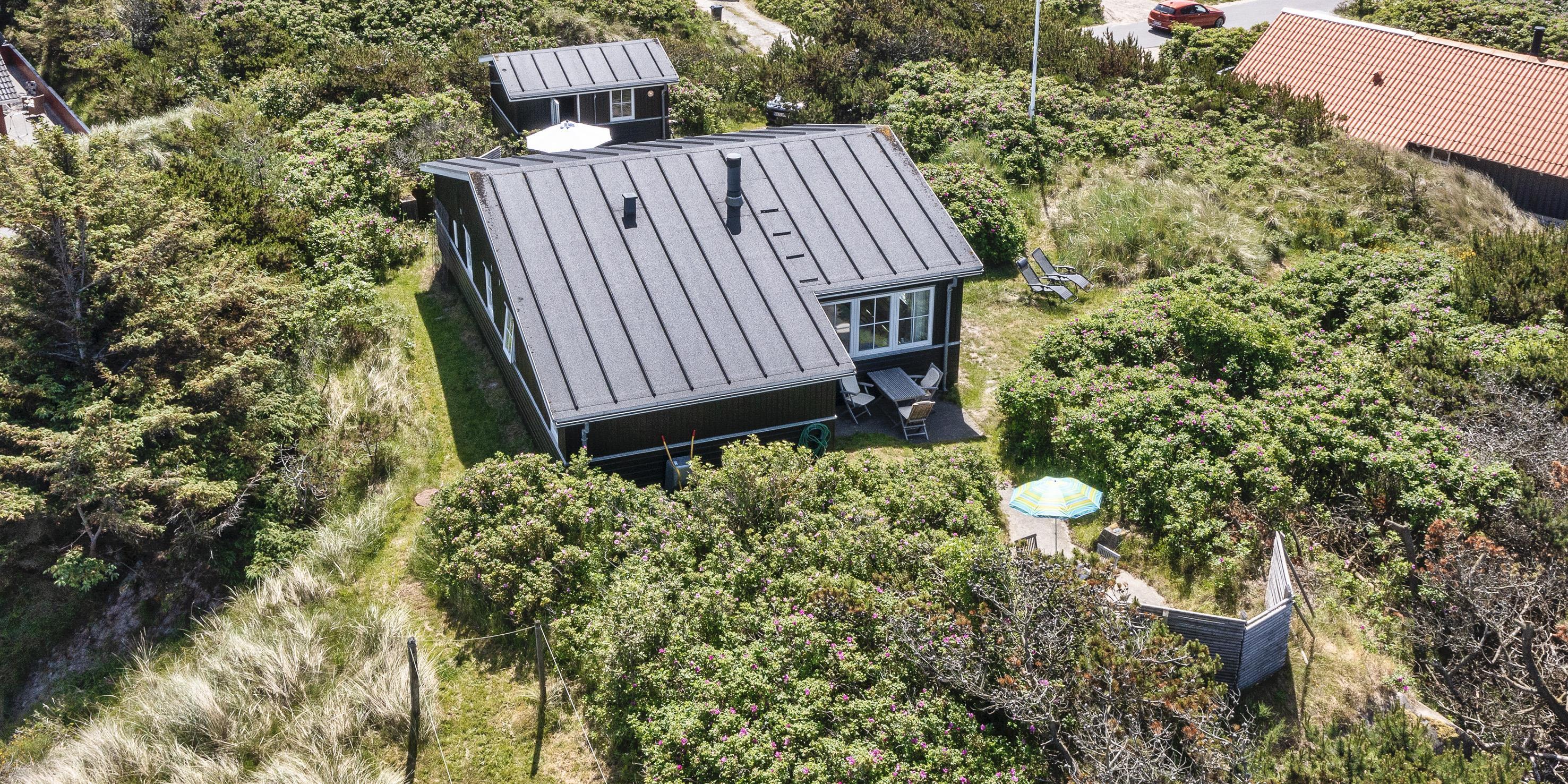 Auf einer Düne liegt dieses kleine dänisch eingerichtete Ferienhaus für 6 Personen und nur 150 Meter vom Strand entfernt. Das Ferienhaus liegt völlig ungestört und hier haben Sie vom Wohnzimmer aus einen wundervollen Meeresblick. Der Wintergarten, der noch mit schönen Holzdielen belegt ist, hat grosse Schiebetüren, wobei eine schöne warme Brise in lauer Sommernacht durch das Haus fluten kann. Die Wohnkücke ist mit dem grosszügige Wohn- und Esszimmer integriert. Vom Wohnbereich aus, kann man das Feuer im Kamin lodern sehen. Dies bringt eine wohlige Wärme ins Ferienhaus. Es befindet sich eine Warmepumpe im Ferienhaus. Mit dieser Warmepumpe haben sie die Möglichkeit die Stromkosten zu senken, denn die Warmepumpe ist energiesparend. Deutsche Fernsehprogramme werden über eine Parabol-Antenne empfangen sowie auch Chrome cash. Da ist ein Grammofon. Das Fernsehgerät hat einen HDMI-Empfang für einen Computer und Drucker. Die offene Wohnküche verfügt über einen Herd mit Cerankochfeld, einem Backofen, einen Geschirrspüler und einem Kühlschrank. Ein kleiner zusätzlicher Gefrierschrank befindet sich im Schuppen. 3 Schlafzimmer: DB + DB + 2B. Hinter dem Essbereich gelangen Sie durch eine Tür zum Hauswirtschaftsraum und dem Ausgang zur Terrasse. Die Waschmaschine befindet sich hier im Hauswirtschaftsraum. Von hier gelangen Sie dann auch in das Badezimmer, mit Dusche, WC, und einem Handwaschbecken. Hinter dem Haus befindet sich dann die Terrasse und eine gemütliche Sitzgruppe zwischen den Hagebutten-Sträuchern. Über einen weiteren Auskuck können Sie das Meer erblicken und auch über einen Teil des Ferienhausgebietes. Desweiteren befindet sich ein Gästehaus auf dem Grundstück das mit einer Sauna mit ca. 17 qm, dem Trockner und als Abstellraum gedacht ist. Zusätzliche befindet sich dort eine aussen gelegene Dusche (nur mit kaltes Wasser). Rauchen ist nicht erlaubt. Internetanschluss (W-Lan) auch verfügbar. Es sind max. 2 Haustiere erlaubt.Es stehen den Gästen 2 Fahrräder am Ferienhaus zur Verfügung, wobei wir keine Haftung übernehmen bezüglich der Benutzung und Brauchbarkeit. Ferienhaus ist 2007 erbaut worden.