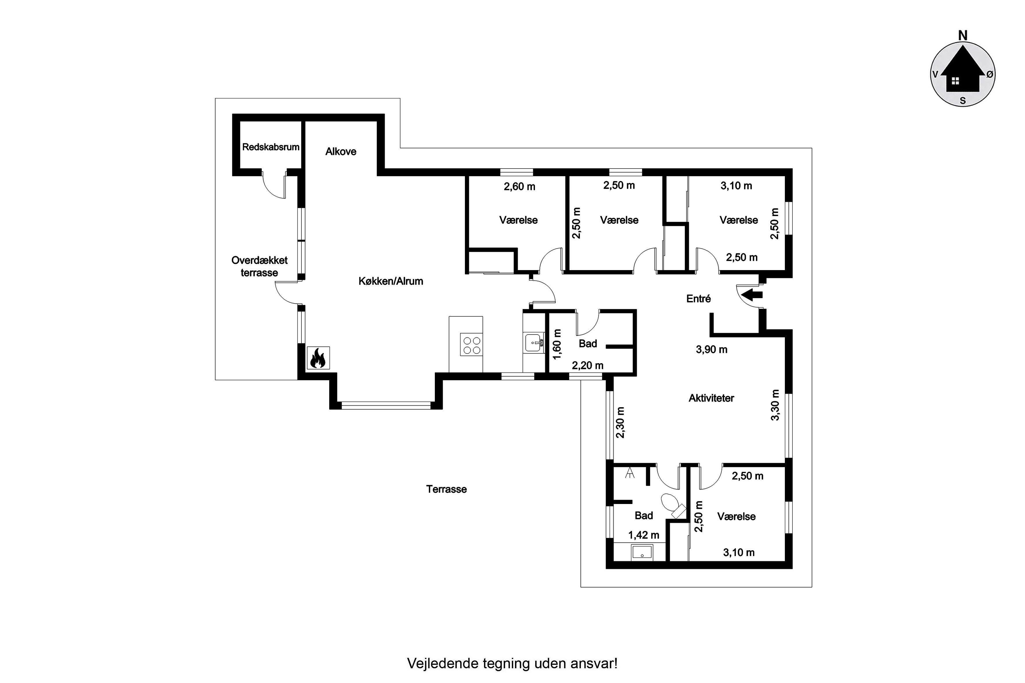 Bäckerei 300 m, Supermarkt „Storkøb“ 300 m vom Ferienhaus.