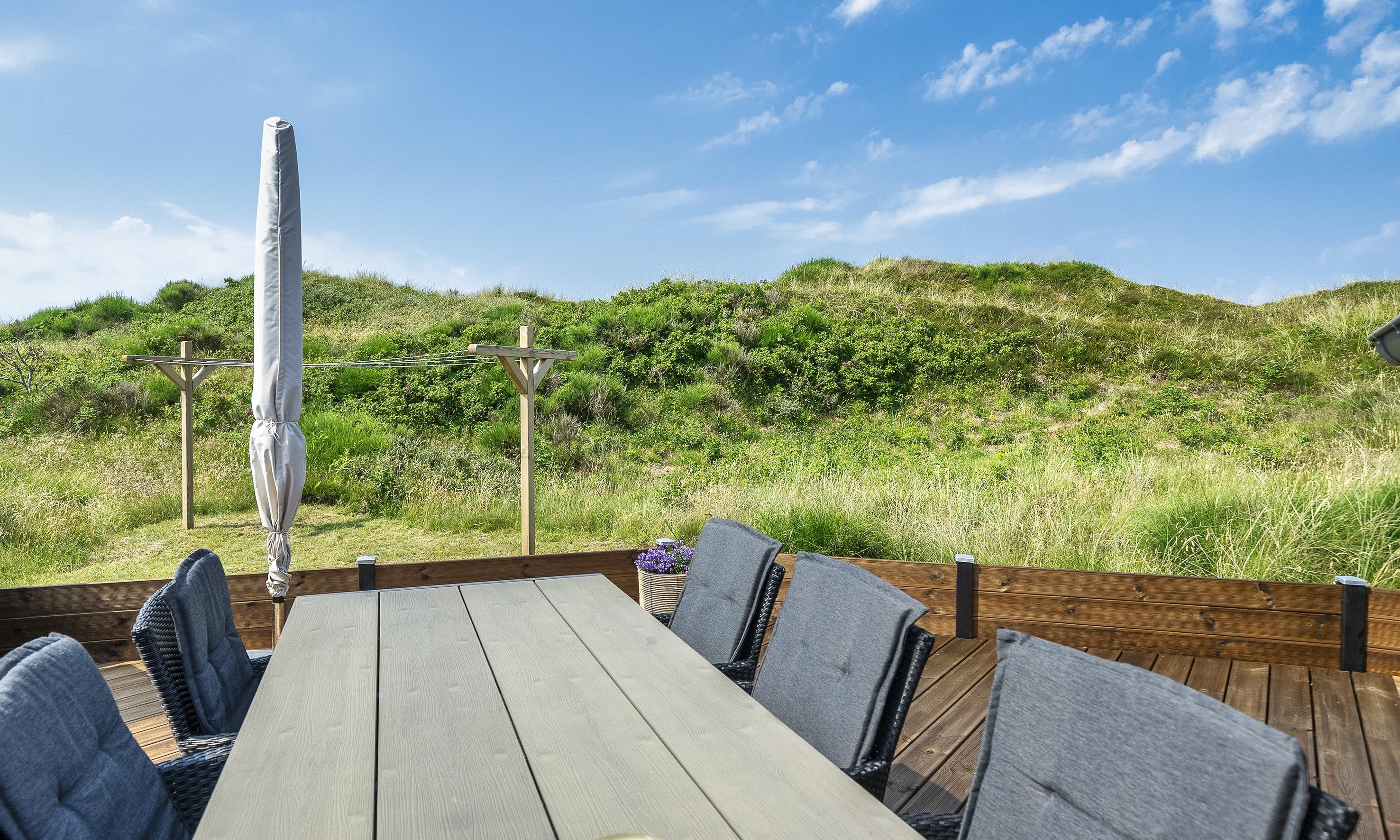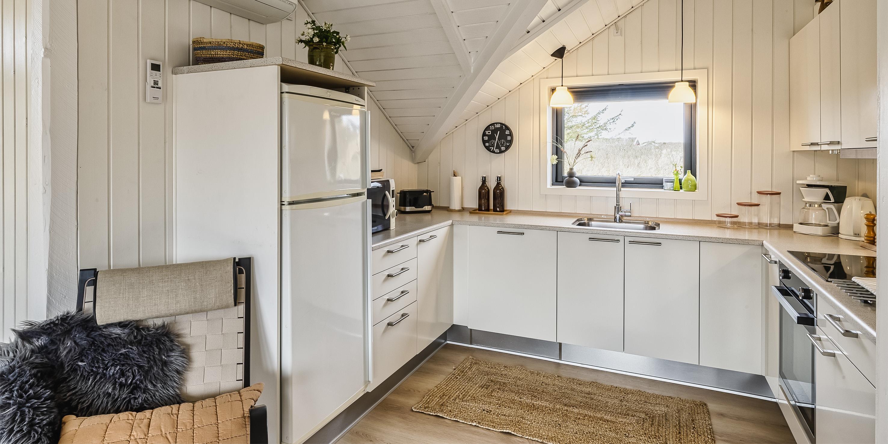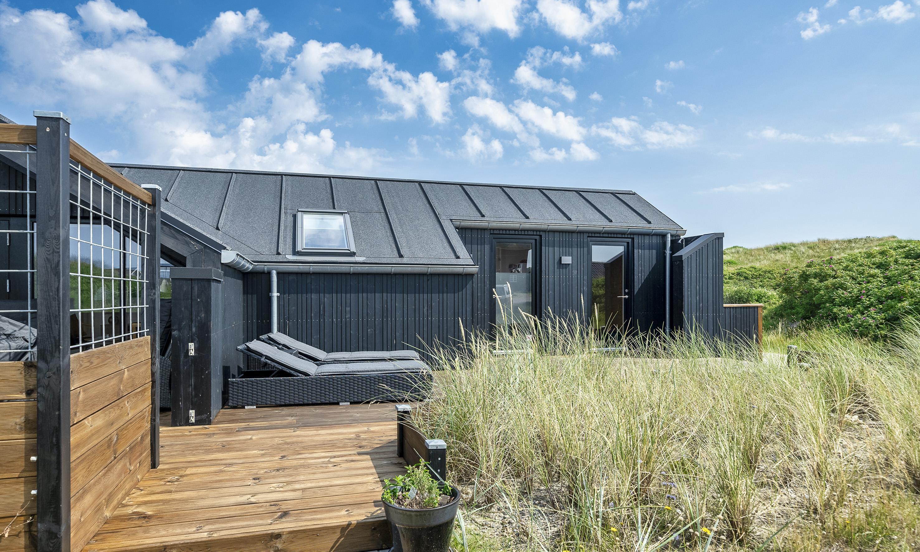 Dieses schnuckelige neurenovierte Ferienhaus für 6 Personen liegt am Ende einer Ringstrasse auf einem Naturgrundstück mitten an den Dünen. Der Strand ist nur 100 Meter vom Haus entfernt. Diese Ringstrasse liegt in einer ruhigen Umgebung. Ein kleiner separater Schuppen bietet genügend Abstellmöglichkeiten. Vom Eingangsbereich geht dann gleich das Badezimmer und 2 Schlafzimmer ab. Das Badezimmer verfügt über ein WC, eine Dusche und ein Handwaschbecken, und ist auch mit einer Fussbodenheizung ausgestattet. Drei Schlafzimmer: DB + 2B + 2B. Vom Wohn- und Essbereich geht dann in weiteres Schlafzimmer mit einem Doppelbett ab. Die Küche verfügt über einen Herd mit Induktions-Herd, einer Mikrowelle, Geschirrspülmaschine und einer Kühl und Gefrierkombination. Von der schnuckeligen Wohnzimmergarnitur und den beiden Stühlen, die mit einem warmen Lamm-Fell belegt sind, können Sie auf den hängenden Kamin sehen und die Flammen darin beobachten. Es befindet sich eine Warmepumpe im Ferienhaus. Mit dieser Warmepumpe haben sie die Möglichkeit die Stromkosten zu senken, denn die Warmepumpe ist energiesparend. Die grosse Fensterfront bringt viel Licht in das Ferienhaus. Deutsches Fernseprogramm ist über eine Parabol-Antenne zu empfangen. Für das Fernsehprogramm steht den Gästen Smart TV und Google Chrome Cast zur Verfügung. Ausserdem gibt es Bluethoos Lautsprecher im Haus. In der Essecke ist auch genügend Platz, wobei der Kamin auch hier eine gemütliche Atmosphäre ausstrahlt. Desweiteren haben Sie Internetanschluss (W-Lan 200/200 Mbit). Es sind keine Haustiere mehr erlaubt. Rauchen ist nicht erlaubt. Das Ferienhaus ist 1975 und renoviert in 2020. Gratis Eintritt für das Badeland in Oksbøl in 2025. Eine Aussendusche ist angebracht worden, da können Sie dann im Sommer Ihre Abkühlung erhalten und zusätzlich gibt es auch noch eine Sauna. Eine kleine Sandkiste steht für die kleinen Gäste am Haus bereit. Gasgrill mit Gasflasche.