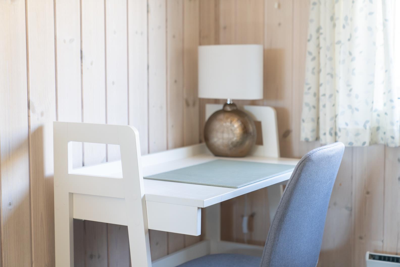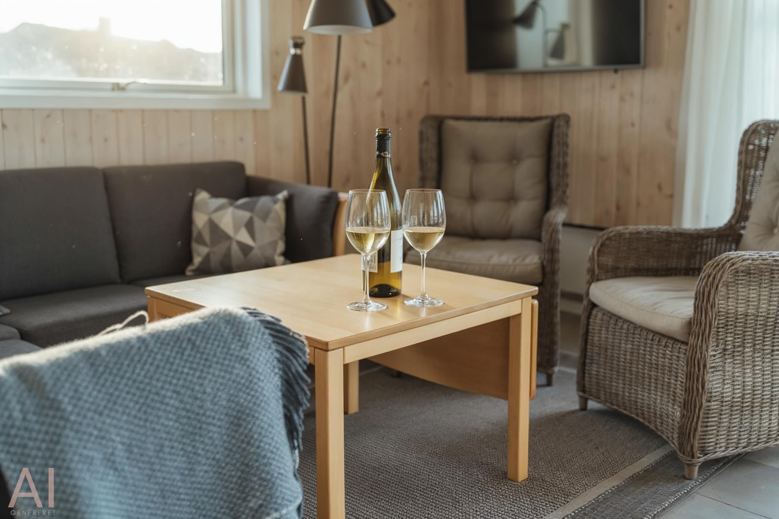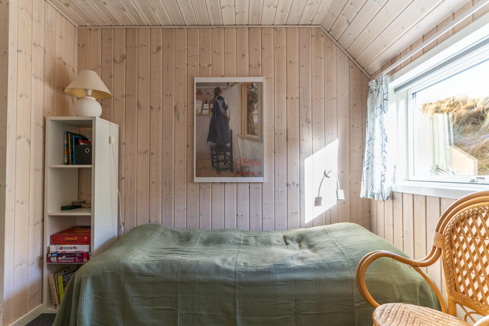 Der Wohnbereich geht mit eine Stufe nach unten, wo sich auch dann der Kamin befindet. Hier steht Ihnen tolles Mobilar, mit gemütlichen Sesseln am Kamin und einem Ecksofa zur Gemütlichkeit zur Verfügung. Es gibt dutsche Fernsehprogramme und dänische (DR Kanäle) im Hause. Ein kleine gemütliche Ecke mit einem kleinen Extra-Sofa für gemütliche Lesestunden und einem Ausgang zum Terrassenbereich befindet sich auch wieder im Hause. Vom Eingangsbereich gelangt man in den hellen Küchenbereich. In der Küche befindet sich ein Herd mit Cerankochfeld, ein Backofen, eine Geschirrspülmaschine und eine Kühl- und Gefrierkombination. Die Küche ist mit einer halbhohen Mauer zum Essbreich getrennt und trotzalledem offen gehalten. Es gibt insgesamt drei Schlafzimmer im Ferienhaus: DB + DB + 2B. Das 4. Schlafzimmer befindet sich im isoliertem und aufwärmbaren Anneks/Gätehaus. Dort befinden sich dann die weitrern 2 Schlafplätze. Das ist ein Etagenbett. Vom Eingangsbereich gelangen Sie in ein Gäste WC, ausgestattet mit WC und Handwaschbecken. Eine Waschmaschine und ein Trockner stehen den Gästen auch zur Verfügung. Ein grosses neues Badezimmer steht den Gästen ebenfalls zur Verfügung. Es verfügt über ein Handwaschbecken, ein WC, eine Dusche, einem Eck-Whirlpool und einer Sauna. Auf der großen und geschlossenen Terrasse können Sie bei einer Tasse Kaffee dem Meeresrauschen zuhören, dies ist Enstspannung pur und Balsam für die Seele. Das Ferienhaus verfügt über einen Internetanschluss (W-Lan). Das Baujahr des Hauses ist von 2019. Hinter dem Gästehaus wird ein kleiner Schuppen gebaut für die Gartenmöbel.