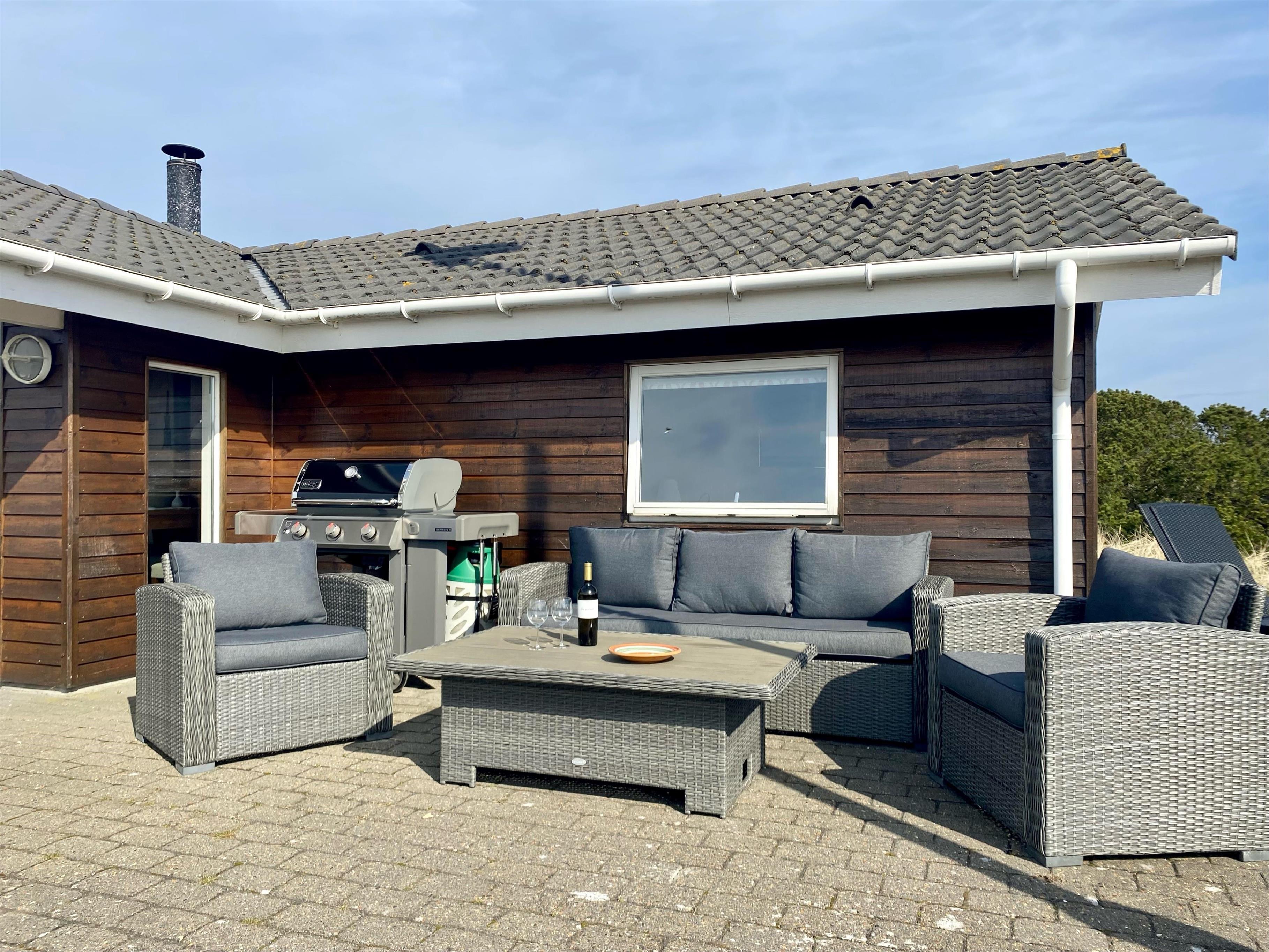 Dieses geschmackvoll eingerichtetes Ferienhaus mit Panoramaaussicht über die Dünenlandschaft liegt in einer bevorzugten Lage von Vejers Strand und ist für 6 Personen ausgestattet. Der Strand ist ca. 400 Meter vom Ferienhaus entfernt. Der Wohn- und Essbereich ist mit einer hübschen mediterranen Bodenfliese verlegt worden und strahlt Gemütlichkeit aus. Neben der Wohnzimmergarnitur ist ein Alkoven. Durch die eingebauten Oberlichter kommt viel Licht rein und Sie können hier einfach nur entspannen oder auch ein Buch lesen. Dazu den daneben stehenden Kamin angezündet strahlt es eine besondere Gemütlichkeit bzw. besonderen Flair aus.Es befindet sich eine Warmepumpe ab Januar 2023 im Ferienhaus. Mit dieser Warmepumpe haben sie die Möglichkeit die Stromkosten zu senken, denn die Warmepumpe ist energiesparend. Der Wohn- und Essreich ist licht durchflutet durch die großzügige Fensterfront im Wohnzimmerbereich Das deutsche Fernsehprogramm empfangen Sie über Stofa, daher sind es nur 5-8 Kanäle die Sie empfangen können. Die offen gehaltene Küche verfügt über einen Herd mit Cerankochfeld, einem Backofen, einer Geschirrspülmaschine und einer Kühl- und Gefrierkombination, alles in Edelstahloptik gehalten. Eine Mikrowelle steht auch zur Verfügung. Das Badezimmer verfügt über ein WC, ein Handwaschbecken, eine Dusche und einer Sauna. Es gibt drei Schlafzimmer im Ferienhaus: DB + DB + 2B. Zwei davon sind mit einem Doppelbett ausgestattet und das Dritte verfügt über zwei Einzelbetten. Eine Waschmaschine und ein Trockner stehen zur Benutzung bereit. Auf der großzügige Terrasse haben Sie genügend Platz für Ihre Grillabende oder für eine Kaffeetafel mit wundervollen Blick. Ein Teil davon ist sogar überdacht. Oder genießen Sie einfach mal Ihre Sonnenbad auf der Terrasse. Das Ferienhaus verfügt über einen Internetanschluss (W-Lan). Das Rauchen im Ferienhaus ist nicht erlaubt. Es sind keine Haustiere erlaubt, mit Ausnahme ein kleiner Hund mit max. Rückenhöhe von 30 cm. Ladestation für Elektroautos. Das Ferienhaus ist 1997 erbaut worden und laufend renoviert.