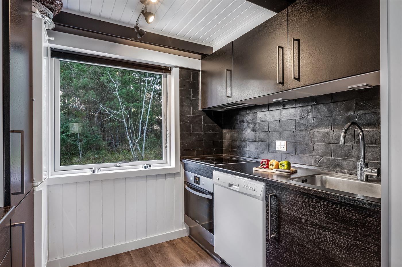 Die Küche ist mit Kühlschrank ausgestattet. Außerdem gibt es 4 Keramik-Kochfelder, Umluftofen, Mikrowelle sowie Geschirrspüler.