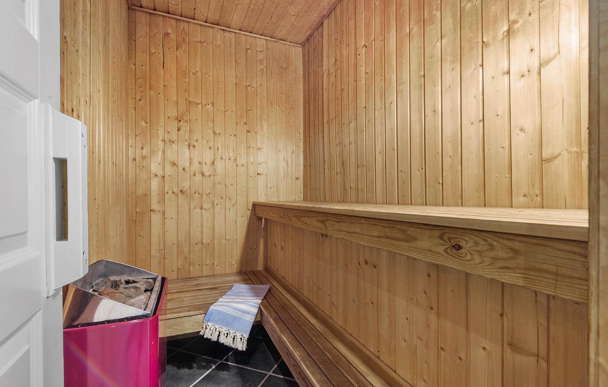 Dieses großzügige Ferienhaus am Vejers Strand bietet Ihnen alles, was Sie für einen entspannten Urlaub brauchen. Auf einem Naturgrundstück, das direkt an den Wald grenzt, lädt es mit einer einladenden Poolabteilung, einem Whirlpool und einer Sauna zur Erholung ein. Der behagliche Wohnbereich mit Kaminofen und großer Fensterfront sorgt für eine gemütliche Atmosphäre. Die geräumige Terrasse und die Rasenfläche bieten Platz für geselliges Beisammensein, während Kinder sich auf dem Trampolin austoben können. Nach einem Spaziergang durch die nahegelegenen Dünen genießen Sie eine erfrischende Dusche im Freien.