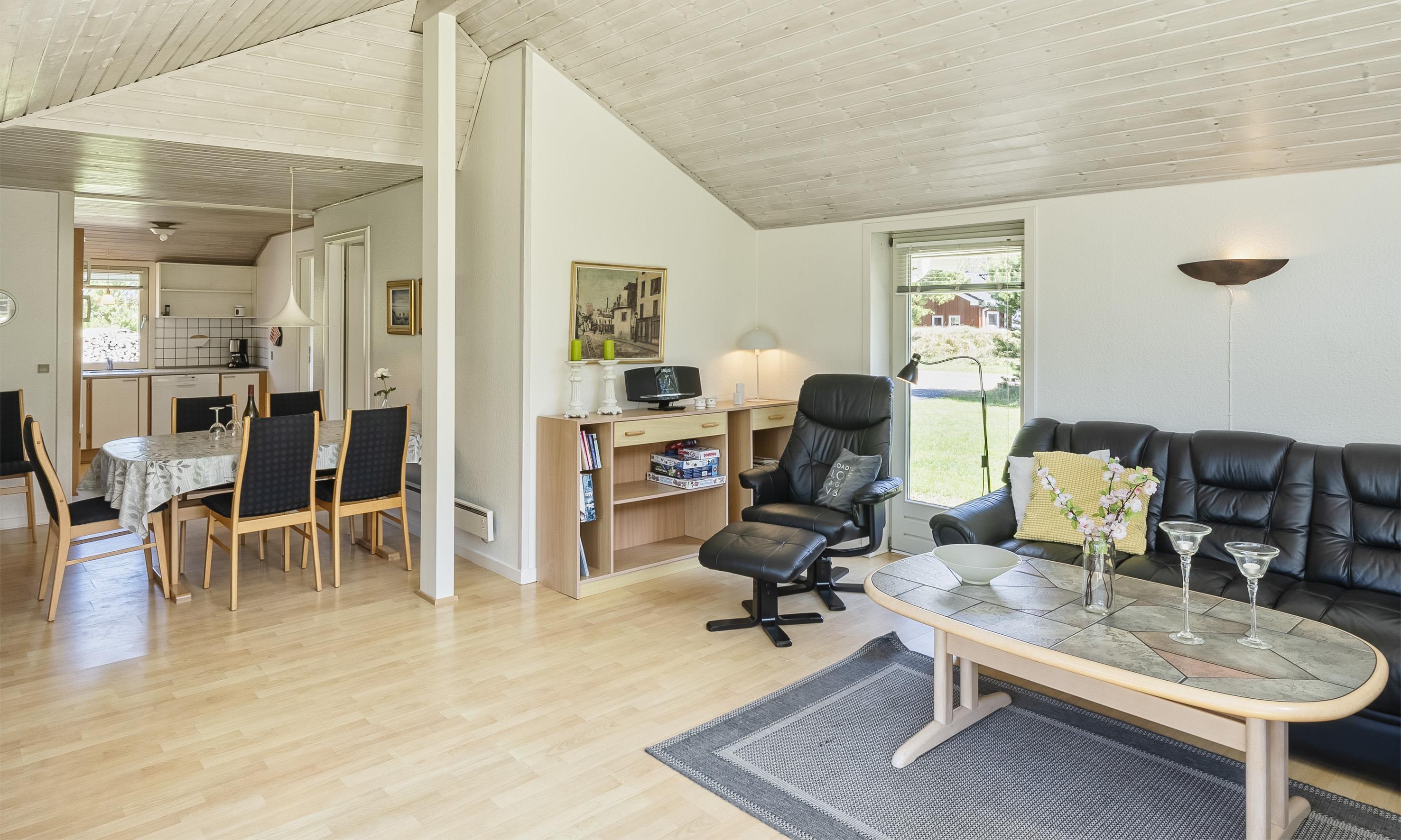Helles und familienfreundliches Ferienhaus auf einem schönen geschlossenem Naturgrundstück gelegen und rund 1,2 Km vom Strand entfernt. Das Ferienhaus ist für 6 Personen zugelassen und bietet alles was Sie für Ihren Urlaub brauchen. Das Grundstück ist von Bäumen eingezäunt und auf der Rückseite können Sie in aller Ruhe Ihr Sonnenbad auf der Terrasse genießen. Sandkiste finden Sie direkt an der Terrasse. Ein weiteres kleines Spielhaus für die ”Kleinen Gäste” mit einer Rutsche ist steht auch auf dem Grundstück zur Verfügung. Alle Räumlichkeiten sind im gleichen Laminatboden verlegt und bringt so eine einheitliche Ansicht hervor. Im Wohnbereich befindet sich der Kamin. Es befindet sich eine Warmepumpe im Ferienhaus. Mit dieser Warmepumpe haben sie die Möglichkeit die Stromkosten zu senken, denn die Warmepumpe ist energiesparend. Das deutsche Fernsehprogramm ist über eine Parabolantenne zu empfangen. Der Küchenbereich verfügt über einen Herd mit Kochplatten, einem Backofen, einer Mikrowelle, einer Geschirrspülmaschine und einer Kühl- und Gefrierkombination. Es gibt insgesamt drei Schafzimmer im Haus: DB + DB + 2B. Das Badezimmer verfügt über Fussbodenheizung, ein WC, ein Handwaschbecken, eine Dusche, eine Sauna und einen Whirlpool. Das Ferienhaus ist mit einem Internetanschluss (W-Lan) ausgestattet. Es sind max. 2 Haustiere erlaubt. Das Rauchen ist nicht gestattet. Das Ferienhaus wurde 1964 erbaut und in 1992 renoviert.