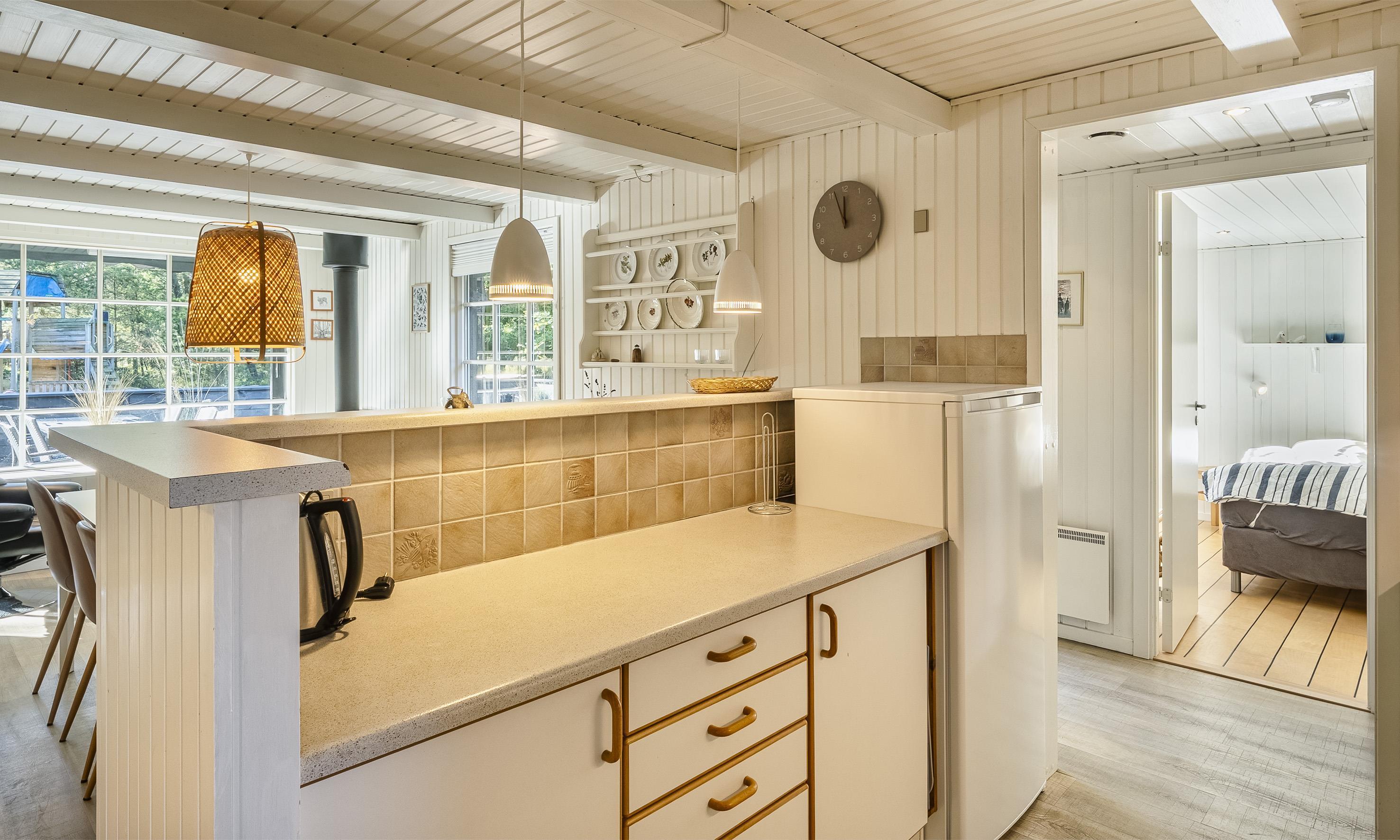 Dieses urige Ferienhaus ist für insgesamt 8 Personen, wobei die Aufteilung für max. vier Erwachsene und vier Kinder festgelegt ist. Es befindet sich auf einem grossen geschlossenem Naturgrundstück und ca. 2 Km vom Strand entfernt. Innen im Ferienhaus ist viel Holz zu sehen und strahlt eine angenehme Wärme aus. Der Wohnbereich ist weiss gestrichen und bringt dadurch viel Licht in das Haus. Der Wohnbereich verfügt über einen Kamin. Eine Wärmepumpe ist auch installiert worden. Mit dieser Wärmepumpe haben Sie die Möglichkeit die Stromkosten zu senken, denn sie ist erniergiesparend. Das deutsche Fernsehprogramm empfangen Sie über eine Parabolantenne. Für langweilige Abendstunden befindet sich eine Play-Station im Haus, die von den Gästen selbstverständlich genutzt werden darf. Der Wohn-und Essbereich ist zur Küche offen gehalten. Im Küchenbereich finden Sie einen Herd mit Cerankochfeld, Mikrowelle, eine Geschirrspülmaschine und eine Kühl- und Gefrierkombination. Es gibt 2 Bäder im Ferienhaus. Das eine Bad verfügt über ein WC, ein Handwaschbecken und eine Dusche. Desweiteren sind hier auch die Waschmaschine mit intregiertem Trockner untergebracht. Im zweiten Badezimmer befindet sich ein WC, ein Handwaschbecken, eine Handtuchhalterheizung und eine Dusche. Es gibt insgesamt vier Schlafzimmer: DB + DB + 2B + 2B. Ein Schlafzimmer ist mit einem Doppelbett ausgestattet, ein weiteres mit einen Dreiviertelbett und die übrigen zwei Schlaf/Kinderzimmer verfügen über Etagenbetten (Kürzer als normal), daher nur für Kinder geeignet. Auf der grossen geschlossenen Terrasse haben Sie die Möglichkeit Ihnen Vierbeiner mal zwischendurch Luft schnappen zu lassen, ohne das er gleich davon laufen kann. Das Ferienhaus verfügt über einen Internetanschluss (W-Lan). Es sind max. 3 Haustiere erlaubt. Das Rauchen im Haus ist nicht erlaubt. Auf dem Grundstück befindet sich ein Schaukelstativ und zwei kleine Fussballtore für die "Kleinen Gäste". Ein grosser sandkastenbeich und ein neu aufgestelltes Kletterhäuschen in Form eines Zuges, sogar mit Rutsche lässt das Kinderherz aufblühen. Gratis Eintritt für das Fitnesscenter in Vejers und Blaavand für 2025. Das Ferienhaus wurde 1969 erbaut und in 2006 renoviert.