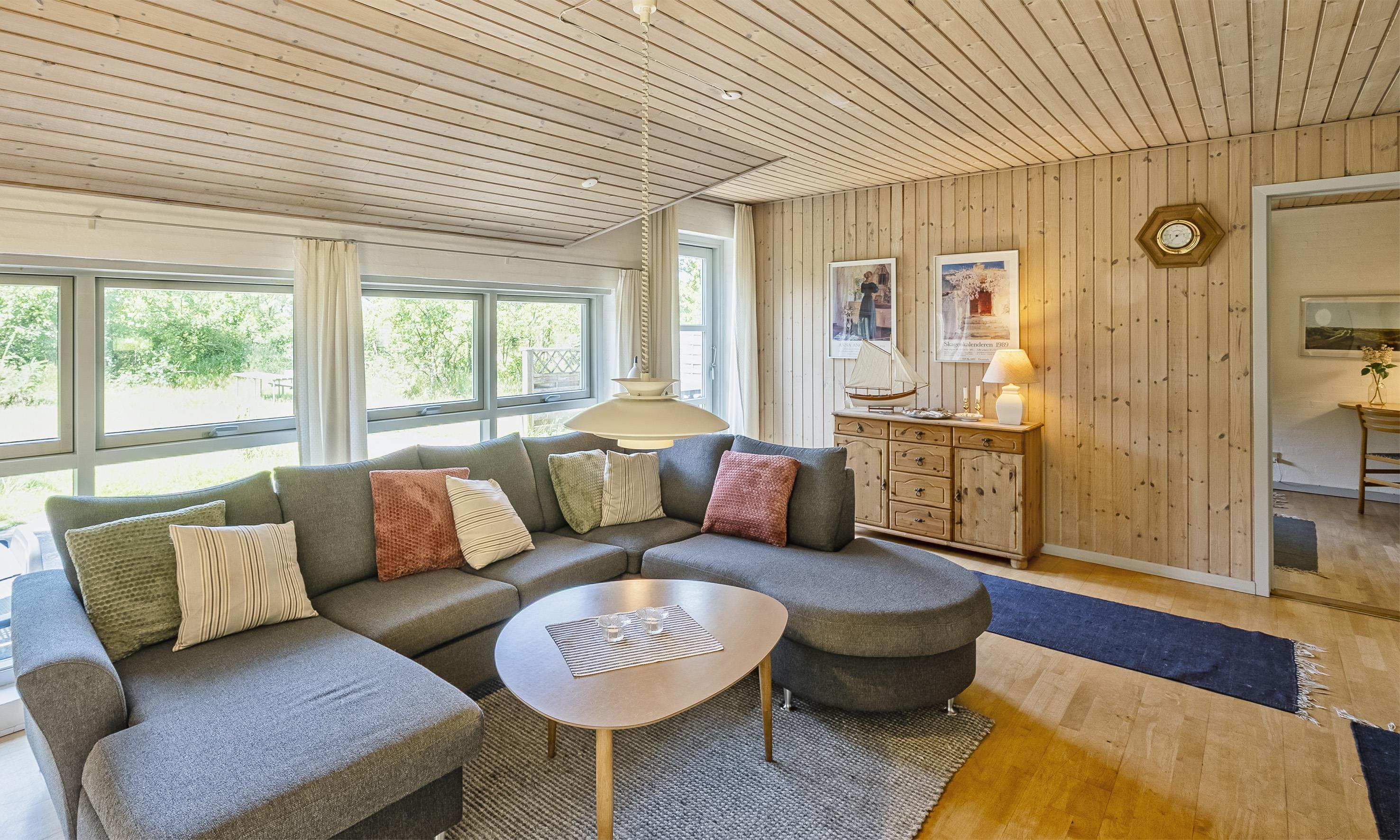 Dieses niedliche kleine Stein-Ferienhaus liegt am Ende einer Sackgasse, ganz ruhig und unscheinbar und ist für 4 Personen ausgestattet. Hier bietet das Ferienhaus eine absolute Ruhe. In dieser Umgebung liegen die Ferienhäuser alle auf naturbelassene Grundstücke. Der Strand ist ca. 1,5 Km entfernt. Das Wohnzimmer ist mit Laminat ausgelegt und hat einen Kamin. In der einen Ecke im Wohnbereich stehen zwei gemütliche Sessel, und eine Leselampe. Hier können Sie gemütlich Ihr spannendes Buch lesen. Deutsches Fernsehprogramm wird über Parabol-Antenne empfangen. Im Haus befindet sich ein DVD-Player. Es befindet sich eine Warmepumpe im Ferienhaus. Mit dieser Warmepumpe haben sie die Möglichkeit die Stromkosten zu senken, denn die Warmepumpe ist energiesparend. Die offene Küche verfügt über einen Herd, einem Backofen, einer Geschirrspülmaschine, einer Mikrowelle und eine Kühl- und Gefrierkombination (1 Gefrierfach). In dem Rundbogen zum Wohnbereich ist der Esstisch eingebaut und bringt das ”gewisse Etwas” ins Haus. 2 Schlafzimmer: DS + DS. Das Badezimmer geht von dem Wohnzimmer ab. Das Bad ist mit einem WC, einer Duschnische, einem Handwaschbecken, Fussbodenheizung und einer Sauna ausgestattet. Desweiteren finden sie die Waschmaschine im Badezimmer. Auf dem Grundstück befindet sich ein Schaukelstativ und eine Sandkiste. Das Ferienhaus verfügt über einen Internetanschluss (W-Lan 50/50). Es sind max. 3 Haustiere erlaubt. Das Rauchen ist nicht gestattet. Das Ferienhaus ist 1968 erbaut und in 2005 etwas aufgepeppt mit diversen kleinen Renovierungsarbeiten.