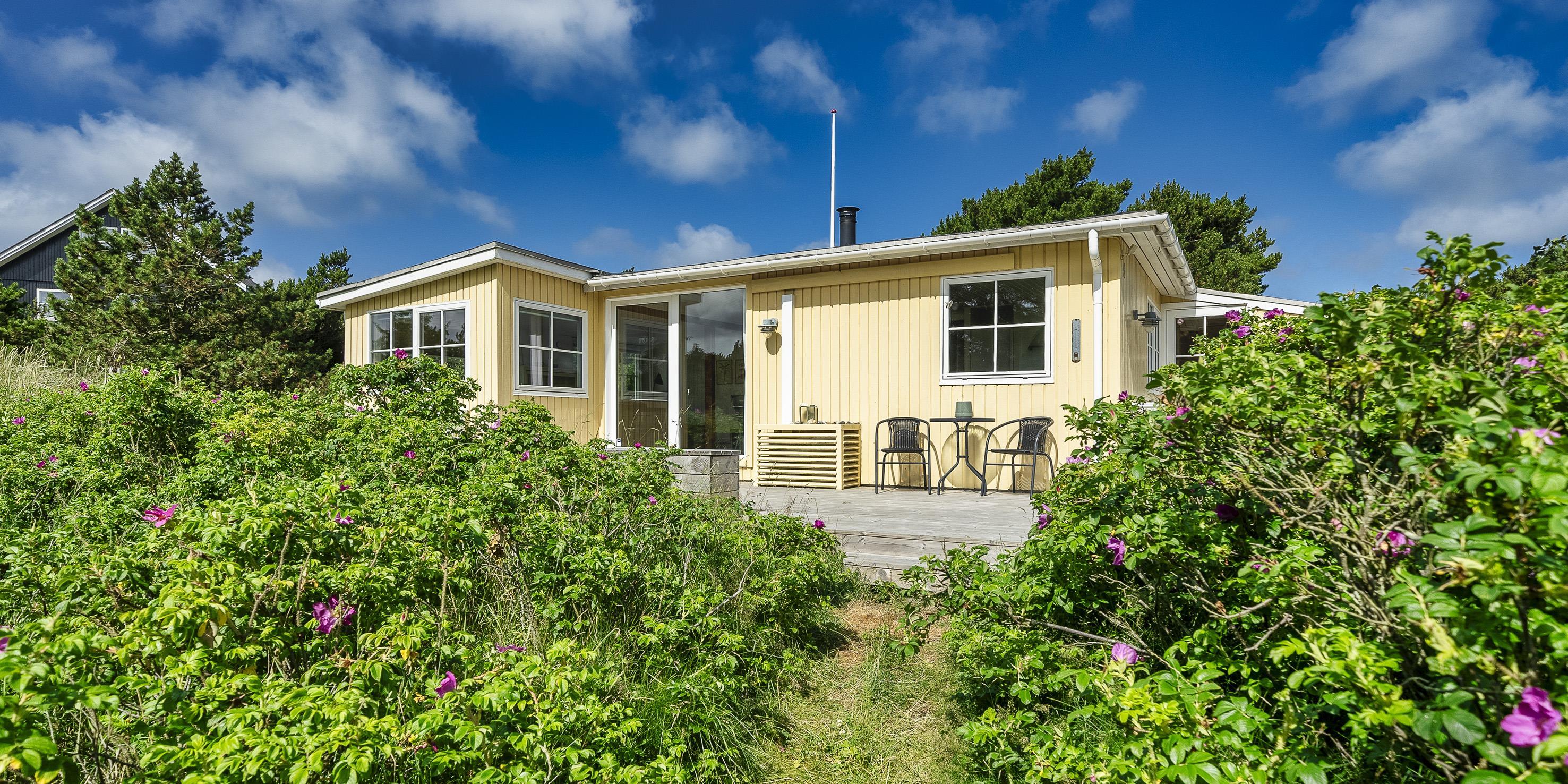 Gemütliches Ferienhaus auf einem grossen Dünengrundstück gelegen, umgeben von Hagebuttenbüschen. Das Ferienhaus ist für 5 Personen ausgestattet. Das Ferienhaus liegt nur 500 Meter vom Strand entfernt. Der Wohn- und Essbereich ist nett eingerichtet mit seinen Möbeln und den offenen stehenden Balken. Dies gibt dem Ferienhaus einen besonderen Charme. Desweiteren befindet sich im Wohnbereich ein gemütliches Kuschelsofa. Der Holzesstisch und die dazugehörigen Stühle passen einfach in das Haus und zur gesamten Ausstattung. Im Wohnbereich ist ein Kamin aufgestellt. Es befindet sich eine Warmepumpe im Ferienhaus. Mit dieser Warmepumpe haben sie die Möglichkeit die Stromkosten zu senken, denn die Warmepumpe ist energiesparend. Das deutsche Fernsehprogramm empfangen Sie über eine Parabolantenne und zusätzlich Chrome Cast. Die neue Küche verfügt über über einen Herd mit Cerankochfeld, einem Backofen, einer Geschirrspülmaschine und einer Kühl- und Gefrierkombination. Das Badezimmer ist mit hübschen Fliesen versehen und mit einer Fussbodenheizung ausgestattet. Desweiteren verfügt das Bad über ein WC, ein Handwaschbecken und eine Dusche. Eine Waschmaschine steht den Gästen im Ferienhaus auch zur Verfügung und diese ist im Badezimmer untergebracht. Insgesamt gibt es drei Schlafzimmer: DB + DB + DB. Das Ferienhaus verfügt über einen Internetanschluss (W-Lan). Am Ferienhaus stehen zwei Terrassenbereiche zur Verfügung. Eine davon ist mit einer Markiese ausgestattet. Es sind keine Haustiere erlaubt. Rauchen ist nicht erlaubt. Buchungen an Jugendgruppen im Alter bis 25 Jahre nehmen wir nicht entgegen. Das Ferienhaus ist 1937 erbaut worden und renoviert in 2019.