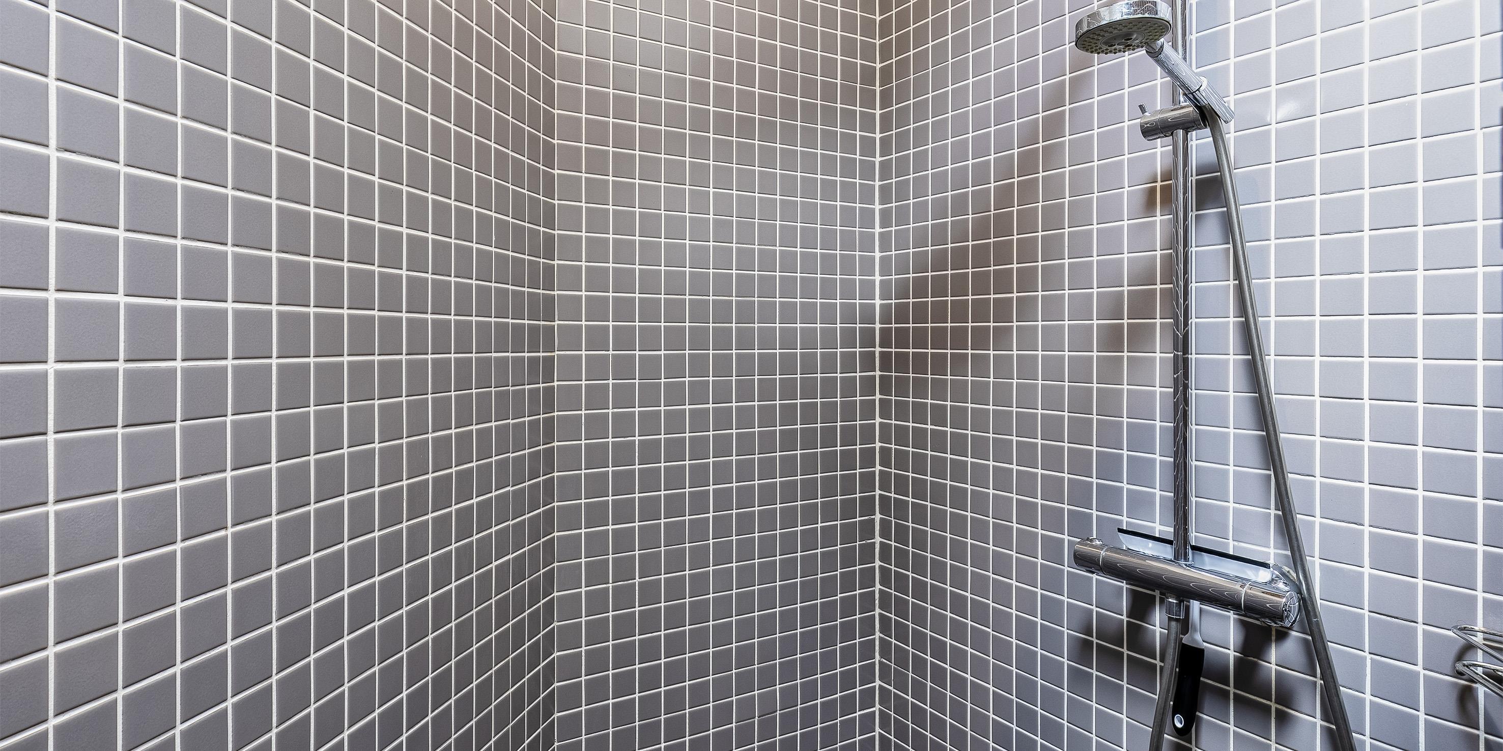 Badezimmer mit Toilette, Dusche und Waschbecken