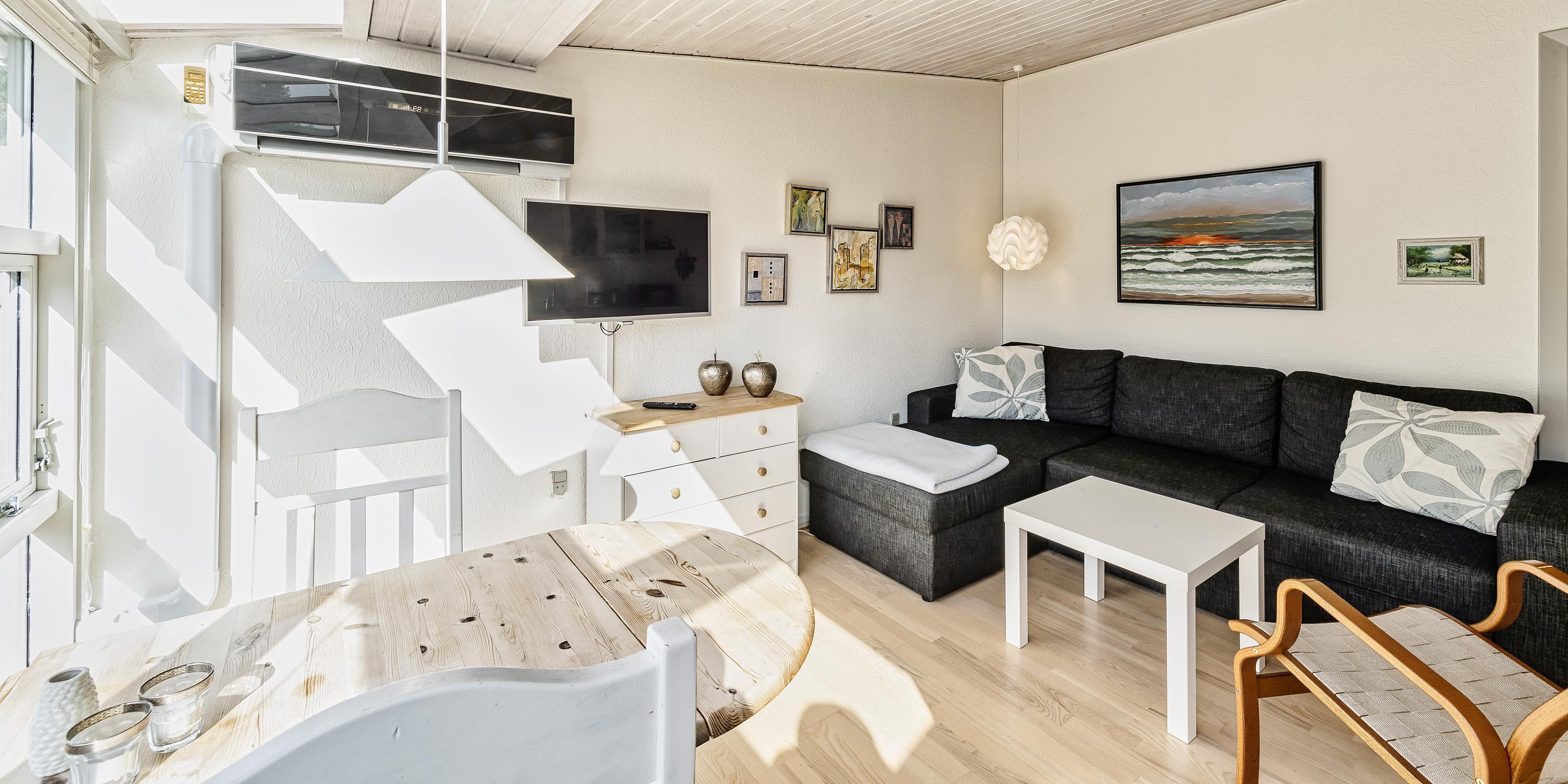 Kleine gemütliche Wohnung in zentrale Lage von Vejers Strand gelegen. Diese Wohnung in der Wohnanlage ”Minerwa” ist für zwei Personen eingerichtet und bietet alles was Sie für Ihren Urlaub benötigen. Der Strand ist nur ca. 1 Km entfernt und gut fussläufig zu erreichen. Der Wohnbereich ist mit Essecke und Küche ein großer Raum, aber hell und sehr freundlich eingerichtet. Ein kleines Sofa steht Ihnen zum Relaxen zur Verfügung. Das deutsche Fernsehprogramm empfangen Sie über eine Parabolantenne. Desweiteren empfangen Sie auch dänisches Smart TV (Netflix). Der Esstisch und die Stühle befinden sich direkt vor dem Terrassenausgang. Darüber befinden sich schöne große Oberlichter, dazu die große Fensterfront mit doppelflügiger Terrassentür, dadurch wird der ganze Raum licht durchflutet und ist sehr hell. Die helle Einbauküche verfügt über einen Herd mit Cerankochfeld, einem Tischbackofen und einem Kühlschrank mit einem kleinen Gefrierfach. Es befindet sich eine Warmepumpe im Ferienhaus. Mit dieser Warmepumpe haben sie die Möglichkeit die Stromkosten zu senken, denn die Warmepumpe ist energiesparend. Die ganze Wohnung ist mit einem hellem Paketboden verlegt worden, außer natürlich das Badezimmer. Im kleinen aber modernen Badezimmer finden Sie ein WC, ein Handwaschbecken und einen Duschbereich. Das Badezimmer ist zusätzlich mit einer Fußbodenheizung und einer Handtuchhalterheizung ausgestattet. Das separate Schlafzimmer: DB. Das Ferienhaus verfügt über einen Internetanschluss (W-Lan). Es darf in der Ferienwohnung nicht geraucht werden. Es ist Haustiere erlaubt, mit einer Rückenhöhe von ca. 30 cm. Die Wohnanlage ist in 1961 erbaut worden und diese Ferienwohnung wurde in 2001 renoviert. Draußen auf der Terrasse befinden sich gemütliche Gartenmöbel und ein kleiner Ausguck auf Natursteine. Es gibt eine Möglichkeit den Swimmingpool beim Familien Camping gegen eine kleine Gebühr zu benutzen. Gemütliche Gemeinschaftsumgebung mit Bänken und einem kleinen Lagerplatz.
