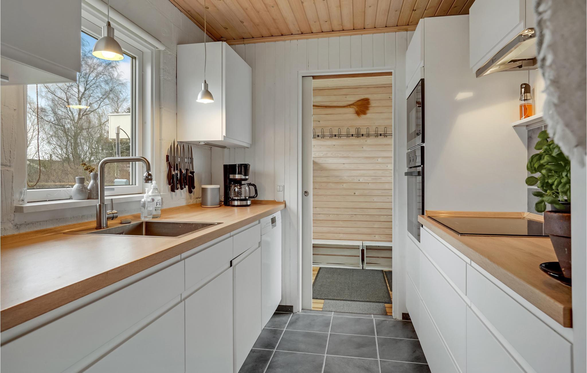 Die geschmackvoll möblierten und hellen Räume bilden den idealen Rahmen für eine schöne gemeinsame Zeit. Das viele Holz in der Einrichtung und der schöne Einfall von Tageslicht sorgen für eine wohnliche Atmosphäre. Großflächige Fenster im Wohnbereich ermöglichen wunderbare Ausblicke in den Garten, egal, ob Sie diese vom Sofa, am Kaffeetisch oder bei den gemeinsamen Mahlzeiten genießen. Sehen Sie nach einem erlebnisreichen Tag zusammen einen Film an oder spielen Sie Spiele und genießen Sie die behagliche Wärme, die der Kaminofen verströmt.