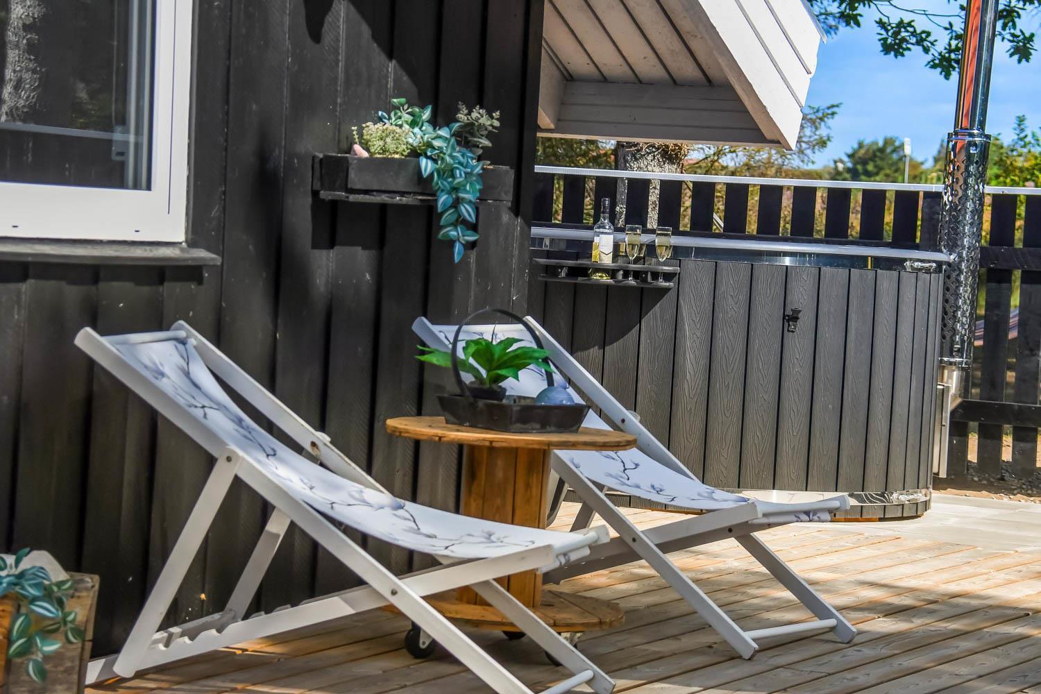 Ein ganz besonderes Highlight ist der eigene Wellnessbereich im Freien mit einem holzbefeuerten Wildnisbad – ein echtes Naturerlebnis. Die Nordseeküste ist nur 350 Meter entfernt. Nur 600 Meter trennen euch vom Vejlby Torv mit Kaufmann und dem Restaurant „Café John Wayne“.