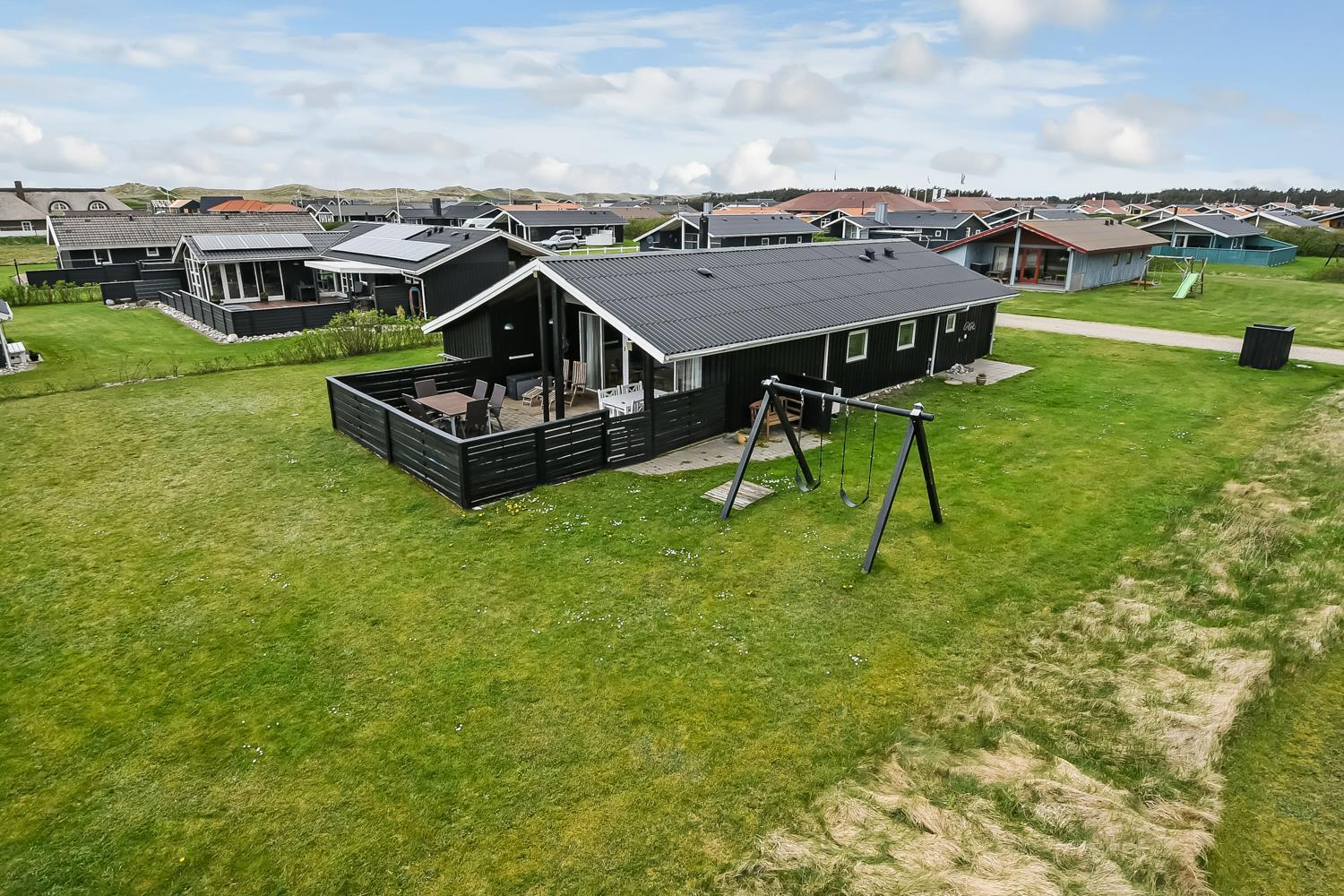 Zugang zu einer schönen, großen sowie überdachten Terrasse mit Grill, Gartenmöbeln und Liegestühlen. Sie kann geschlossen werden, damit Kinder und Haustiere nicht entlaufen. Offener Außenbereich mit Sandkasten und Schaukel für die Kinder. Einkaufsmöglichkeiten und Restaurant sind fußläufig erreichbar. Die gute Lage mitten in Vejlby Klit bietet viele Möglichkeiten für Ausflüge zu Fuß und mit dem Fahrrad.