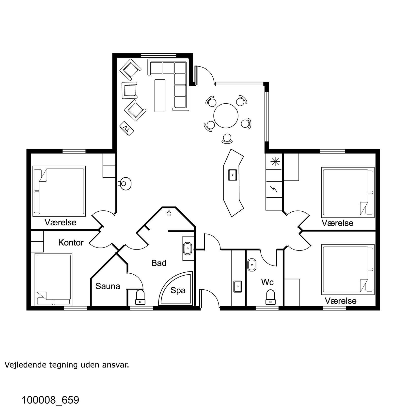 Das Haus ist modern eingerichtet und die Wände und Decken sind aus weisshellem Holz. Holzböden. Im Flur gibt es eine Waschmaschine und einen Trockner, damit Sie auch im Urlaub waschen können. Die Küche ist mit den Wohnraum kombiniert und sehr gut eingerichtet. Sehr gut ausgestattete Küche mit Herd mit Cerankochfeld, Kühlschrank mit Gefrierfach, Geschirrspüler und Mikrowelle. Wohnraum mit schönen Ledermöbeln, SAT-TV, CD und DVD und kostenlosem WLAN. Entspannen Sie sich vor dem Kaminofen, der zusammen mit der Wärmepumpe für eine schöne günstigere Wärme sorgt. 2 Badezimmer wovon eines mit Whirlpool und direktem Zugang zur Sauna, Toilette, Waschbecken und Fussbodenheizung ist. Das andere hat nur eine Toilette und Waschbecken. 4 Schlafräume: (DB) + (DB) + (2B) + (2B). Haustiere sind erlaubt. Das Haus wird gemäss Vereinbarung mit dem Eigentümer als Home Office vermietet. Keine Vermietung an Jugendgruppen.