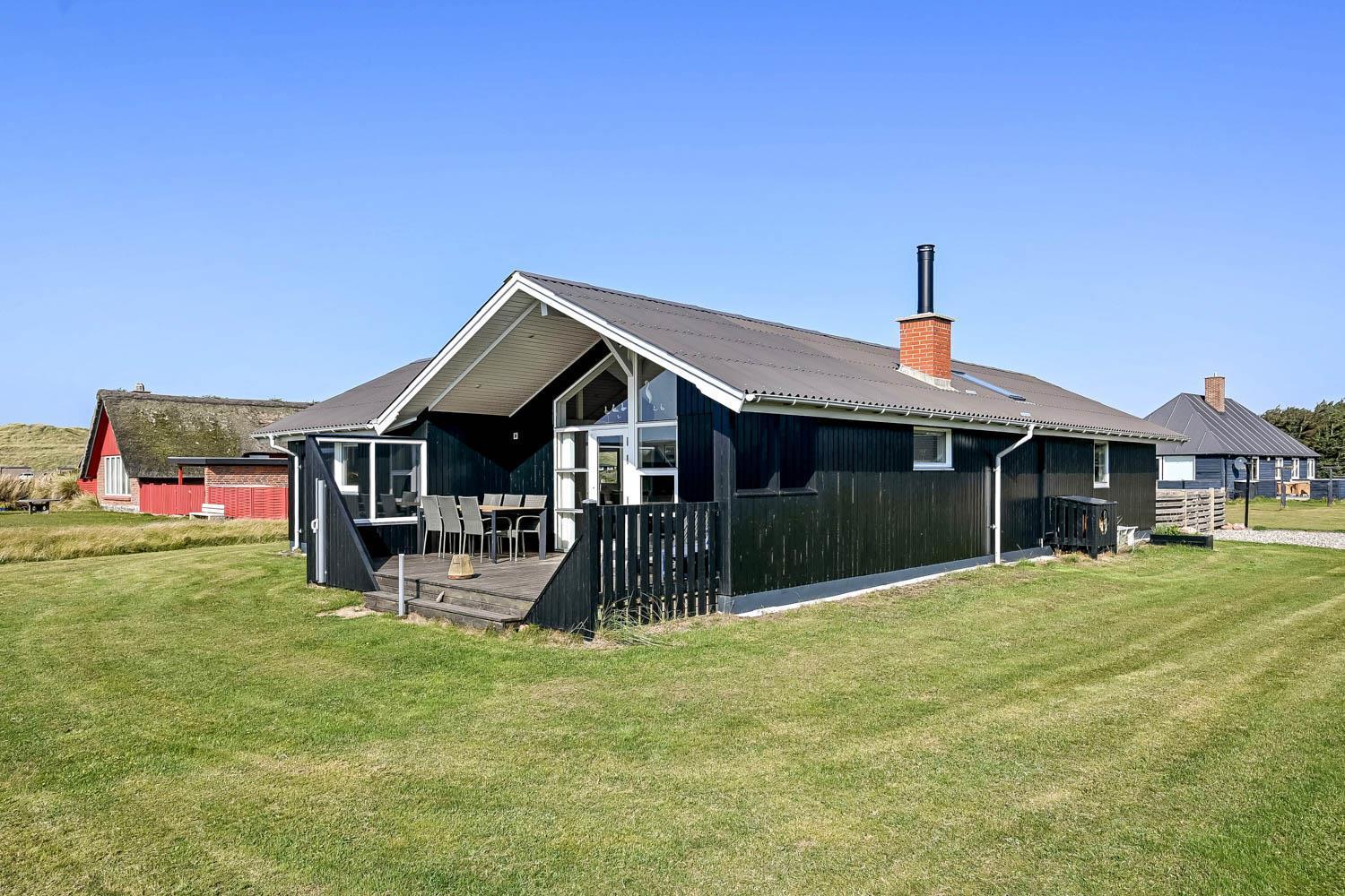 Das Haus liegt auf einem Naturgrundstück, nur 150 Meter von der Nordsee entfernt und ebenfalls nur 150 Meter vom Vejlby Torv mit Kaufmann und Café John Wayne. Vom Wohnzimmer und dem Eingang gibt es einen Zugang zu den eingezäunten Terrassen des Hauses, sowohl nach Süden als auch nach Westen, was es ermöglicht, die Sonne den ganzen Tag über zu genießen. Außerdem gibt es im Bereich der westlich gelegenen Terrasse eine Außendusche mit kaltes Wasser, eine Sauna und einen wunderbaren Wintergarten mit Essplatz und einem fantastischen Blick auf die hohen Dünen der Nordsee. Grill und Gartenmöbel können nach Bedarf umgestellt werden. Es gibt auch eine Lademöglichkeit für Elektroautos in der Garage des Hauses. Es gibt eine Hundegehege.
